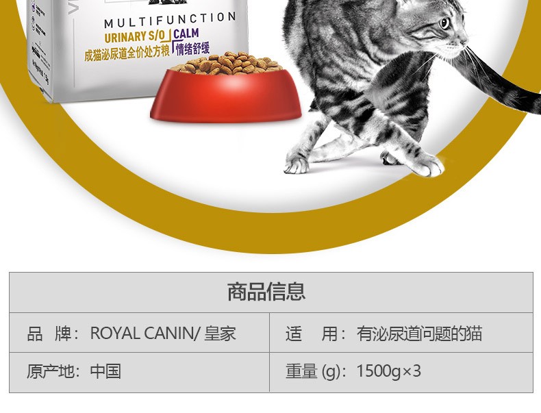 皇家处方粮MUC34 全价泌尿道处方猫粮情绪舒缓尿道结石猫咪宠物猫粮 皇家成猫泌尿道(情绪舒缓) 1.5kg*1袋