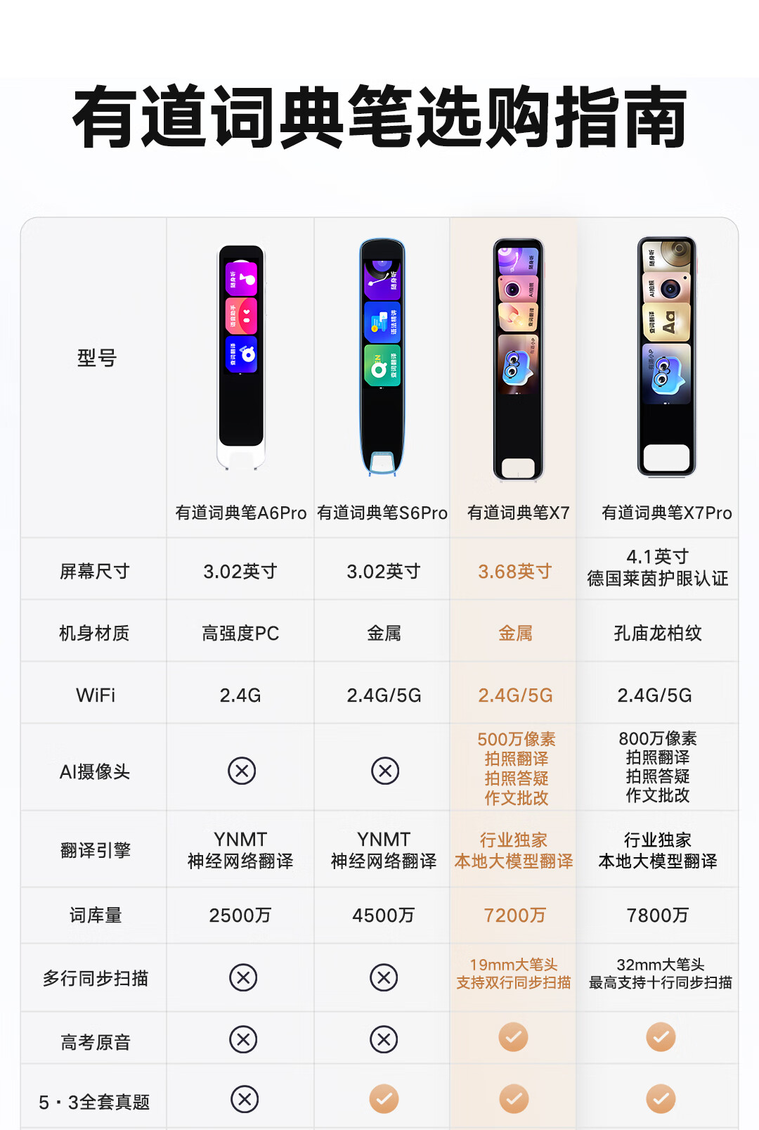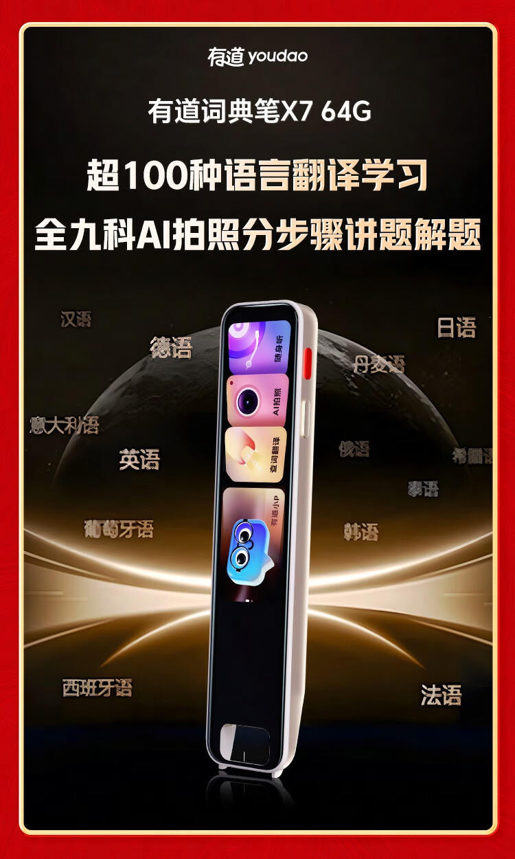 有道词典笔X7Pro/X7英语智能点读笔小初高中生学习机电子词典扫读扫描笔翻译笔单词笔神器 词典笔X7 64GB