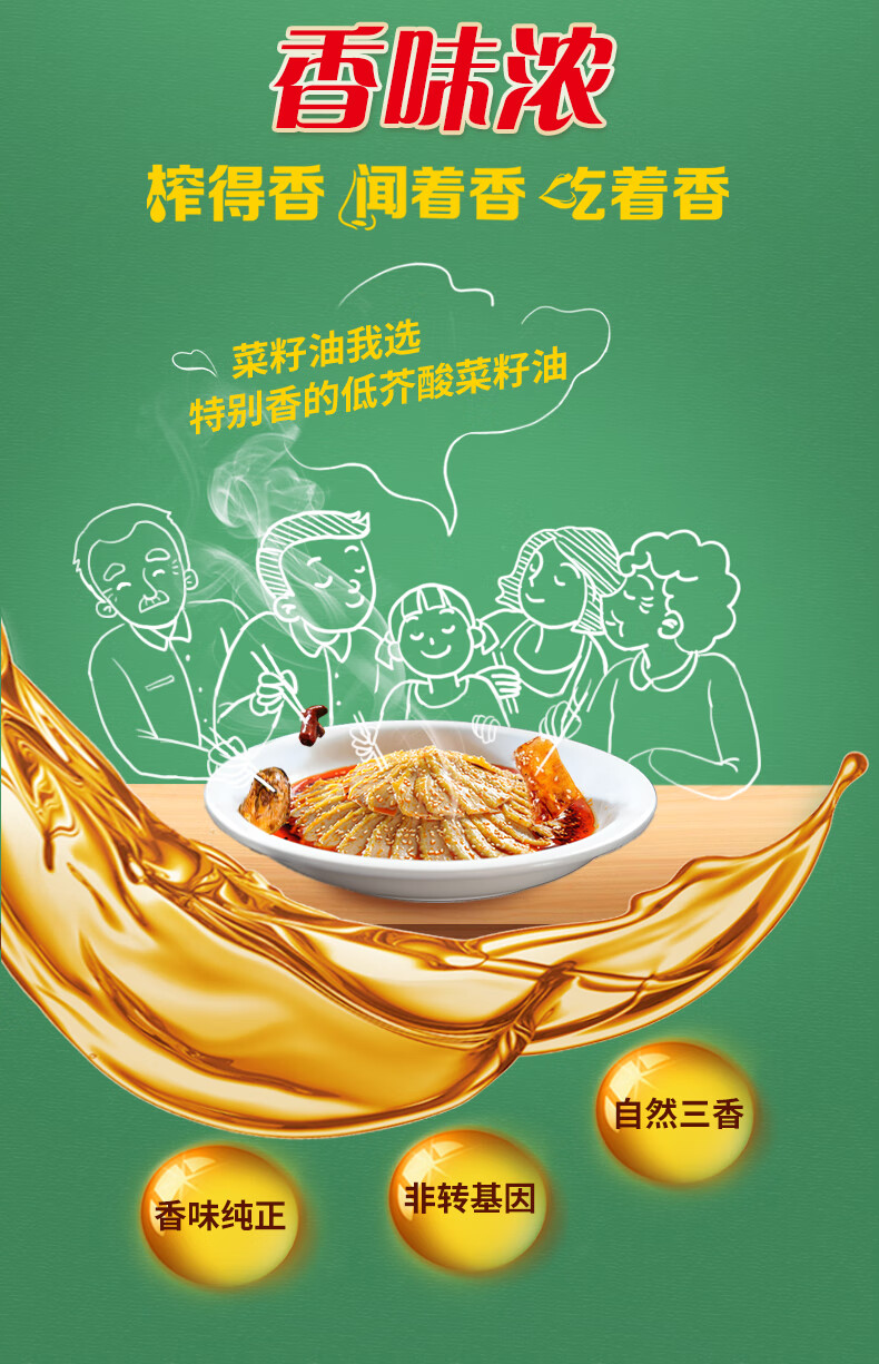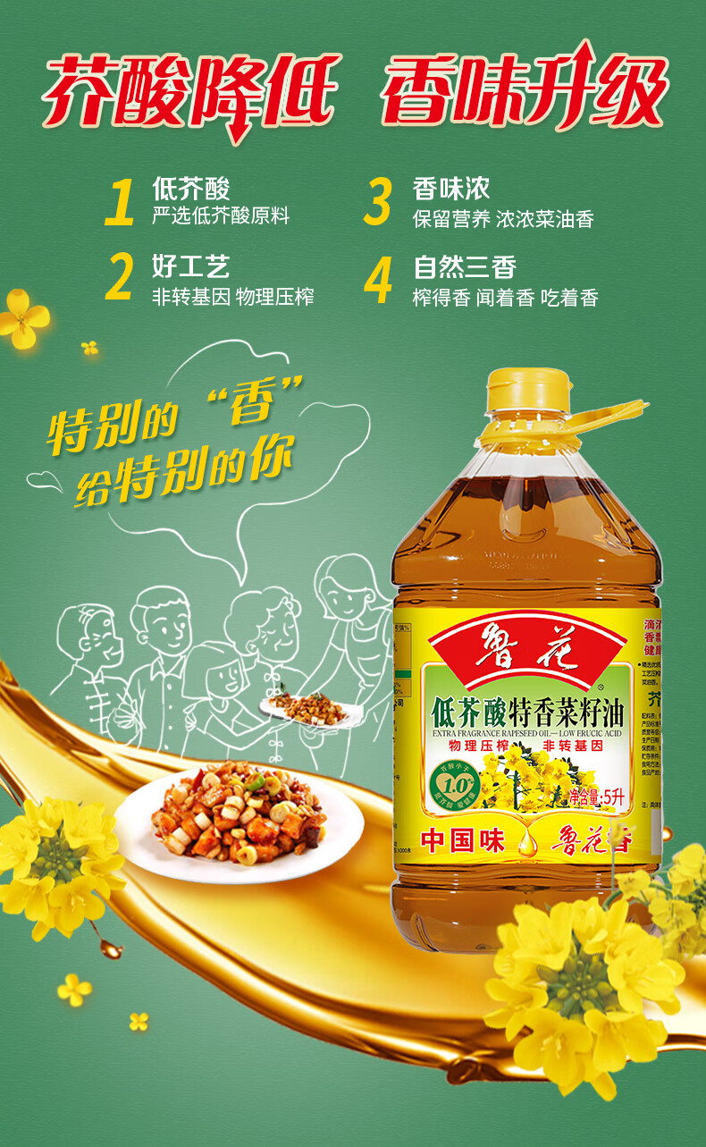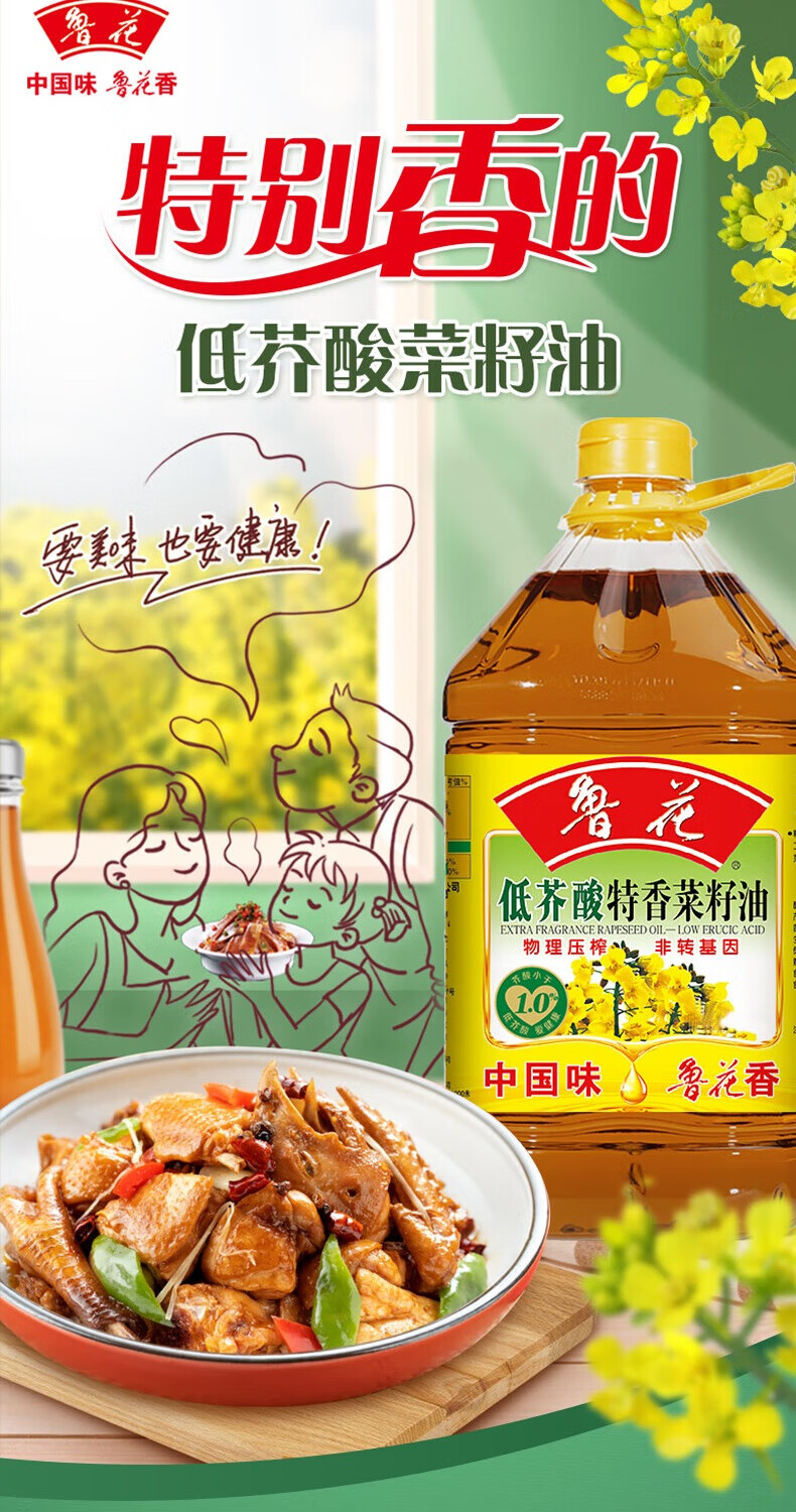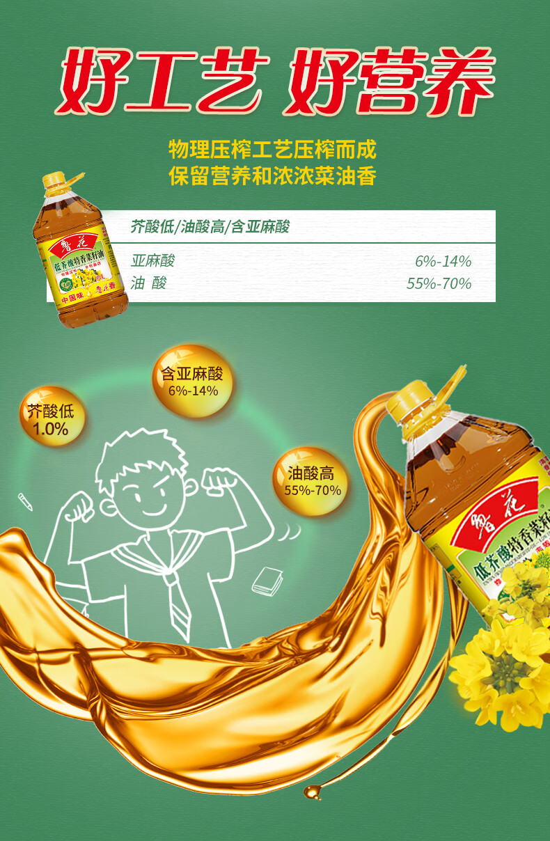 鲁花低芥酸特香菜籽油 物理压榨一级 食用油 非转基因 菜油 低芥酸特香菜籽油900ml*1
