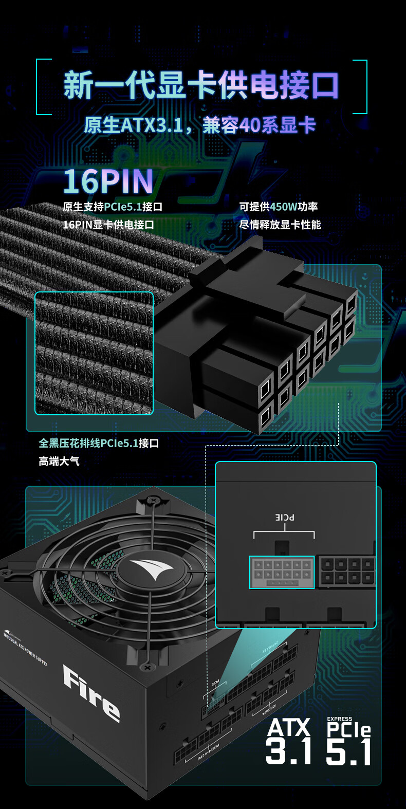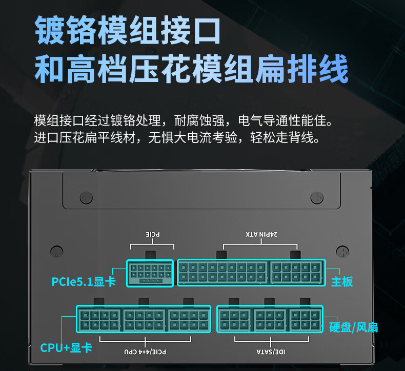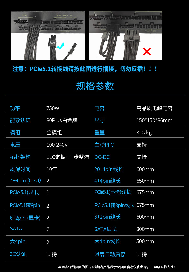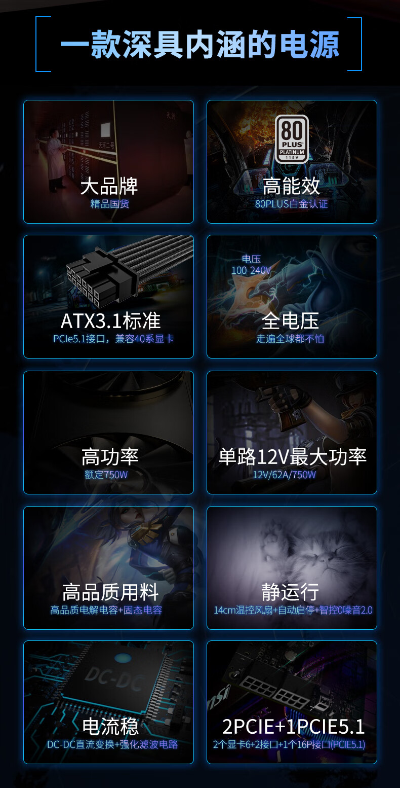 长城(Great Wall)额定750W F7白金牌全模组电源(ATX3.1标准/原生PCIe5.1/自动启停/全电压/闪电加速)