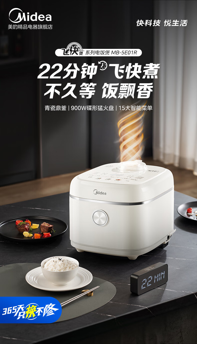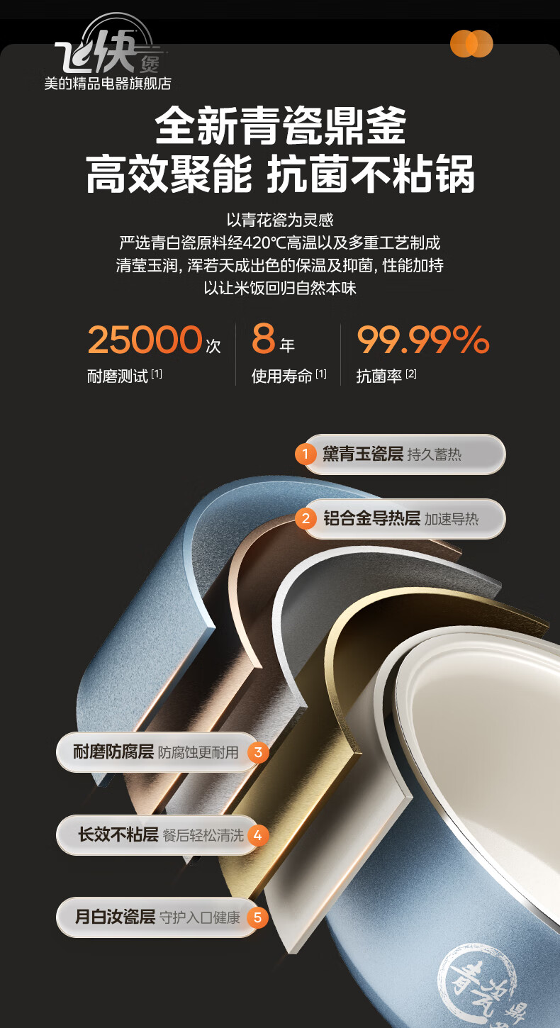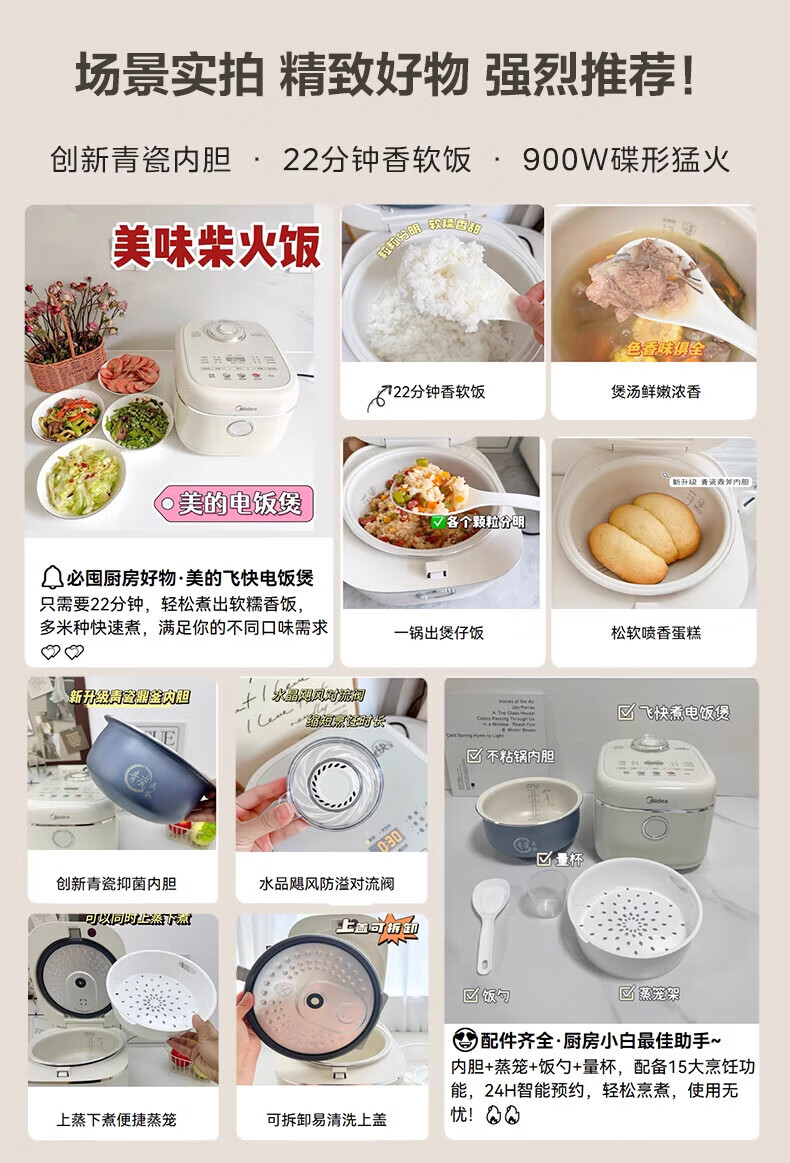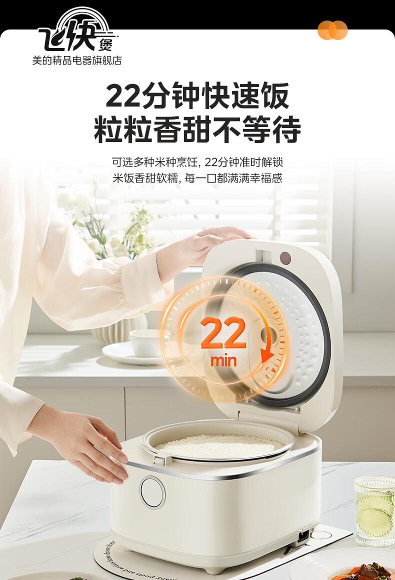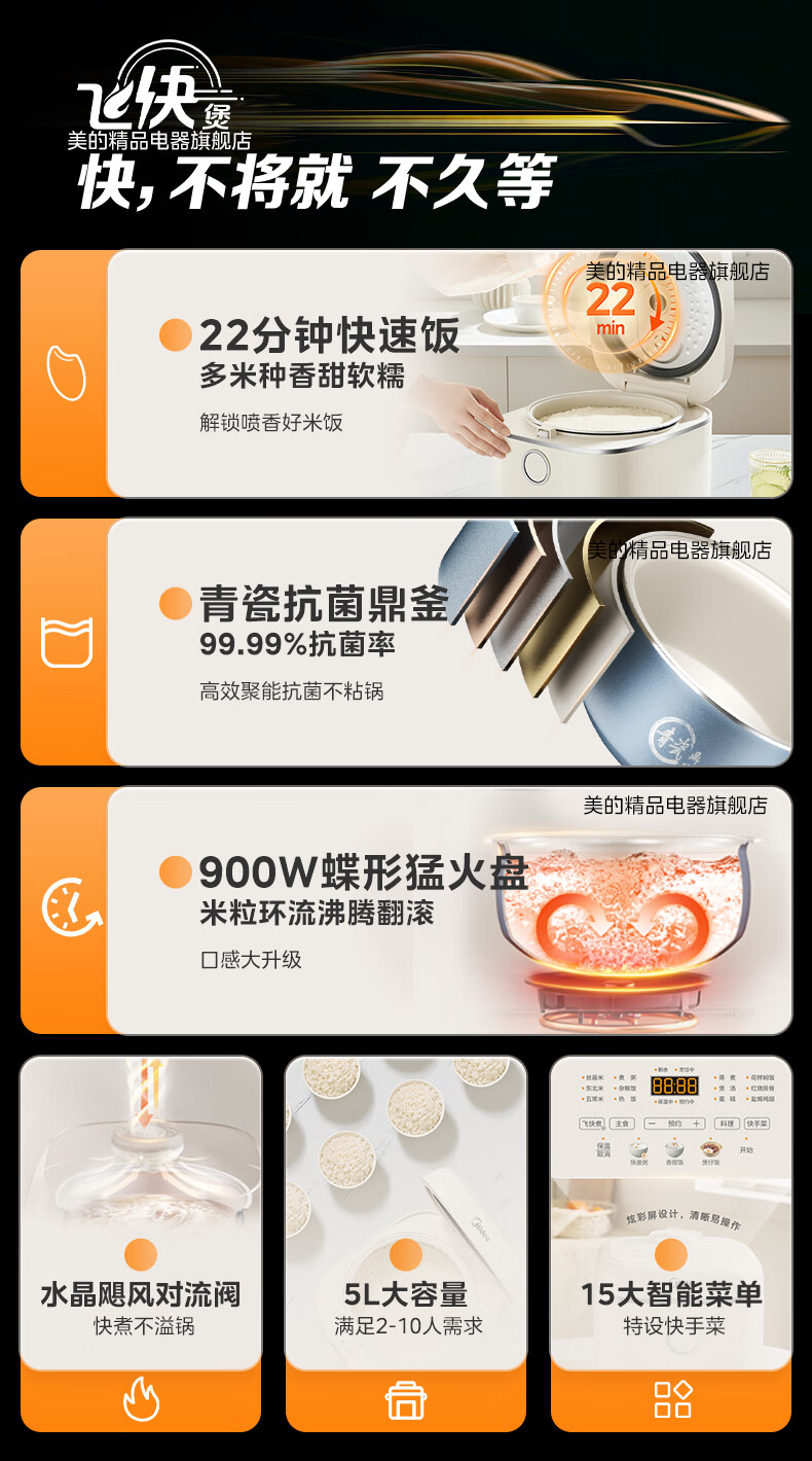 美的(Midea)电饭煲电饭锅5升家用5-8-10人青瓷鼎釜22分钟杂粮饭煲仔饭蛋糕多功能智能预约煮粥微压防溢蒸饭锅 特色快手菜【青瓷抗菌鼎釜】飞快煮系列 5L