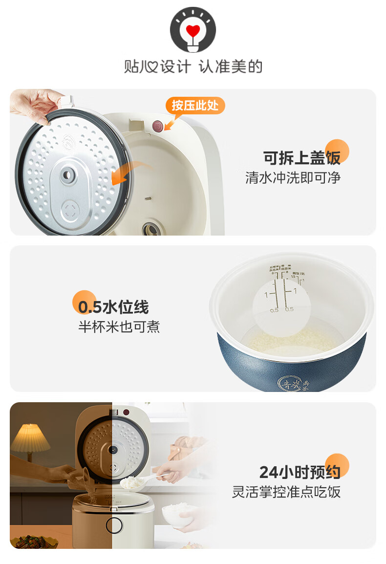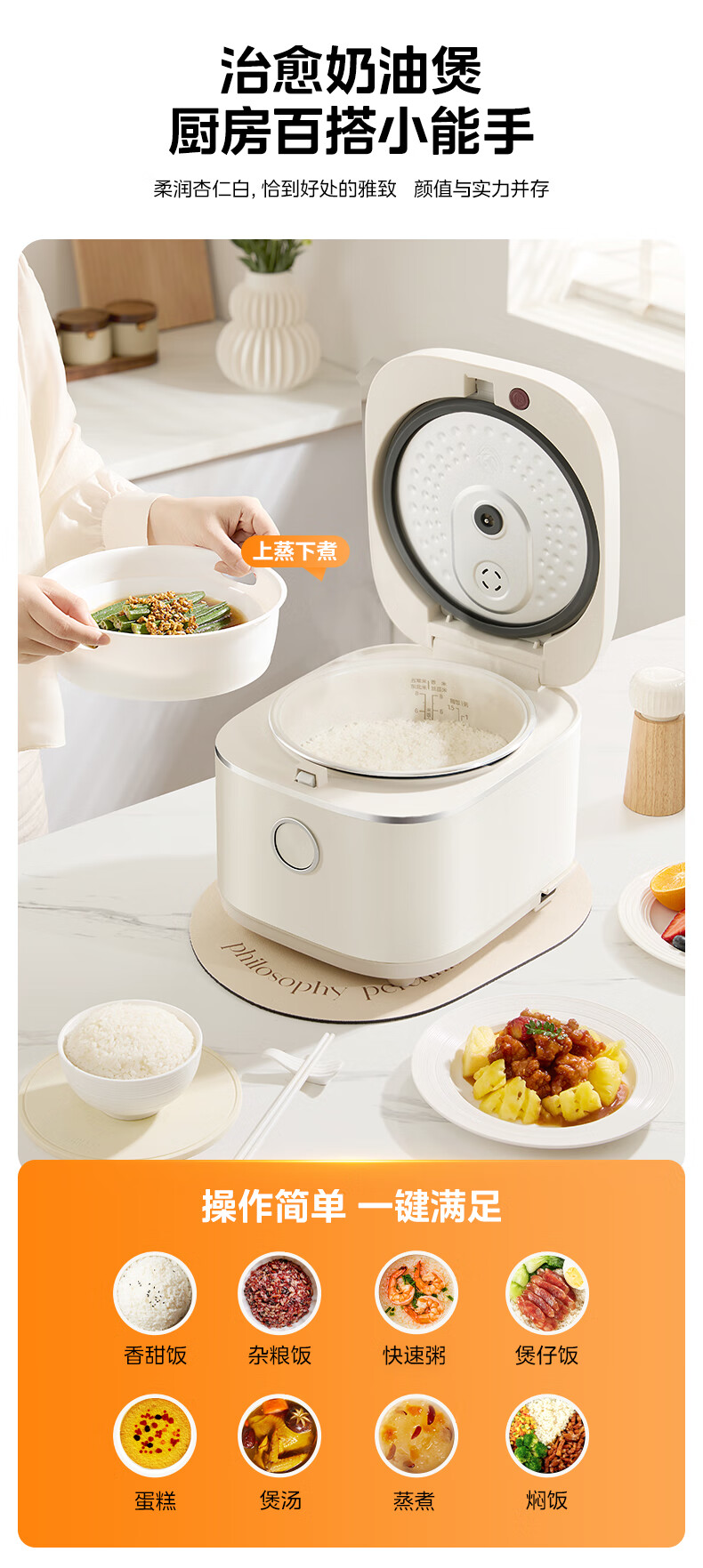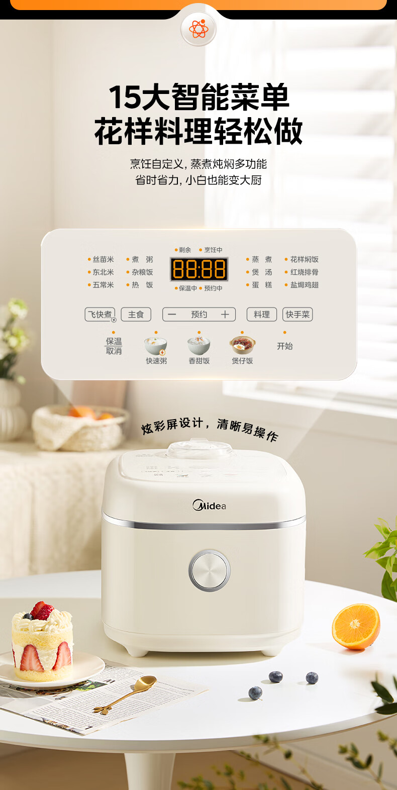 美的(Midea)电饭煲电饭锅家用3-4-5-8个人大容量4升触控屏智能预约12大功能蒸饭锅银钻内胆微压 4L 一级抗菌内胆 4L
