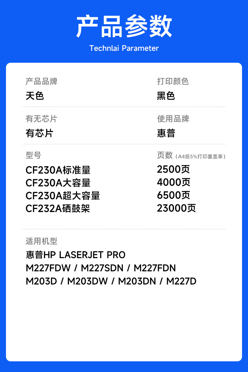 天色适用惠普m227fdw硒鼓m203dw/dn/d粉盒m227d/sdn/fdn打印机碳粉hp30a墨盒cf230a墨粉laserjet pro mfp