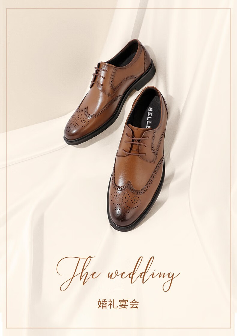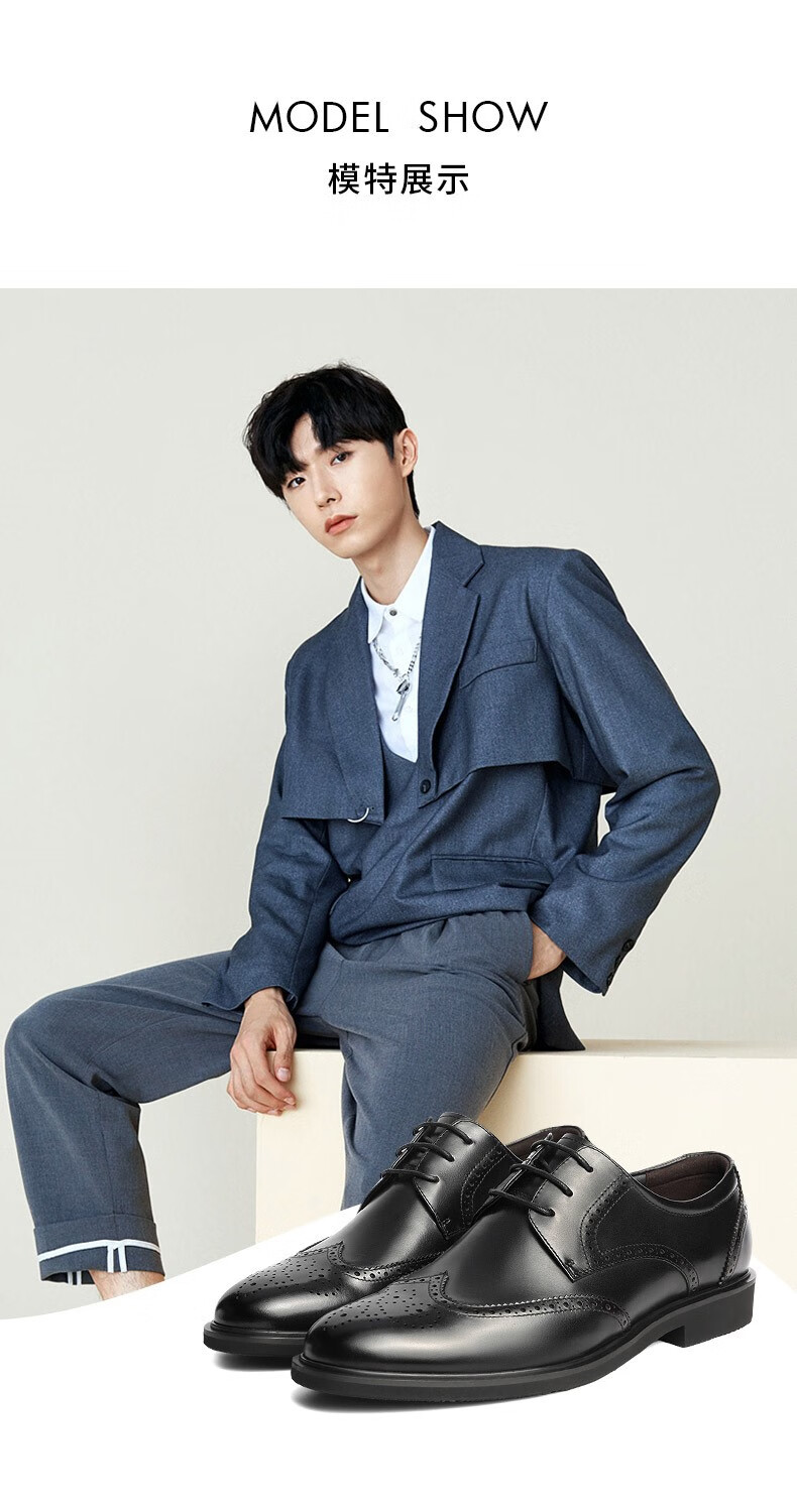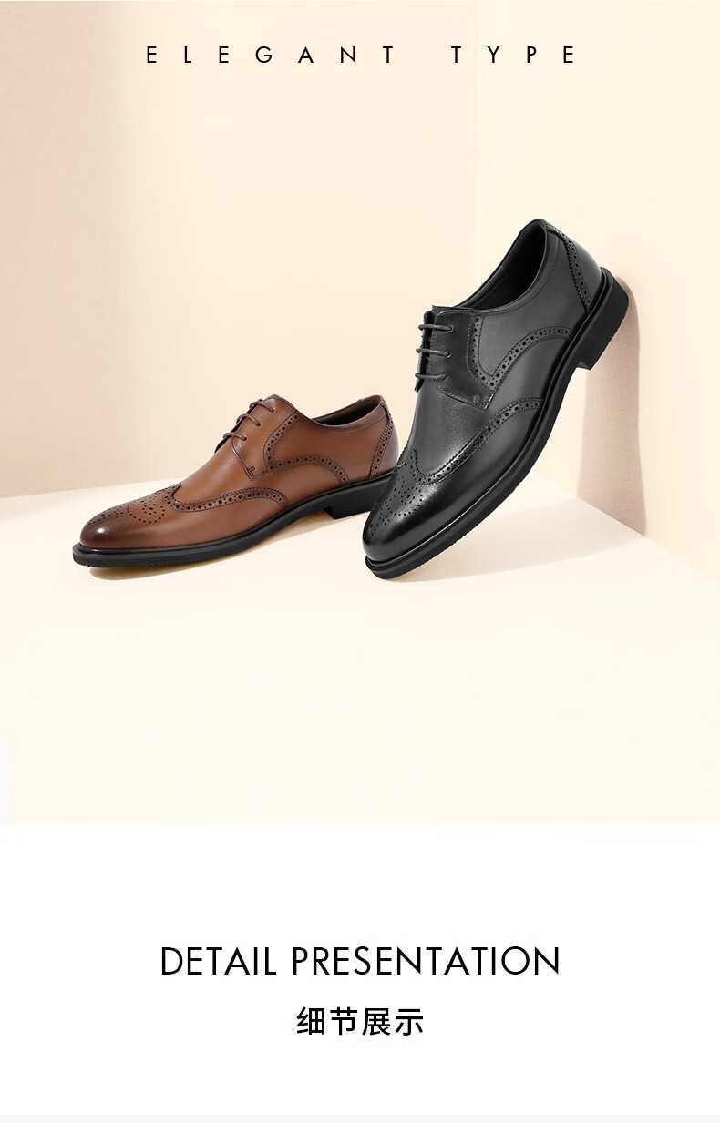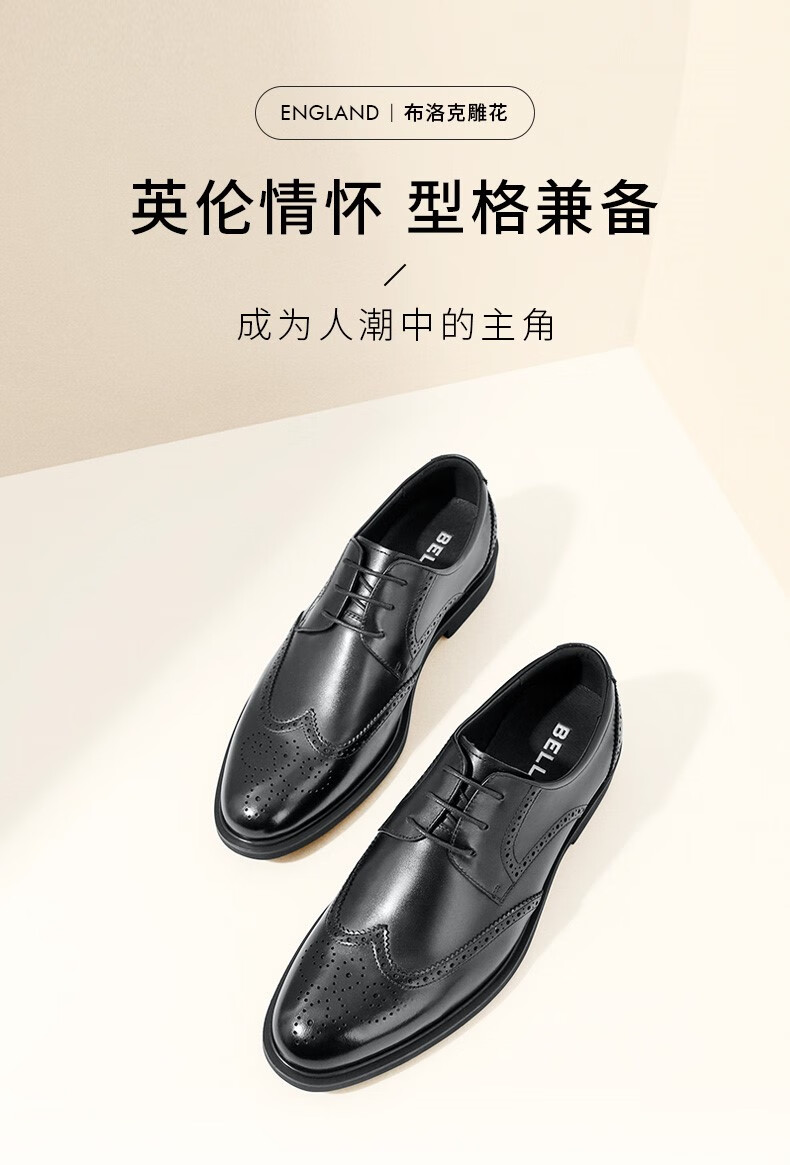 百丽通勤商务皮鞋男布洛克雕花真皮正装鞋婚鞋A0588CM1 黑色 43 (265mm)