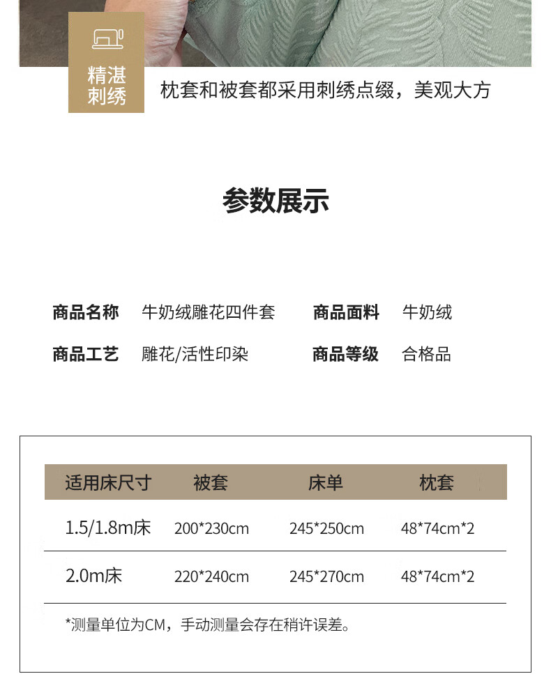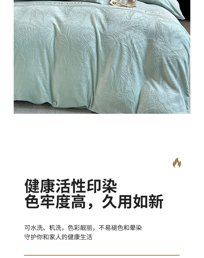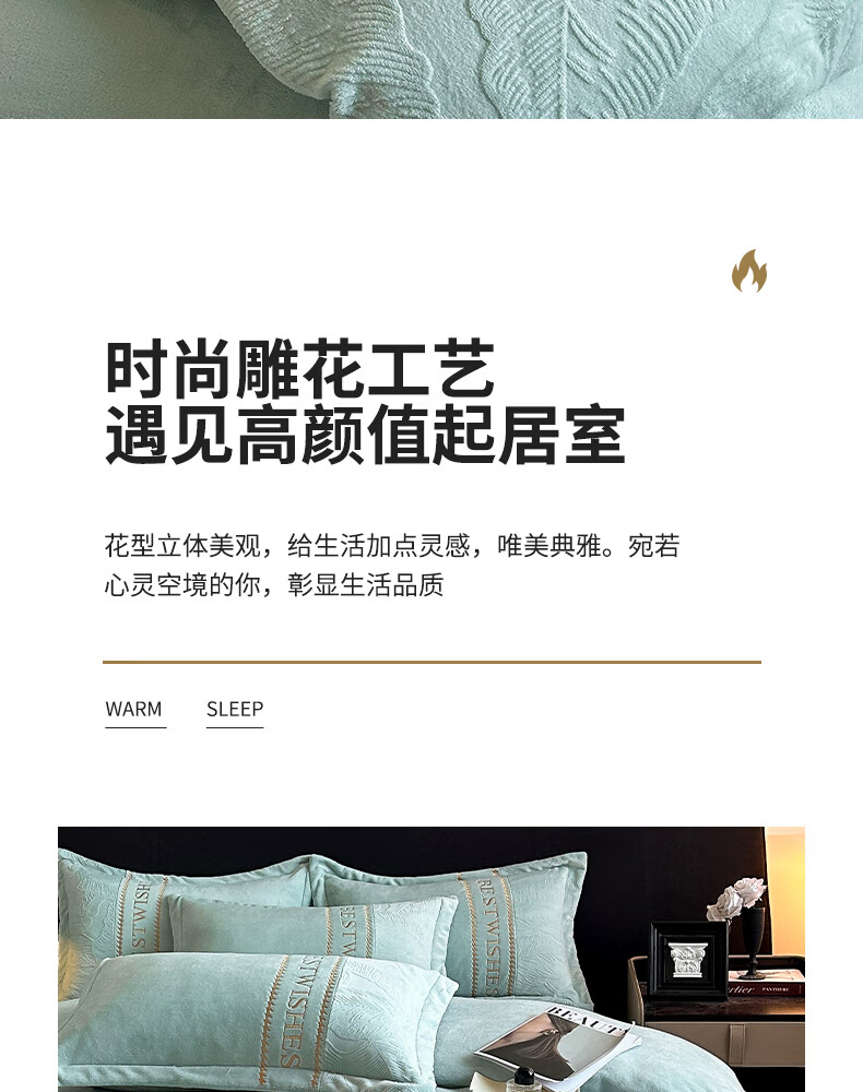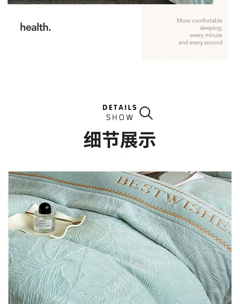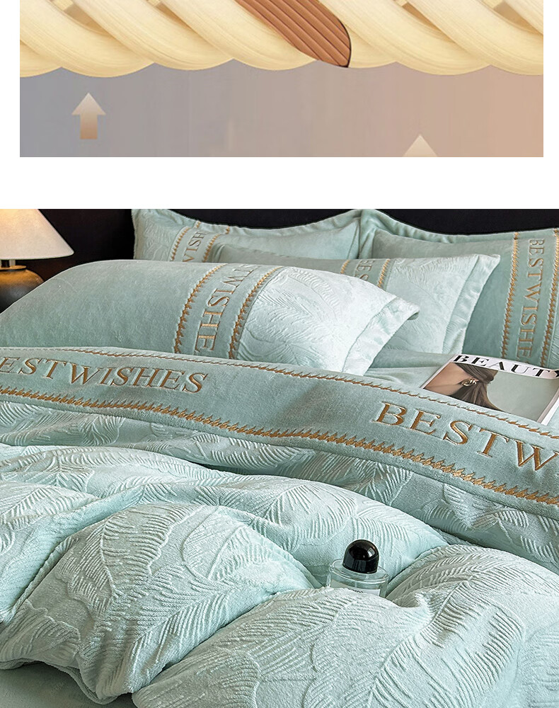 VJE轻奢牛奶绒四件套冬季加厚保暖双面绒床单被套法兰绒被罩床上用品 缤纷羽叶-蓝拼白 四件套2.0m 床单款 -被套220*240cm