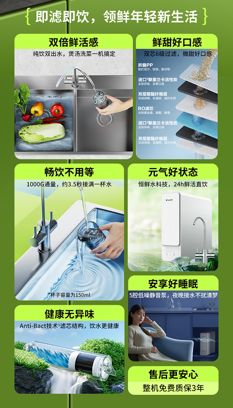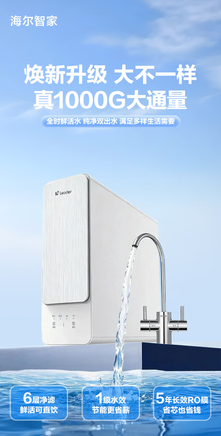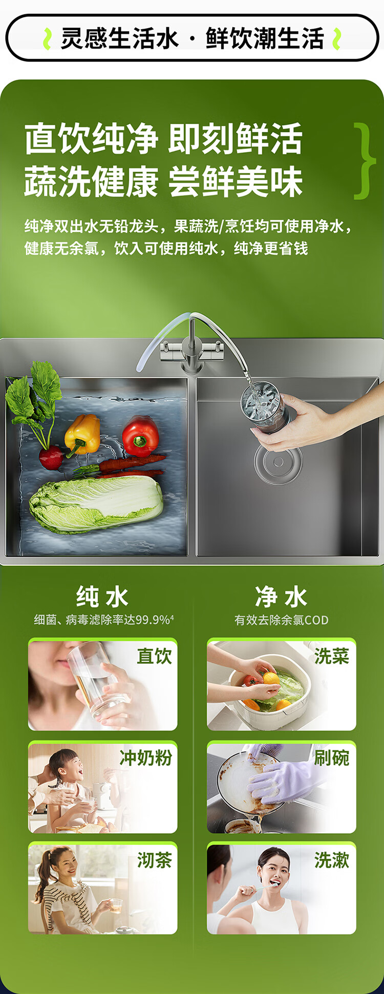 海尔统帅鲜活水净水器管线机套装【国家补贴】厨下母婴级净水机RO反渗透过滤器双出水加热直饮净热一体 【单机】800G鲜活0陈水/4年长效RO膜