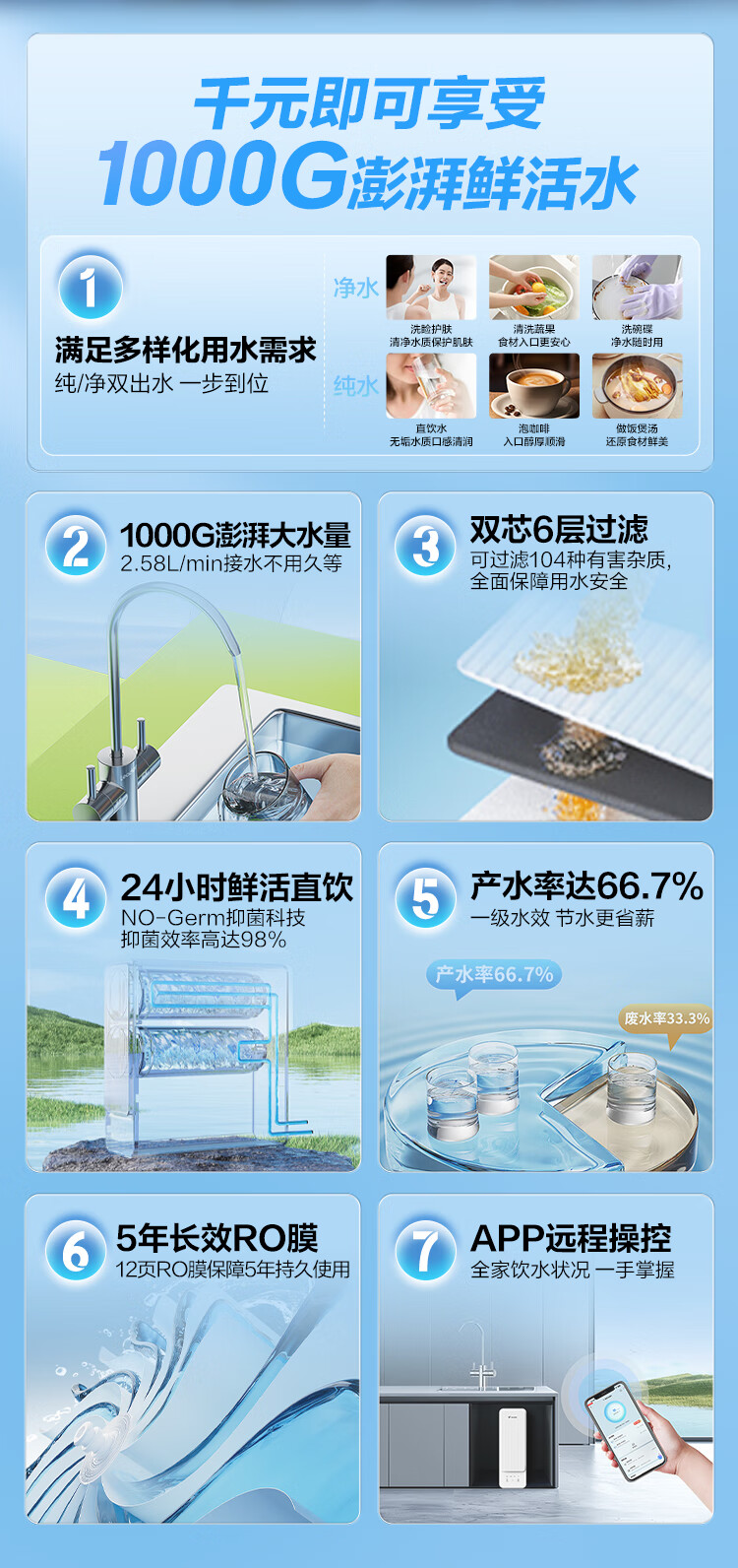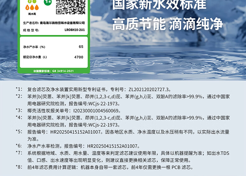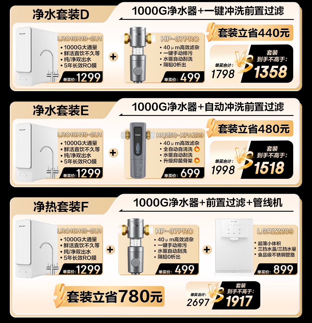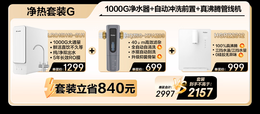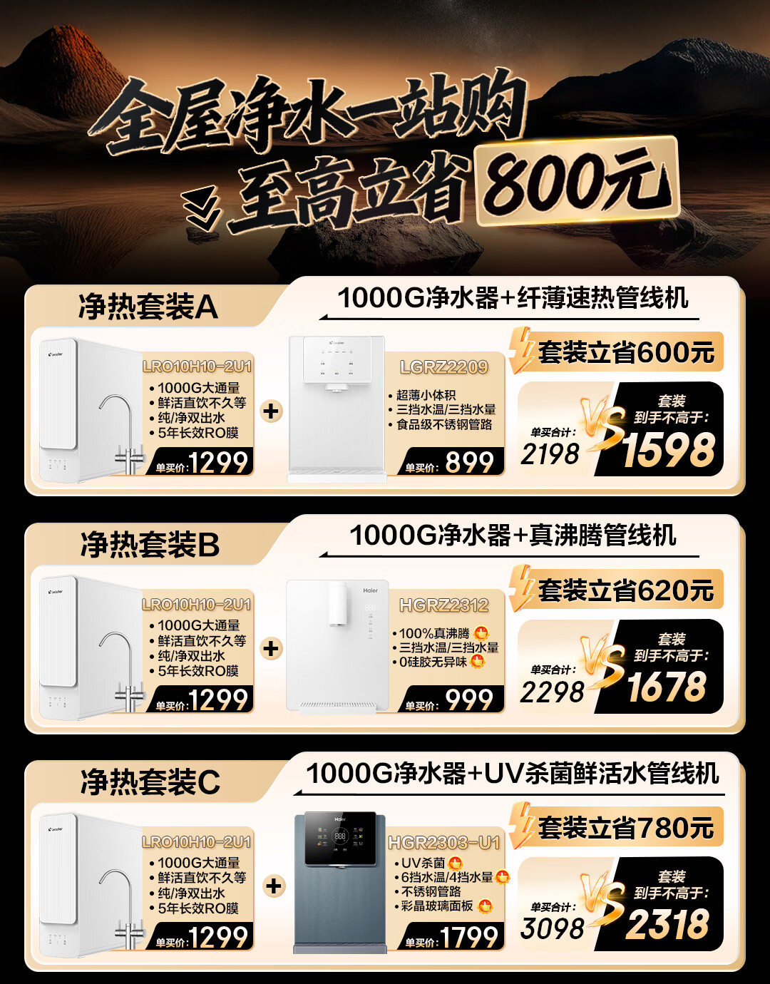 海尔统帅鲜活水净水器管线机套装【国家补贴】厨下母婴级净水机RO反渗透过滤器双出水加热直饮净热一体 【单机】800G鲜活0陈水/4年长效RO膜