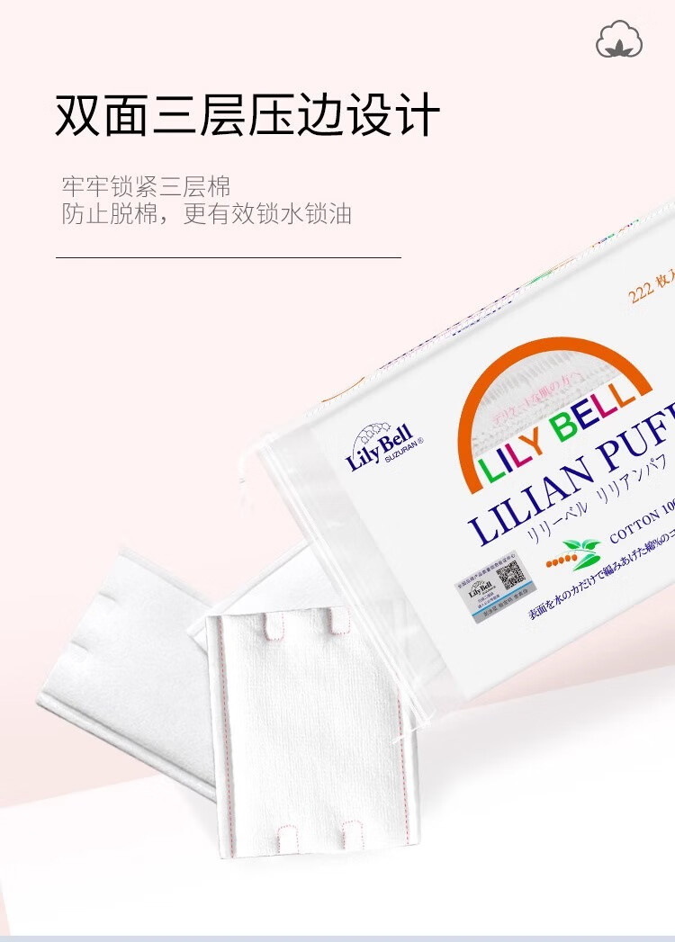 丽丽贝尔轻薄柔软化妆棉干湿两用日本进口官方正品 常规款 2包 共462枚