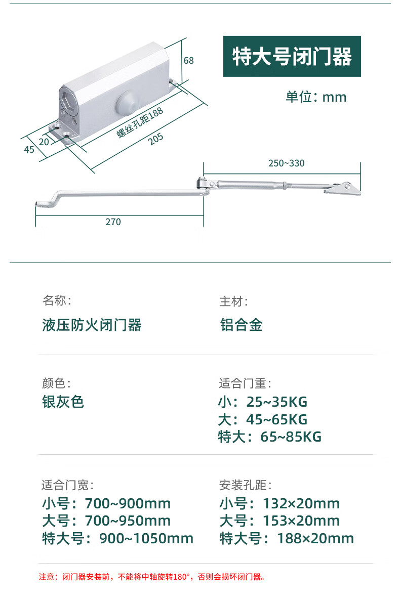 威龙原子自动闭门器液压缓冲关门装置家用简易关门器消防定位防火门闭门器 小号(门重25-35KG定位款)
