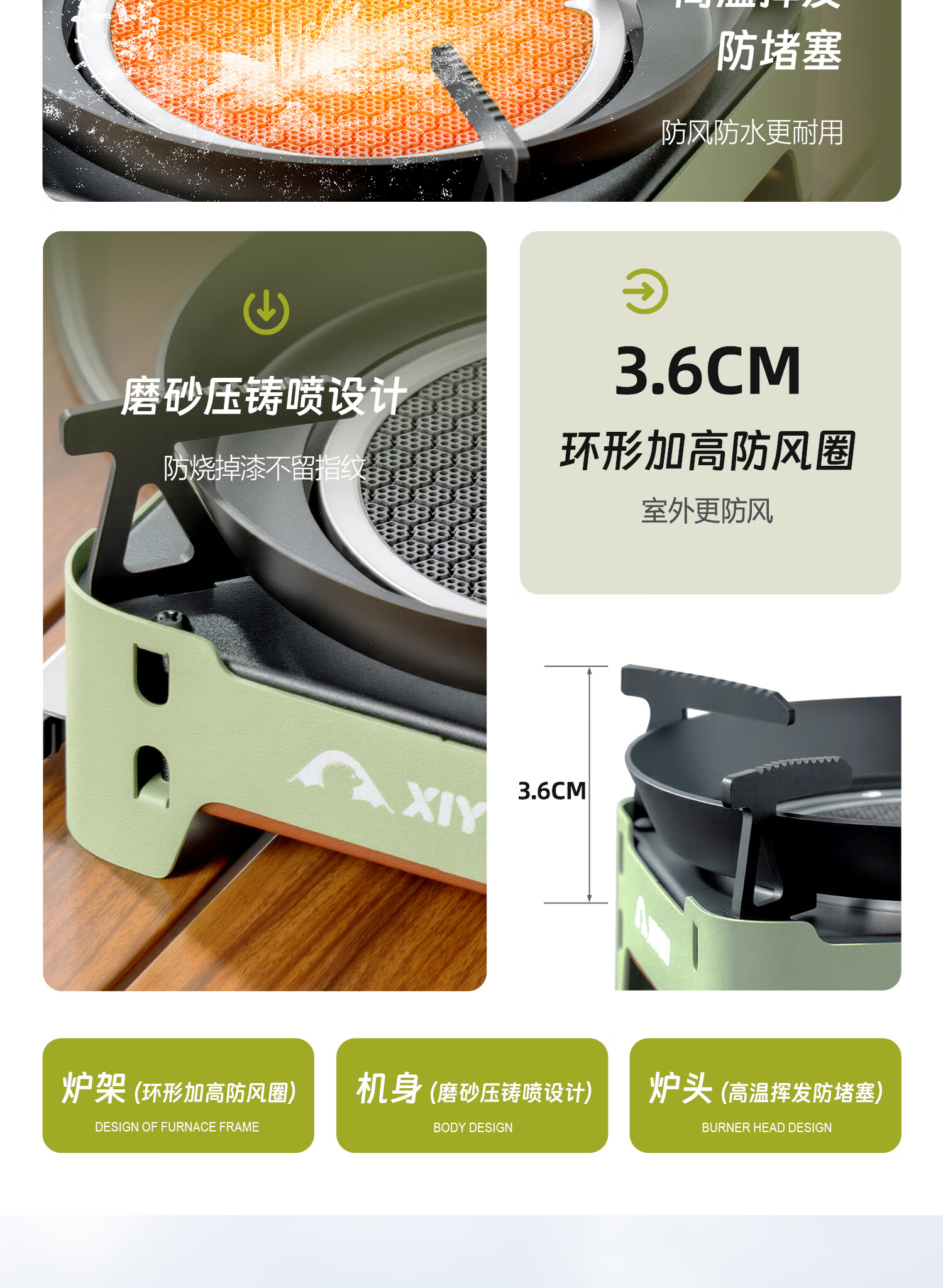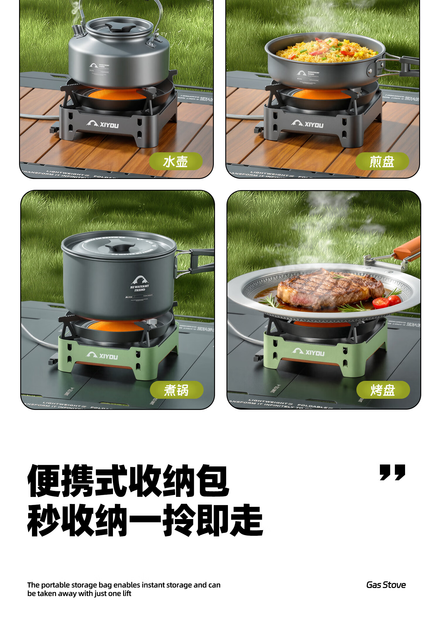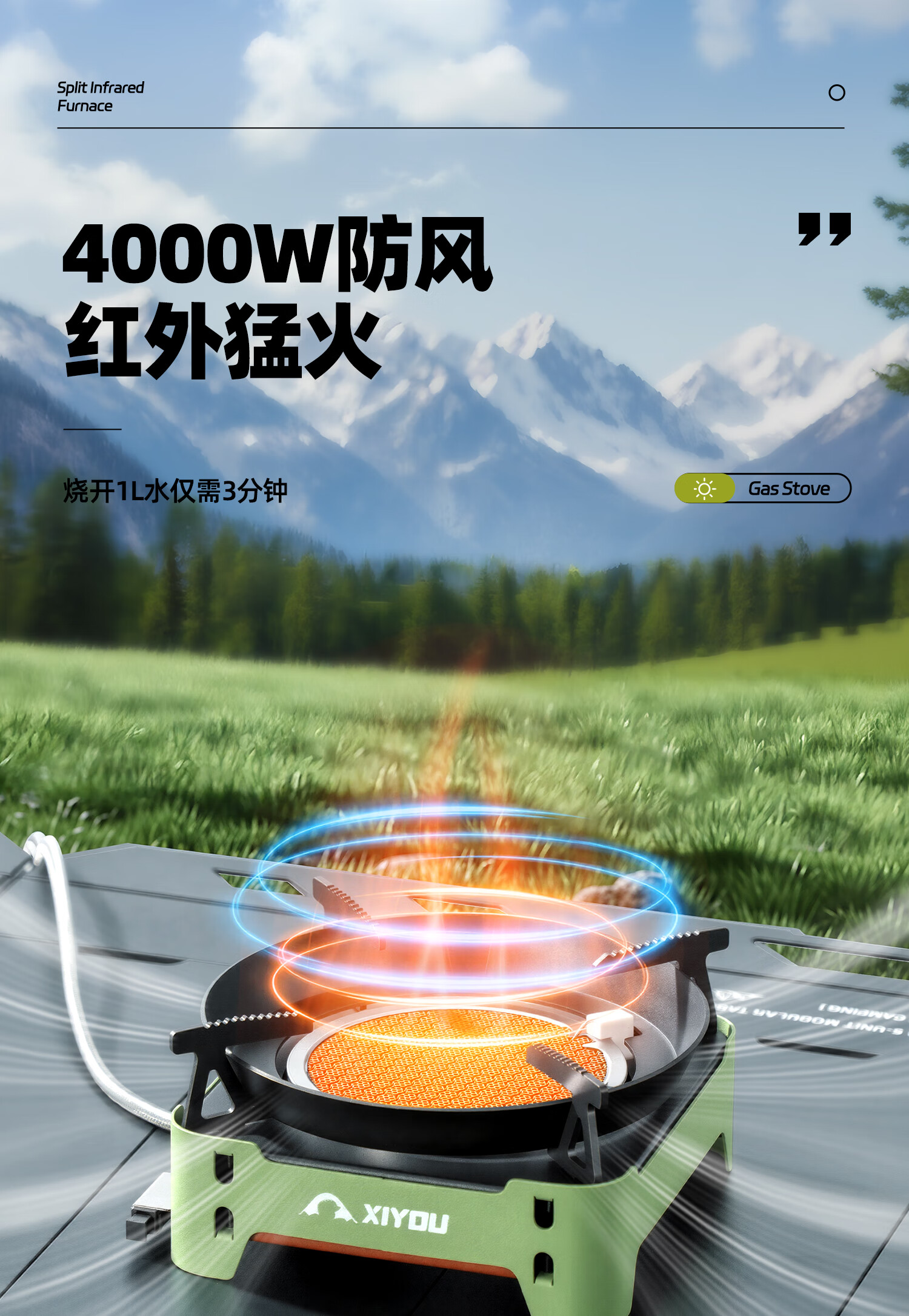 嘻由红外线卡式炉分体式户外新款燃气炉灶煮茶便携炉炊具露营装备全套 【4000W三代红外炉】+4卡式瓶气 流光绿【超薄节能红外猛火】