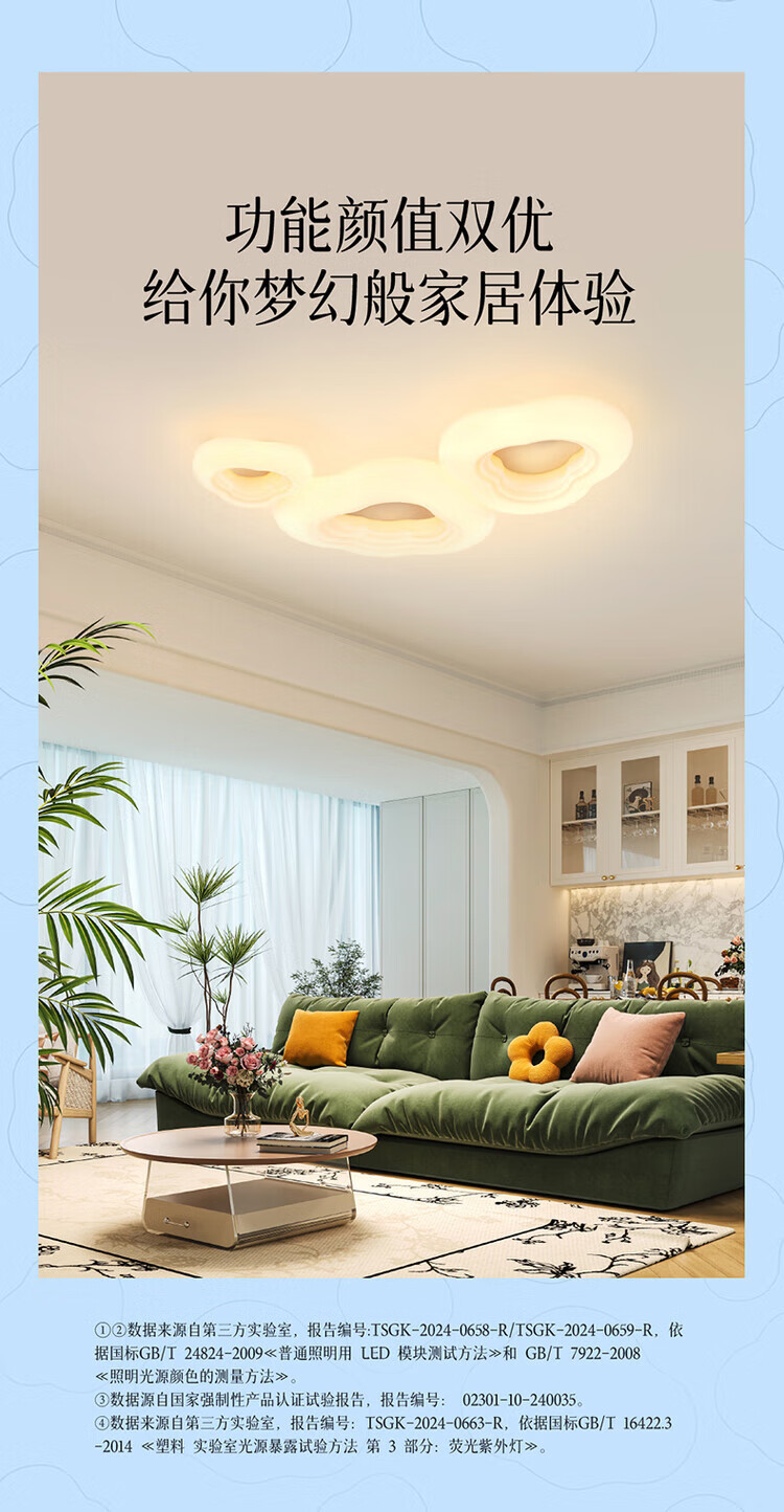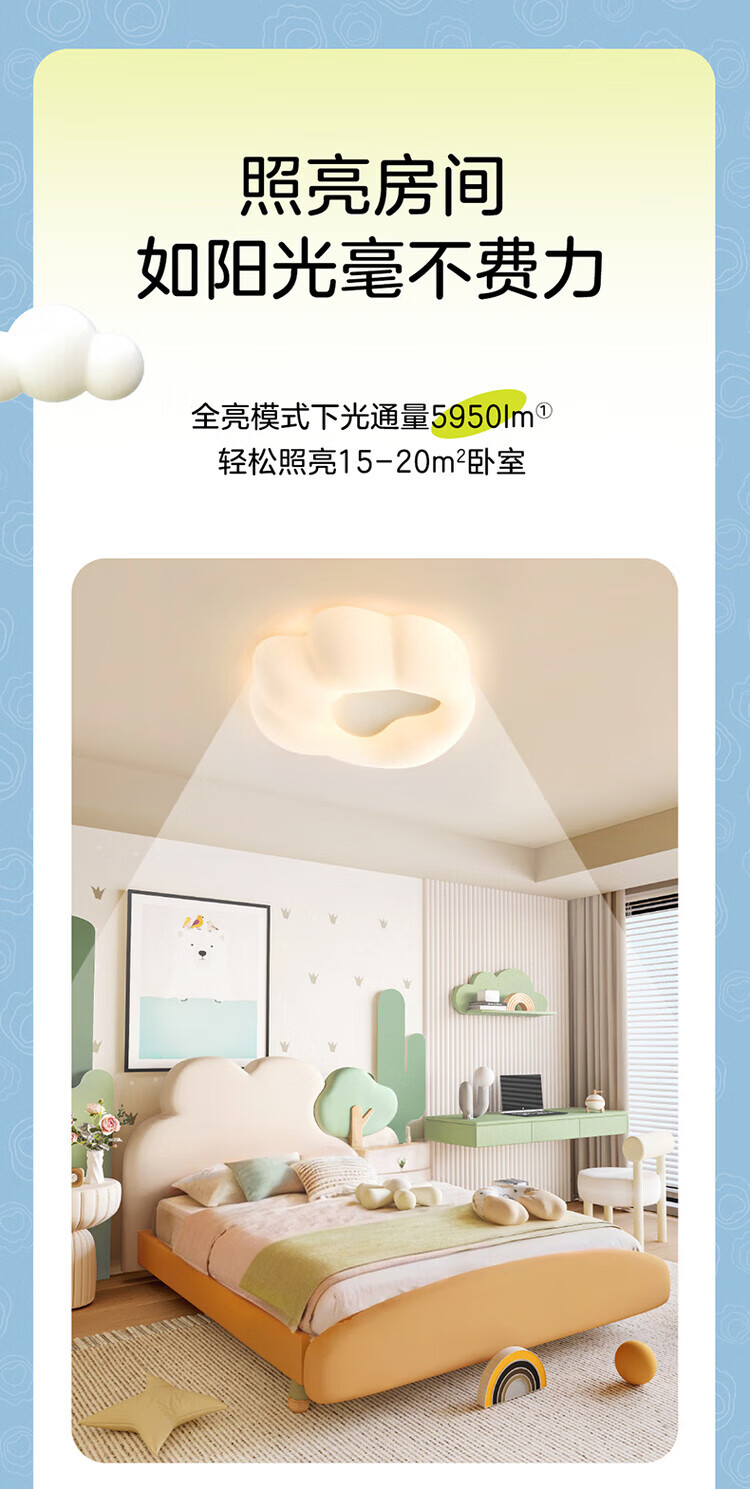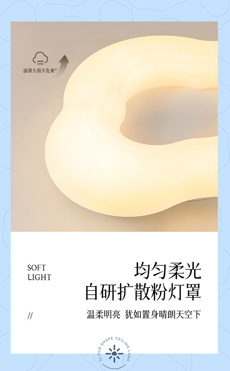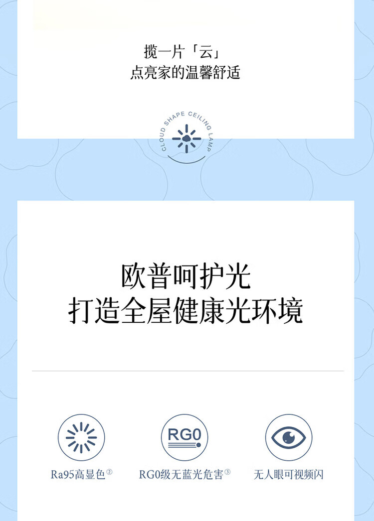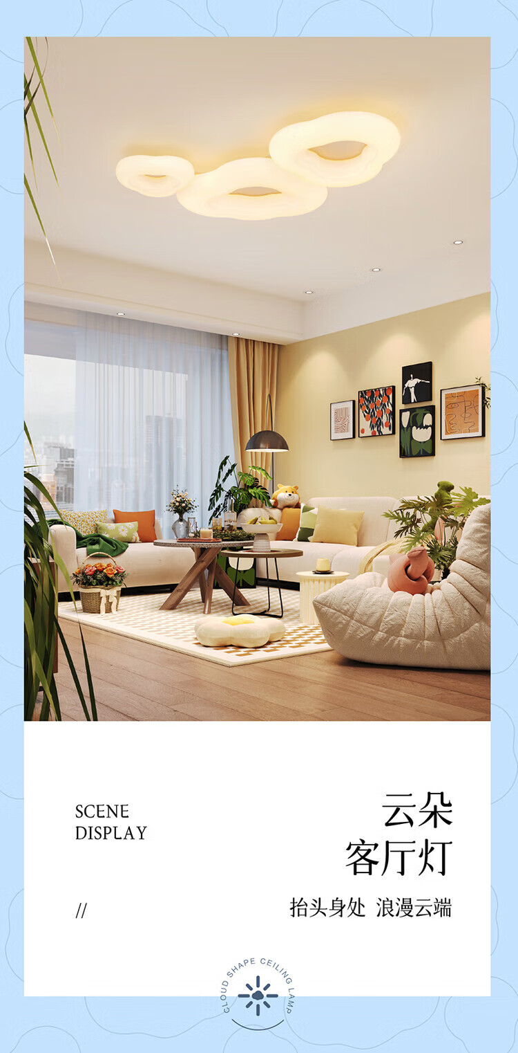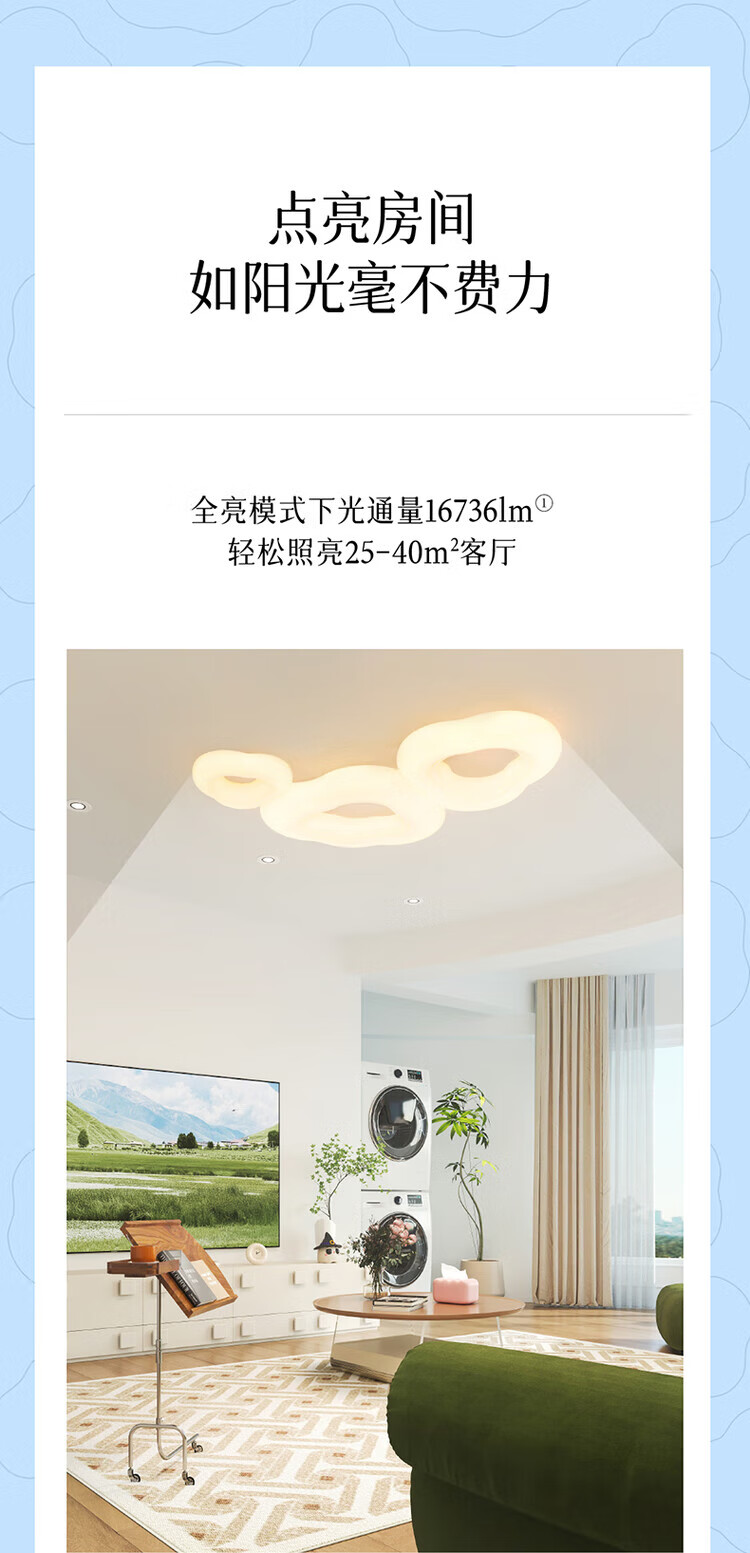 欧普照明(OPPLE)/白云朵朵/奶油风高亮护眼吸顶灯客厅温馨智控DD 【客厅】【智控】白云朵朵