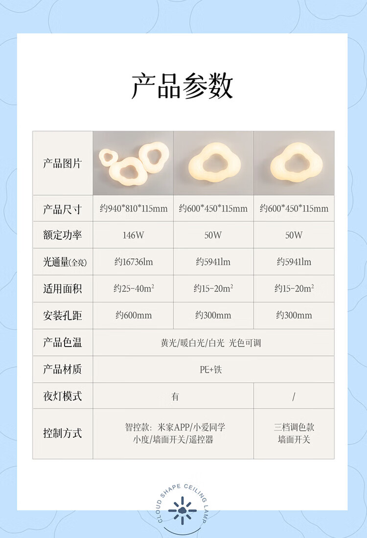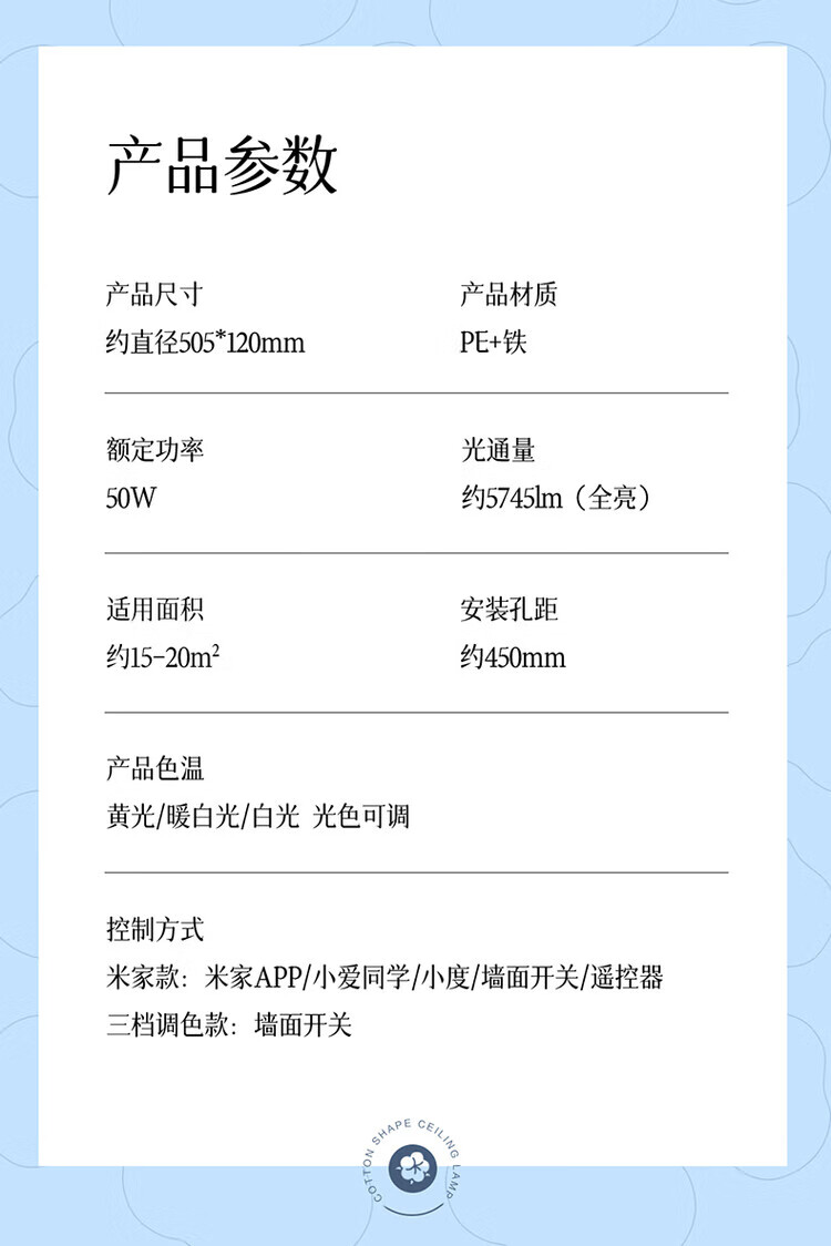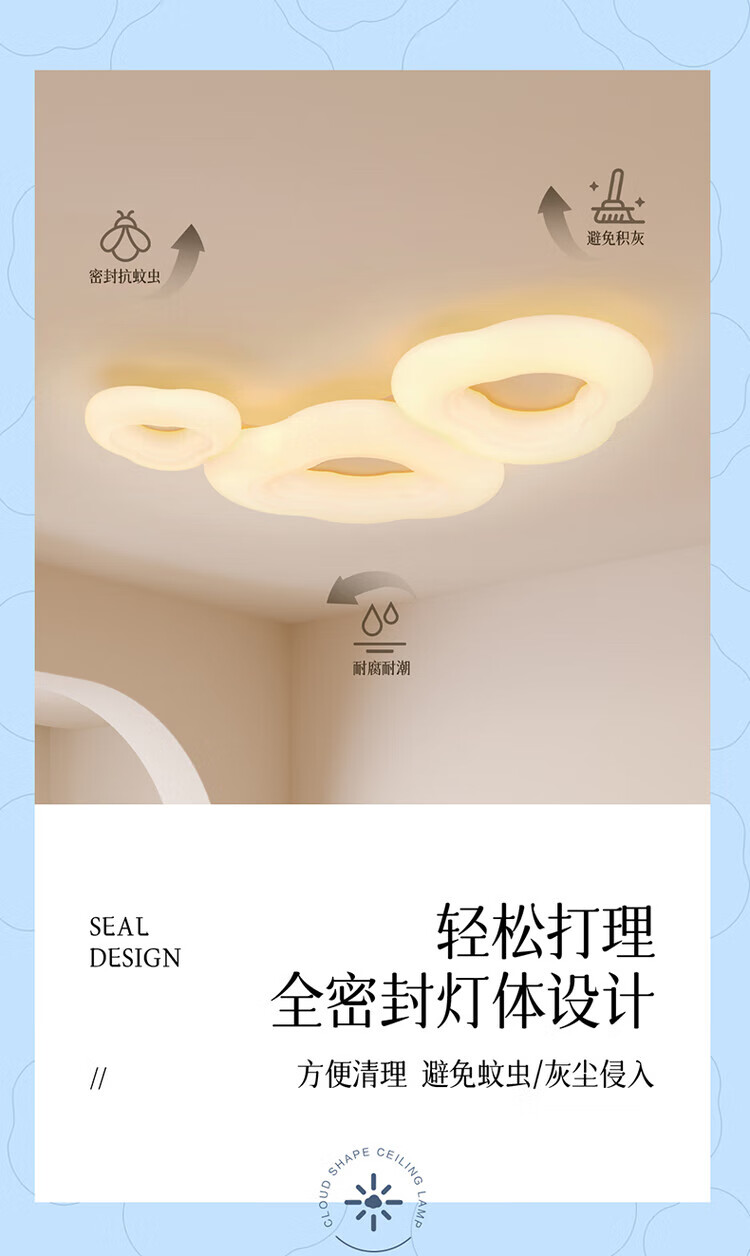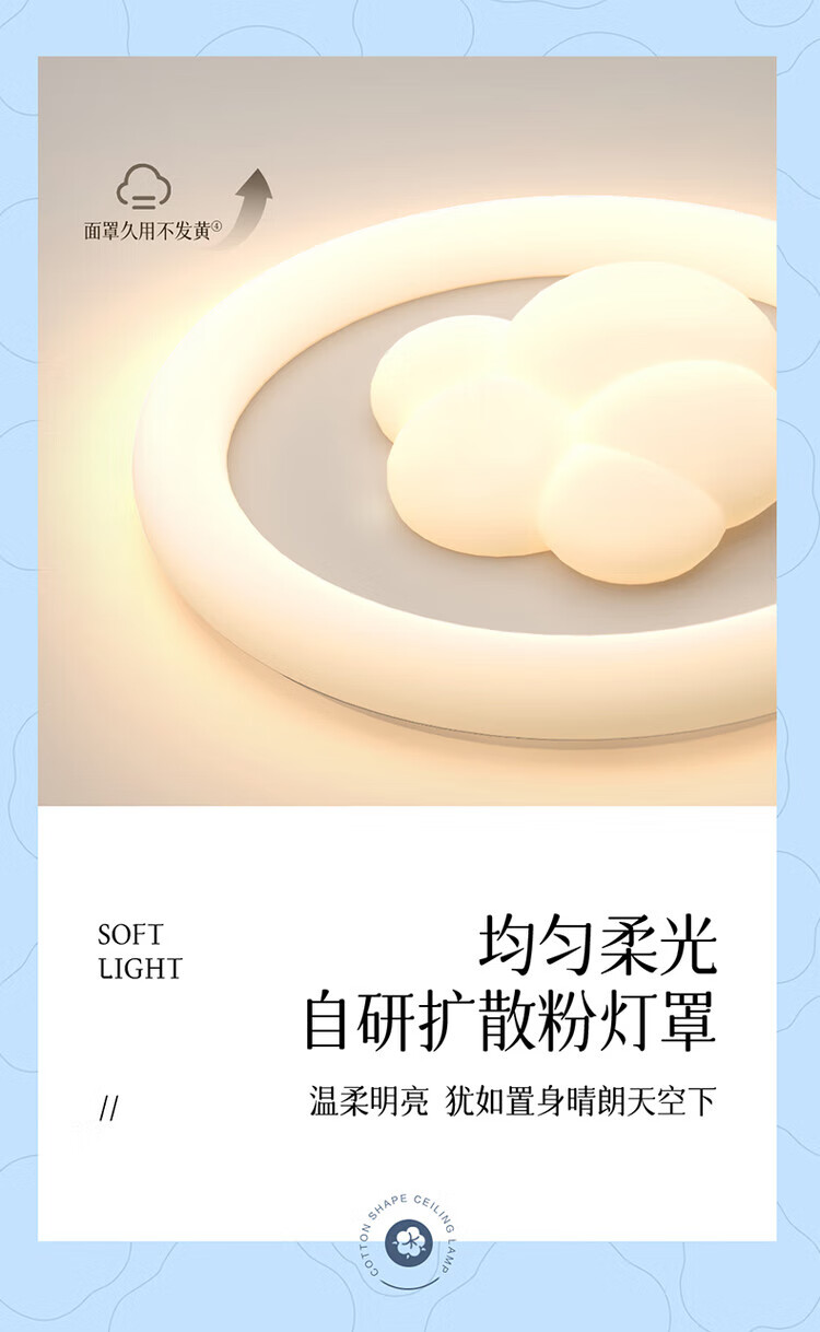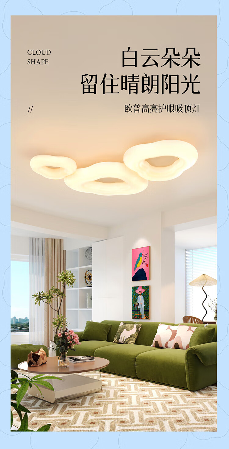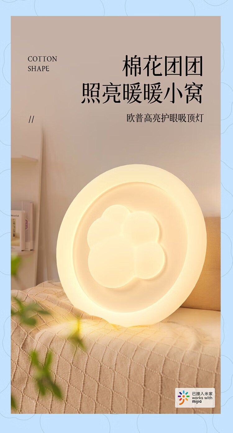 欧普照明(OPPLE)/白云朵朵/奶油风高亮护眼吸顶灯客厅温馨智控DD 【客厅】【智控】白云朵朵