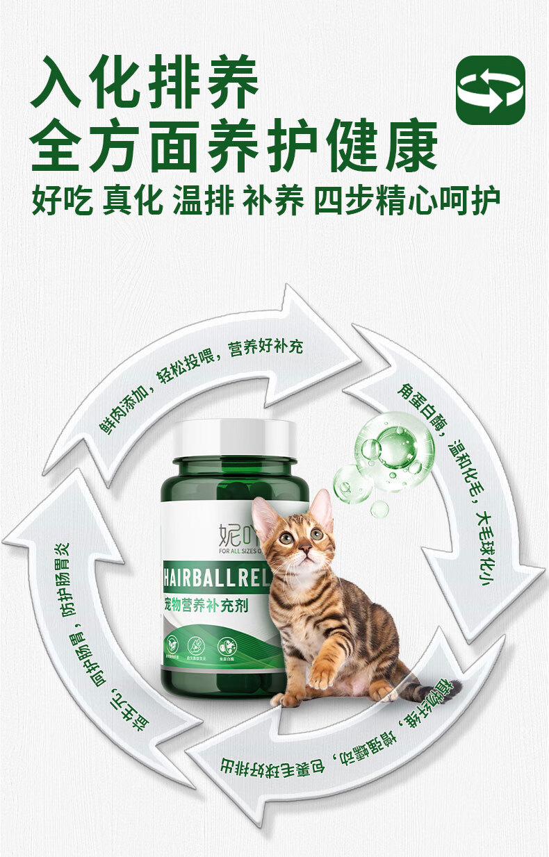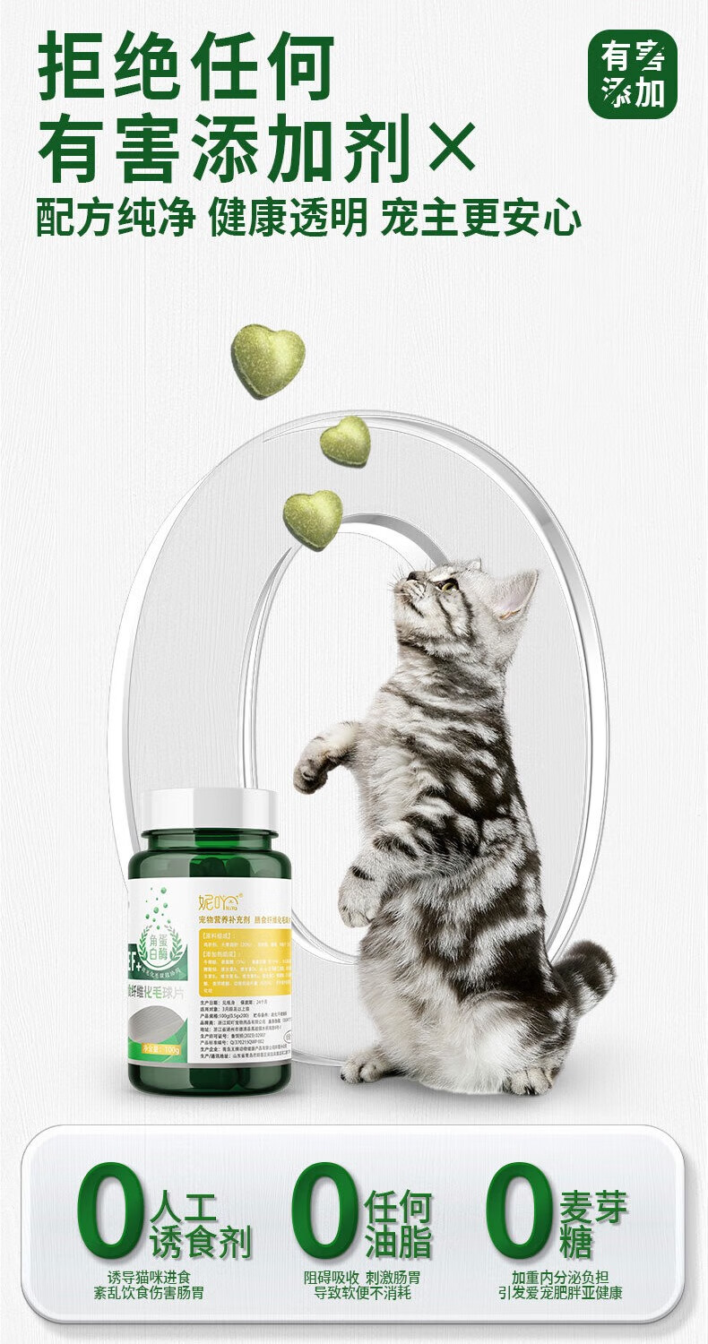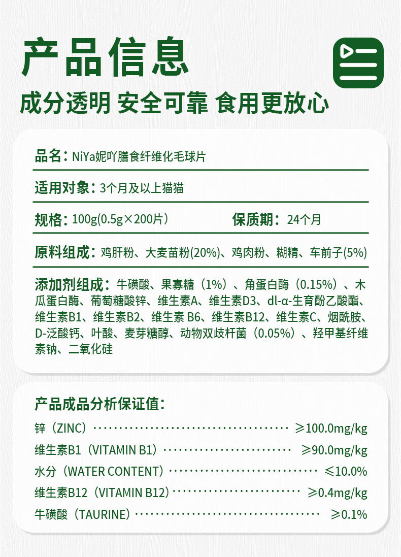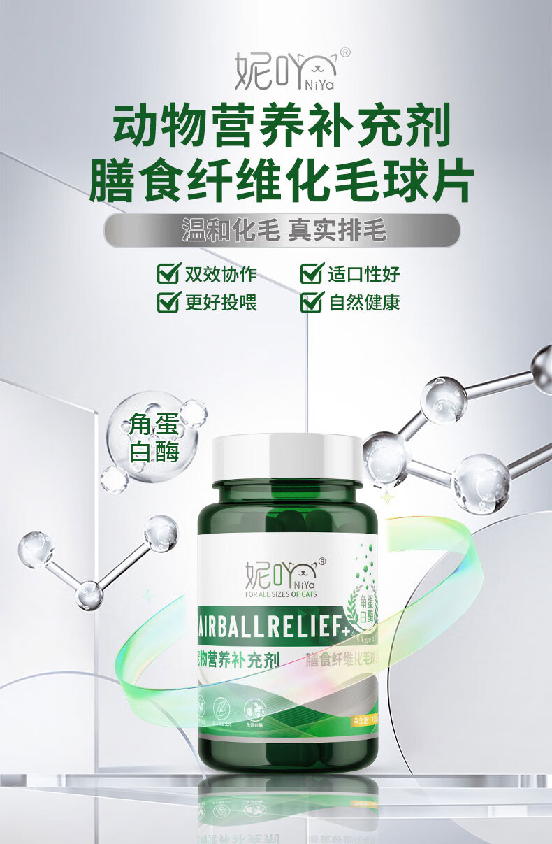 妮吖膳食纤维猫草片化毛片绿十字化毛膏猫咪专用排除吐毛球去毛球 膳食纤维化毛片100g 正装1瓶(0.5g*200片)