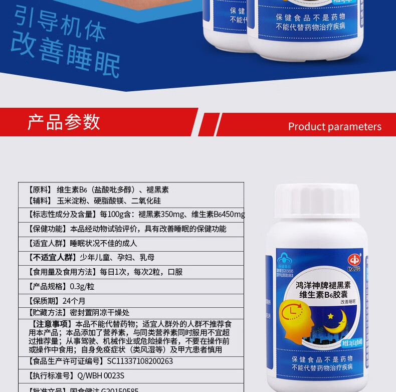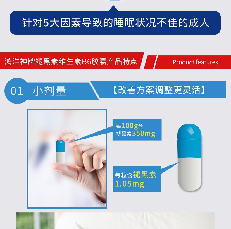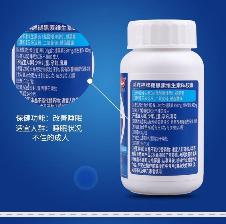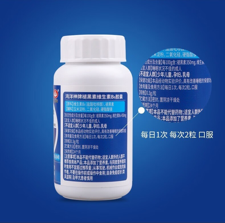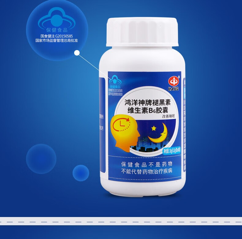以岭 褪黑素 退黑素 鸿洋神牌褪黑素维生素B6软胶囊 改善睡眠 60粒/瓶 60粒/瓶