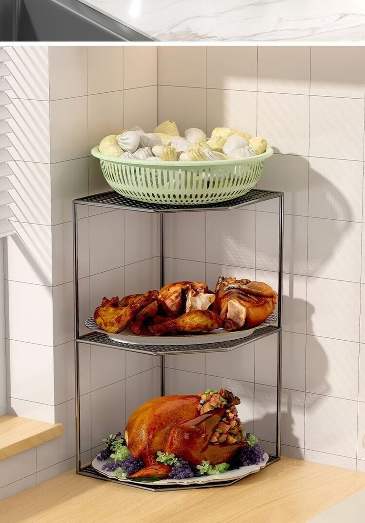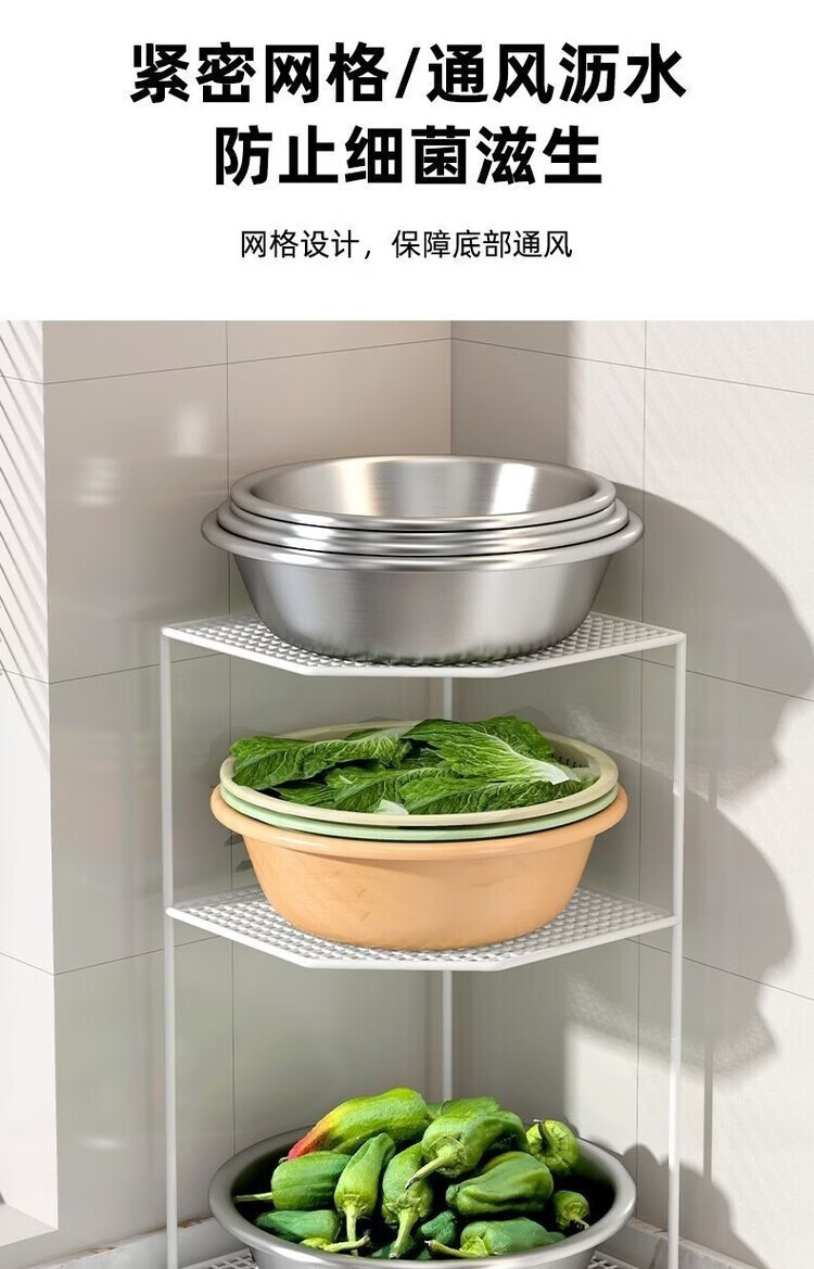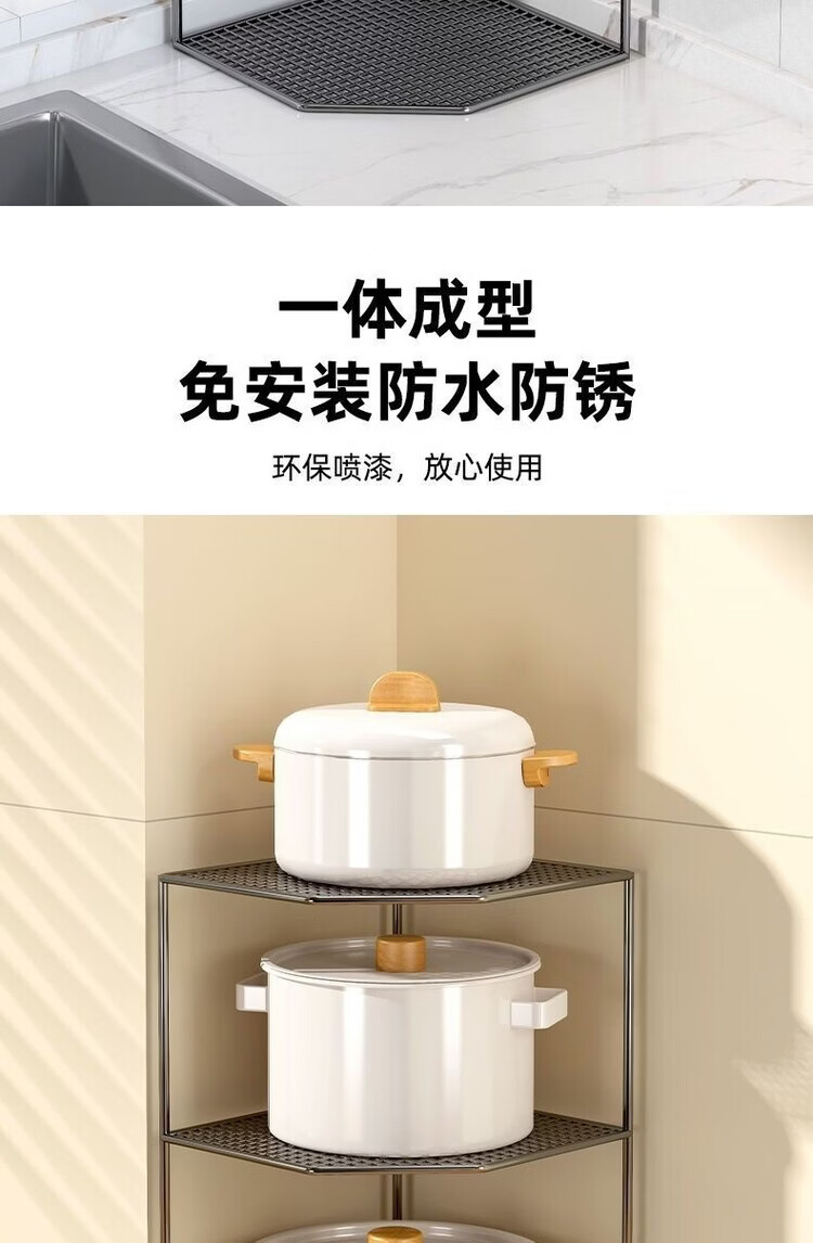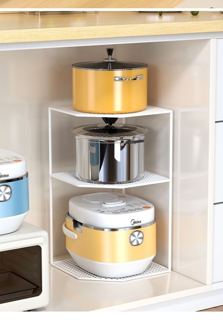 咏夏厨房锅架放锅三角架子锅具收纳水槽下转角落地台面家用多层置物架 白色两层转角架【加高款】