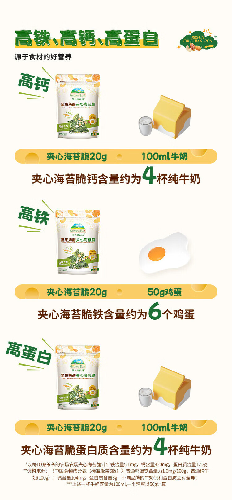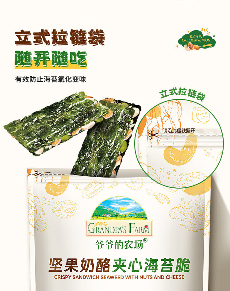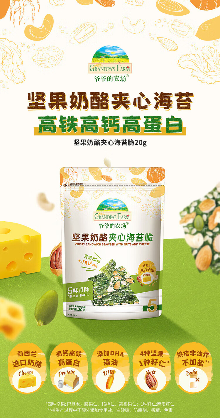 爷爷的农场奶酪夹心海苔脆宝宝解馋 大西梅营养辅食儿童出行零食 坚果奶酪夹心海苔脆20g