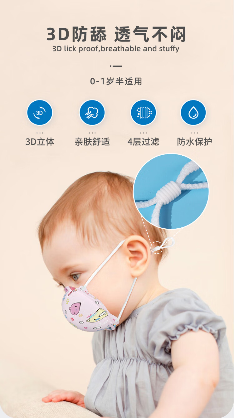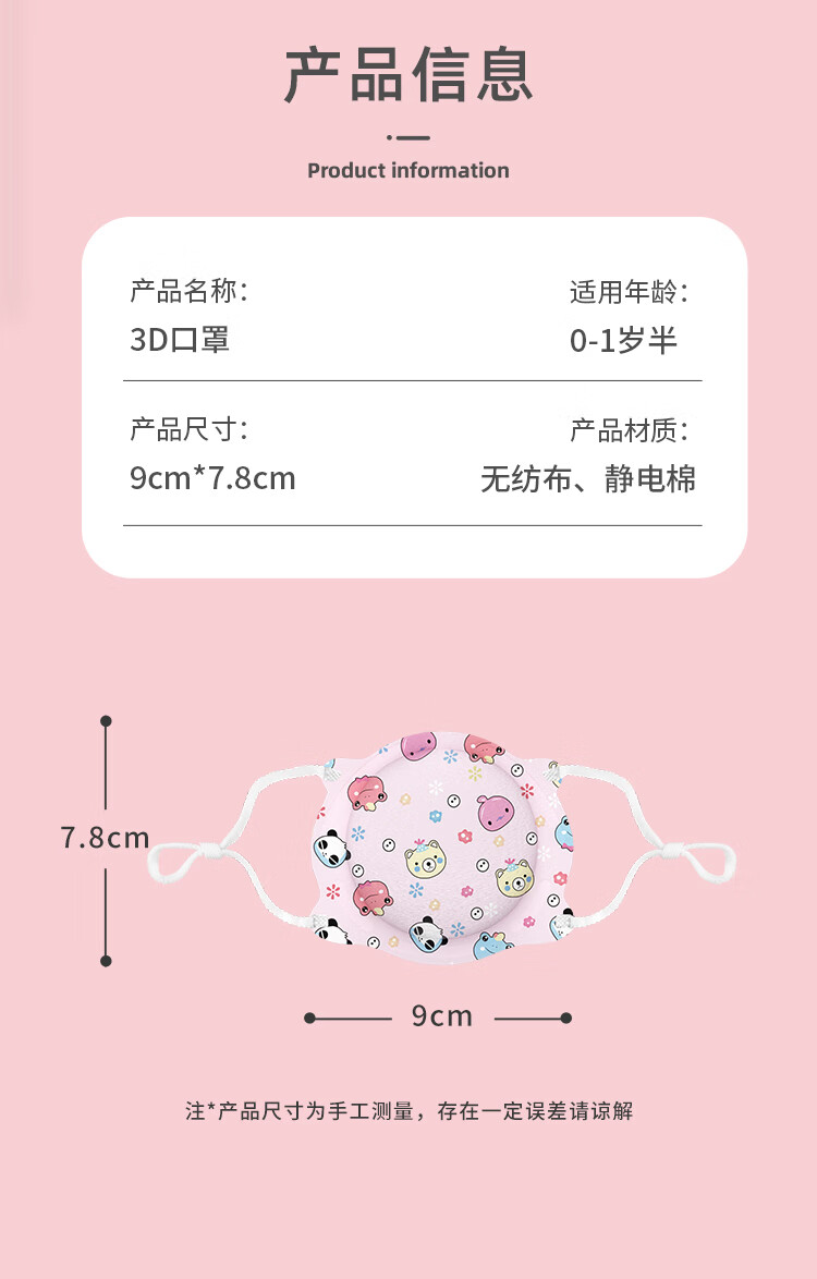 金本士婴儿宝宝儿童口罩新生婴幼儿3D立体透气0-6月-12个月到1岁半粉8枚
