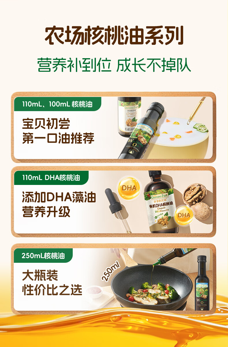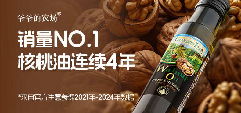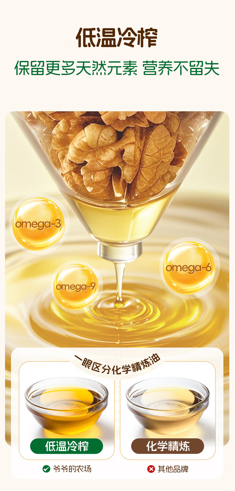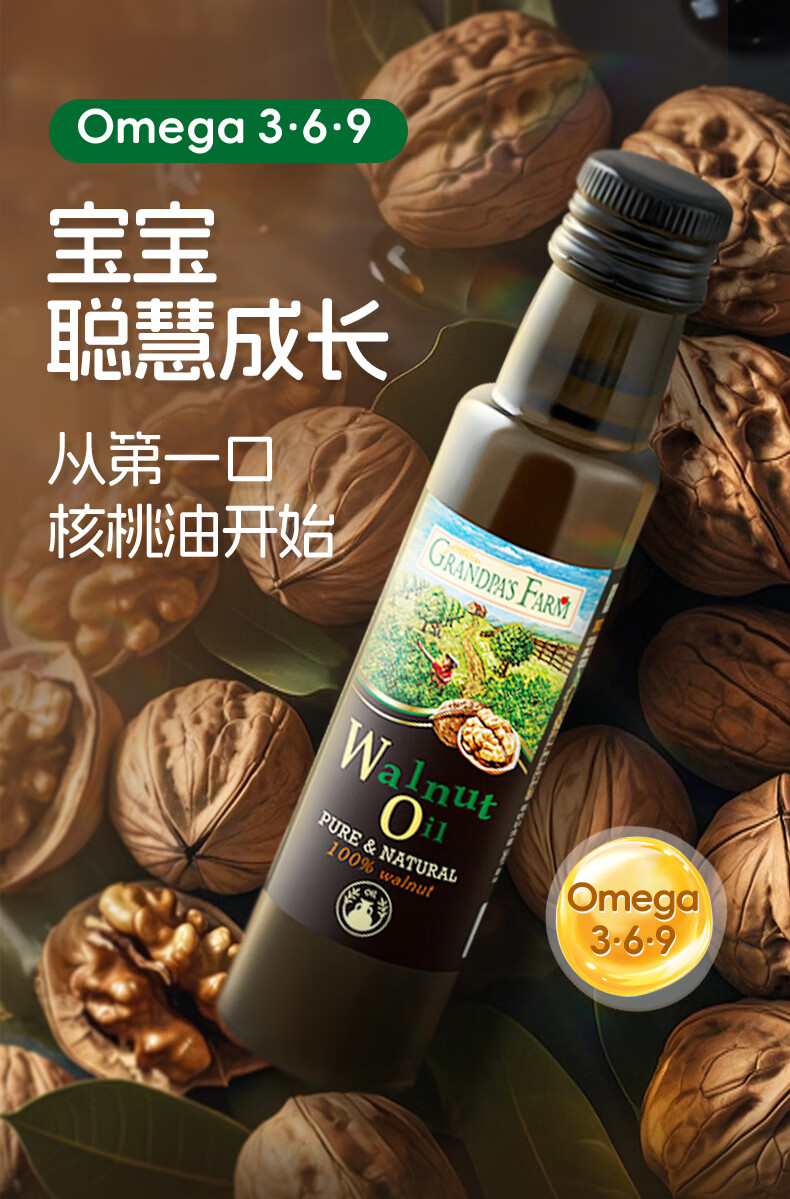 爷爷的农场食用油 冷榨初榨宝宝孕妇可用营养辅食油品 核桃油100ml