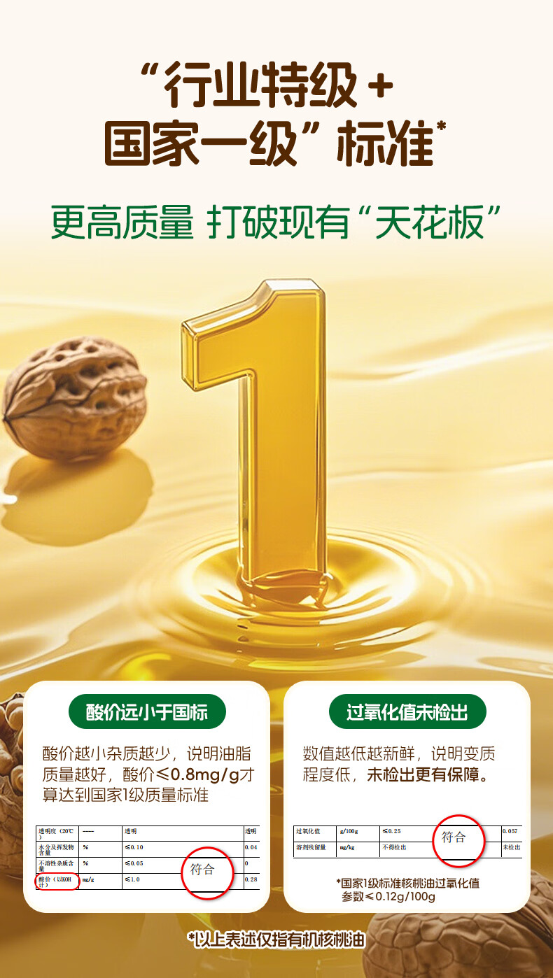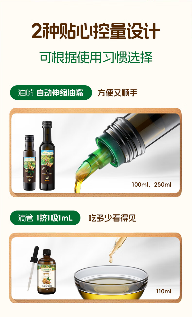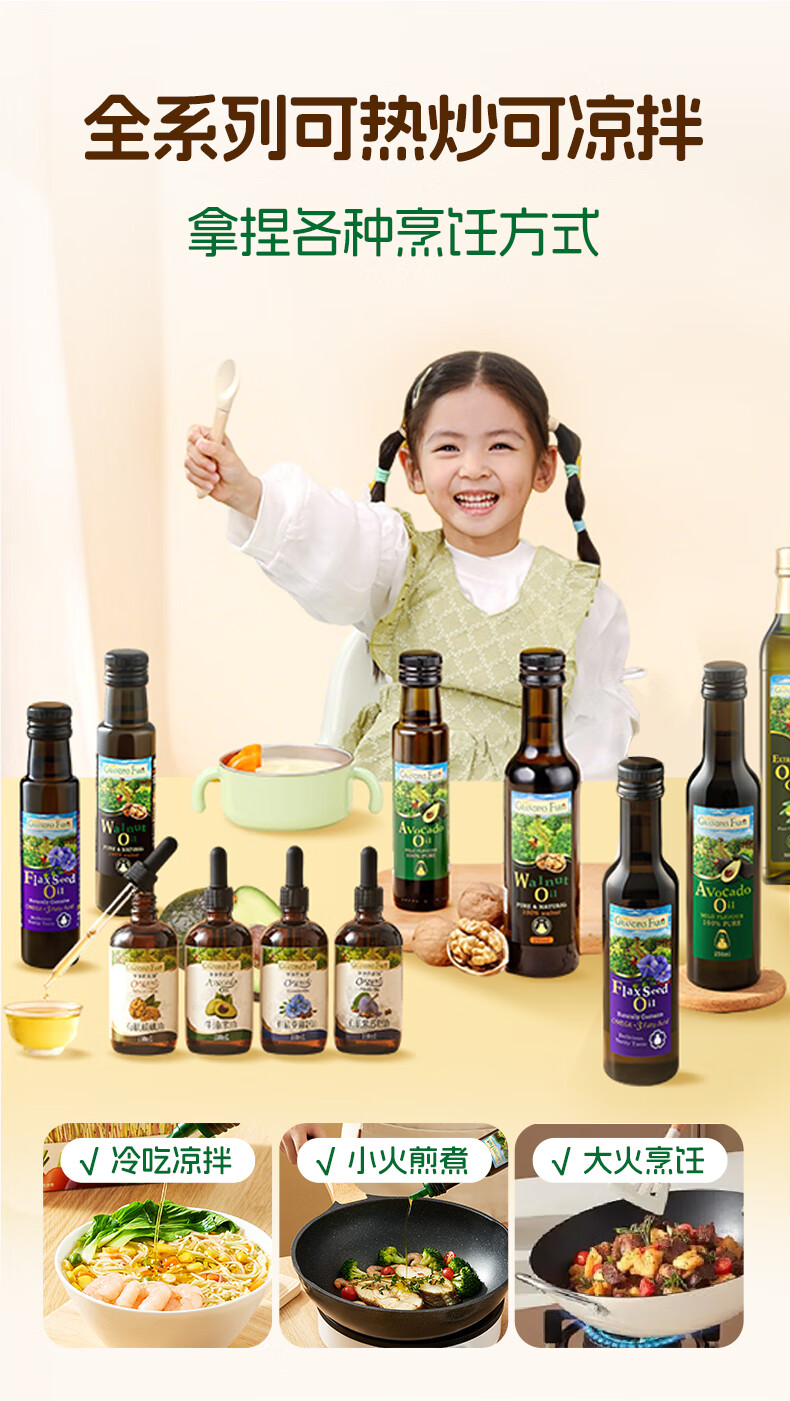 爷爷的农场食用油 冷榨初榨宝宝孕妇可用营养辅食油品 核桃油100ml