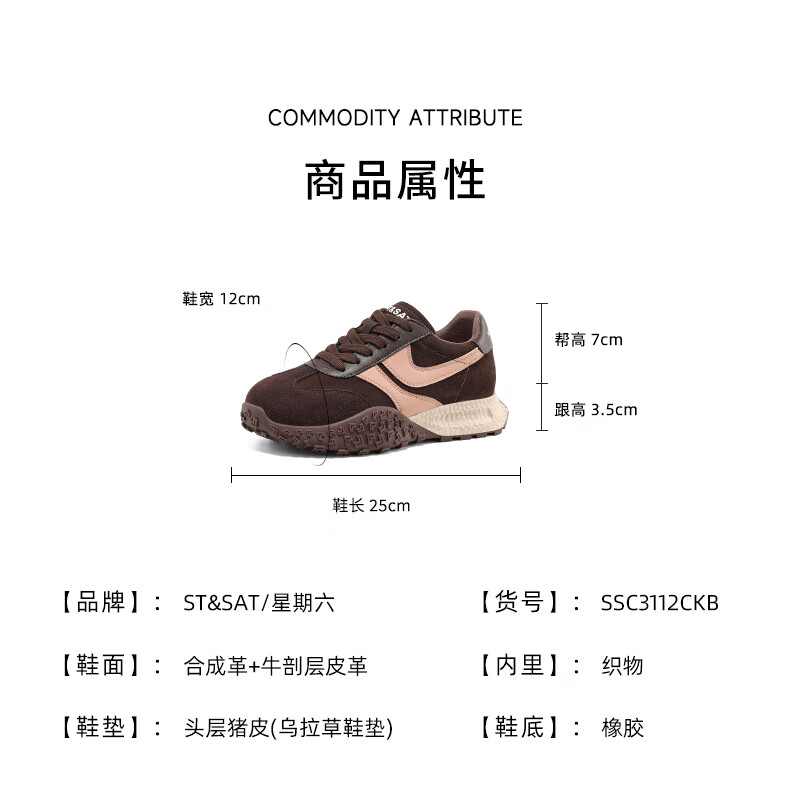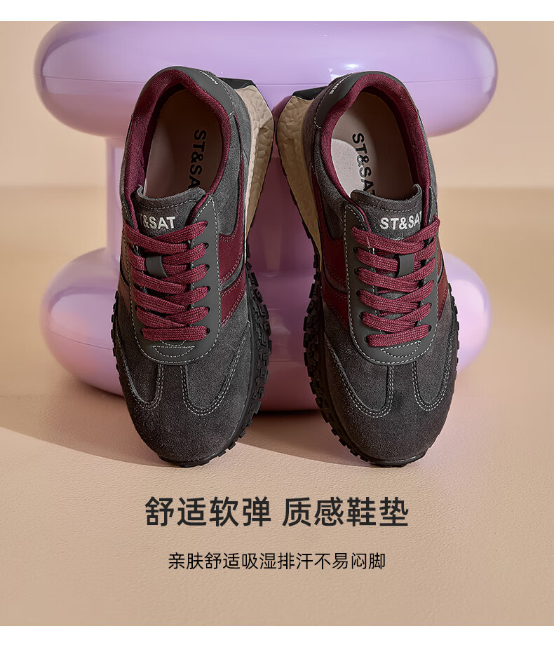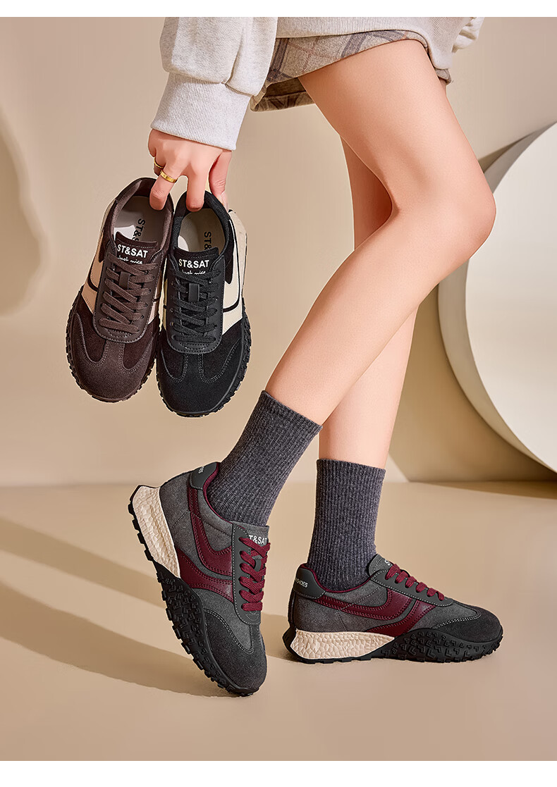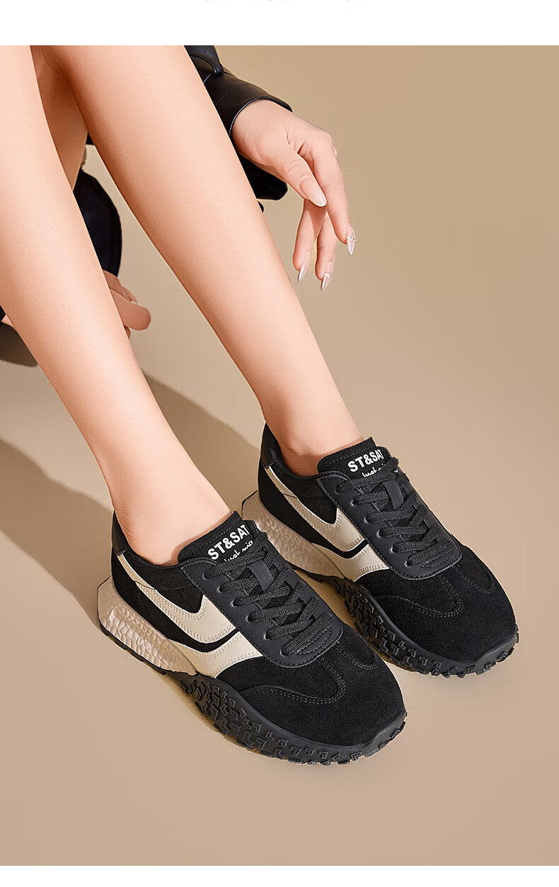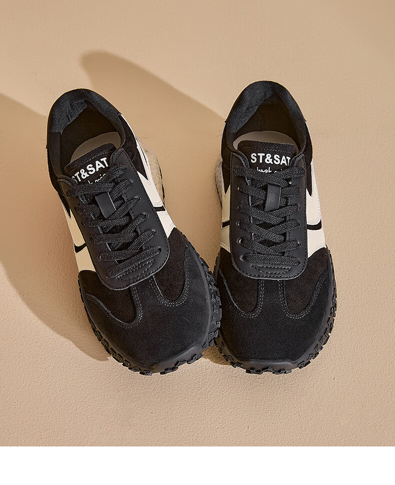 星期六(St&Sat)星期六2025春季新款复古透气潮流平底休闲鞋时尚百搭拼色德训鞋女 黑色 37