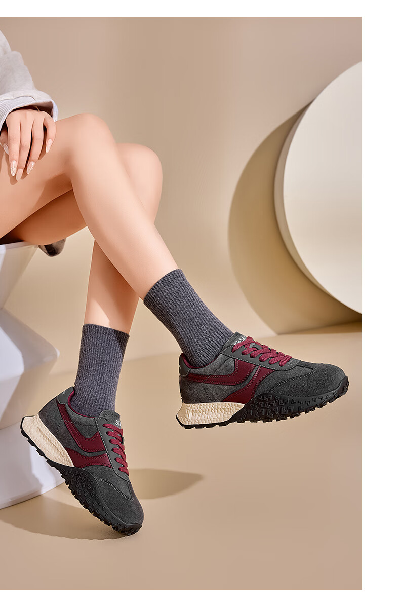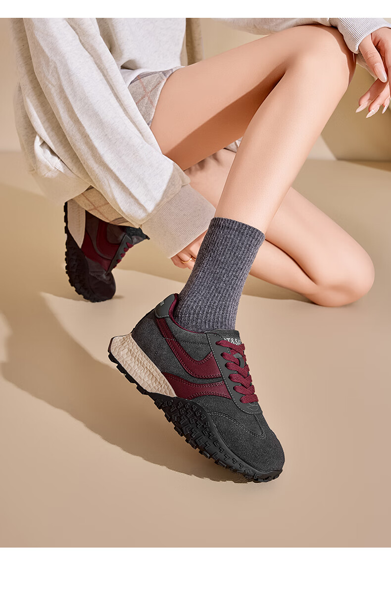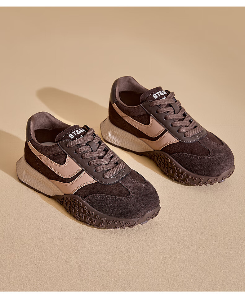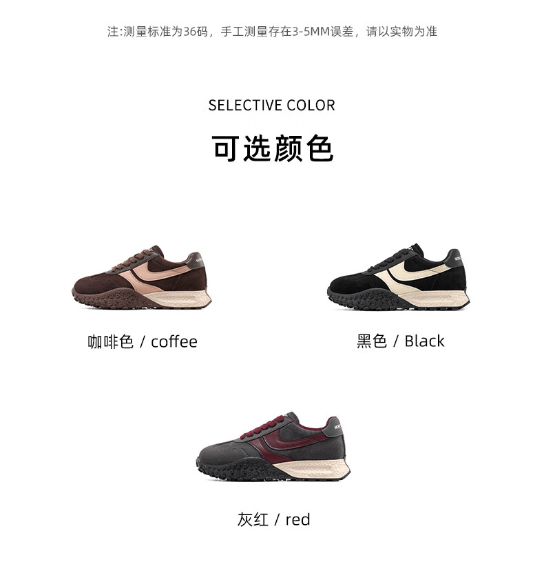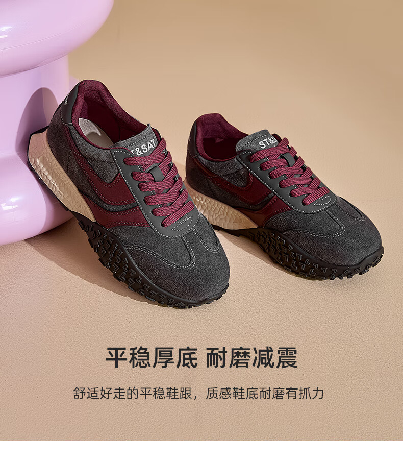 星期六(St&Sat)星期六2025春季新款复古透气潮流平底休闲鞋时尚百搭拼色德训鞋女 黑色 37