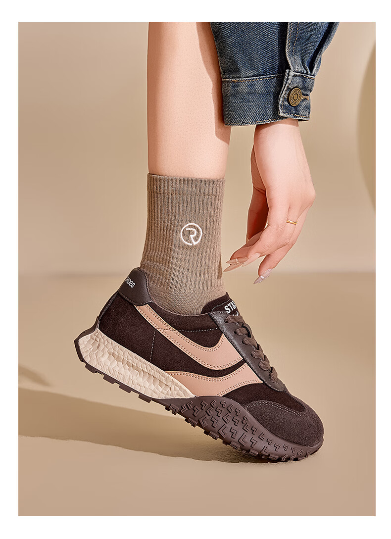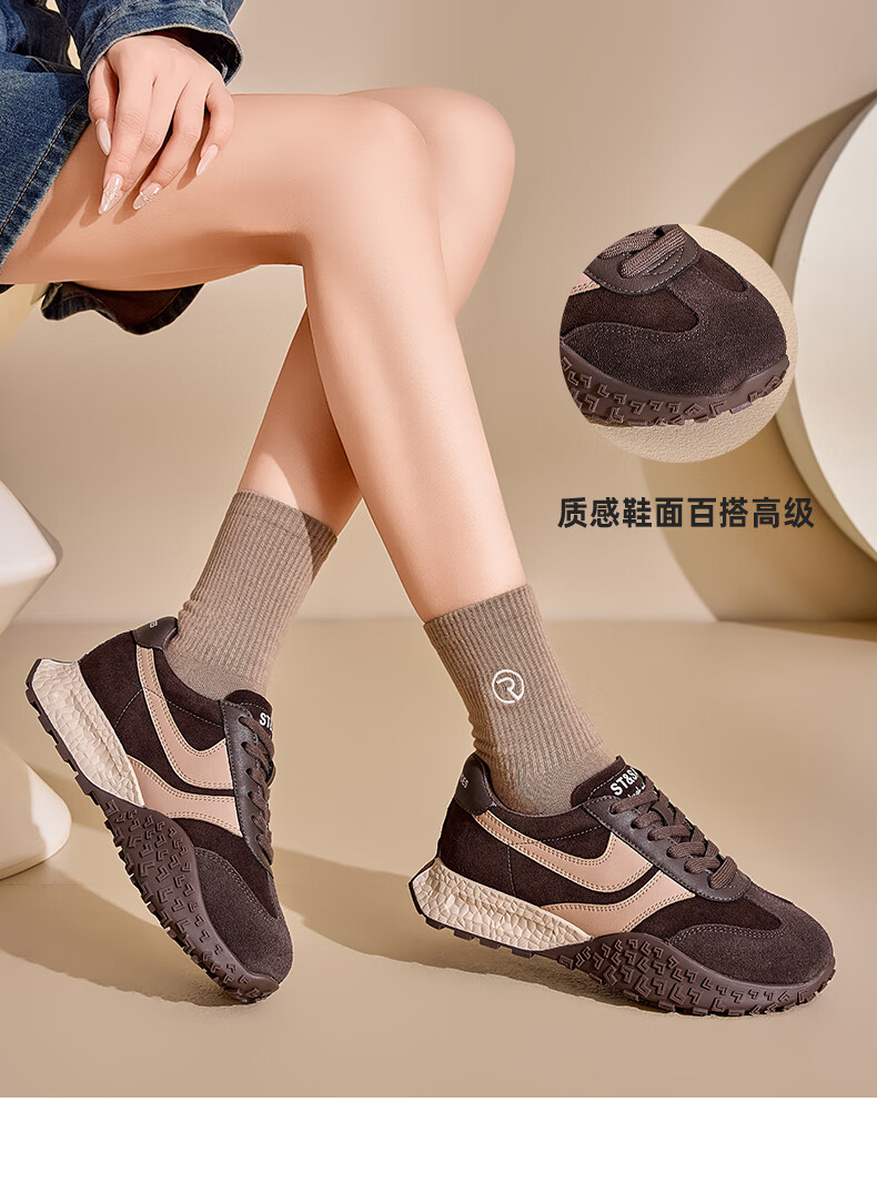 星期六德训鞋女2025新款秋冬软底复古阿甘鞋时尚百搭低帮平底单鞋女鞋 驼色 37
