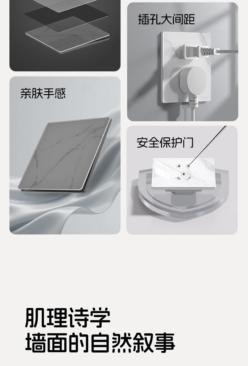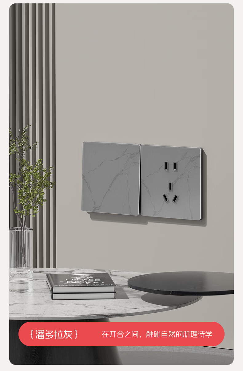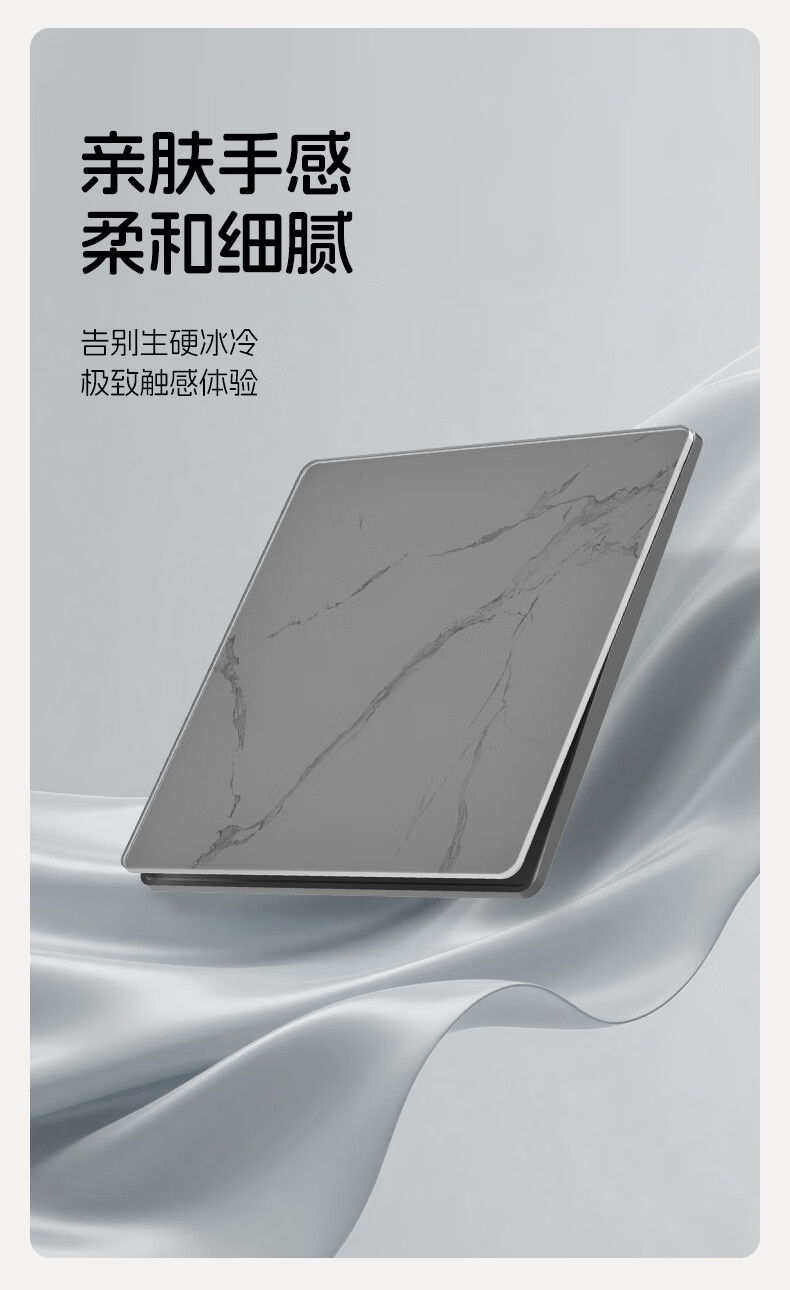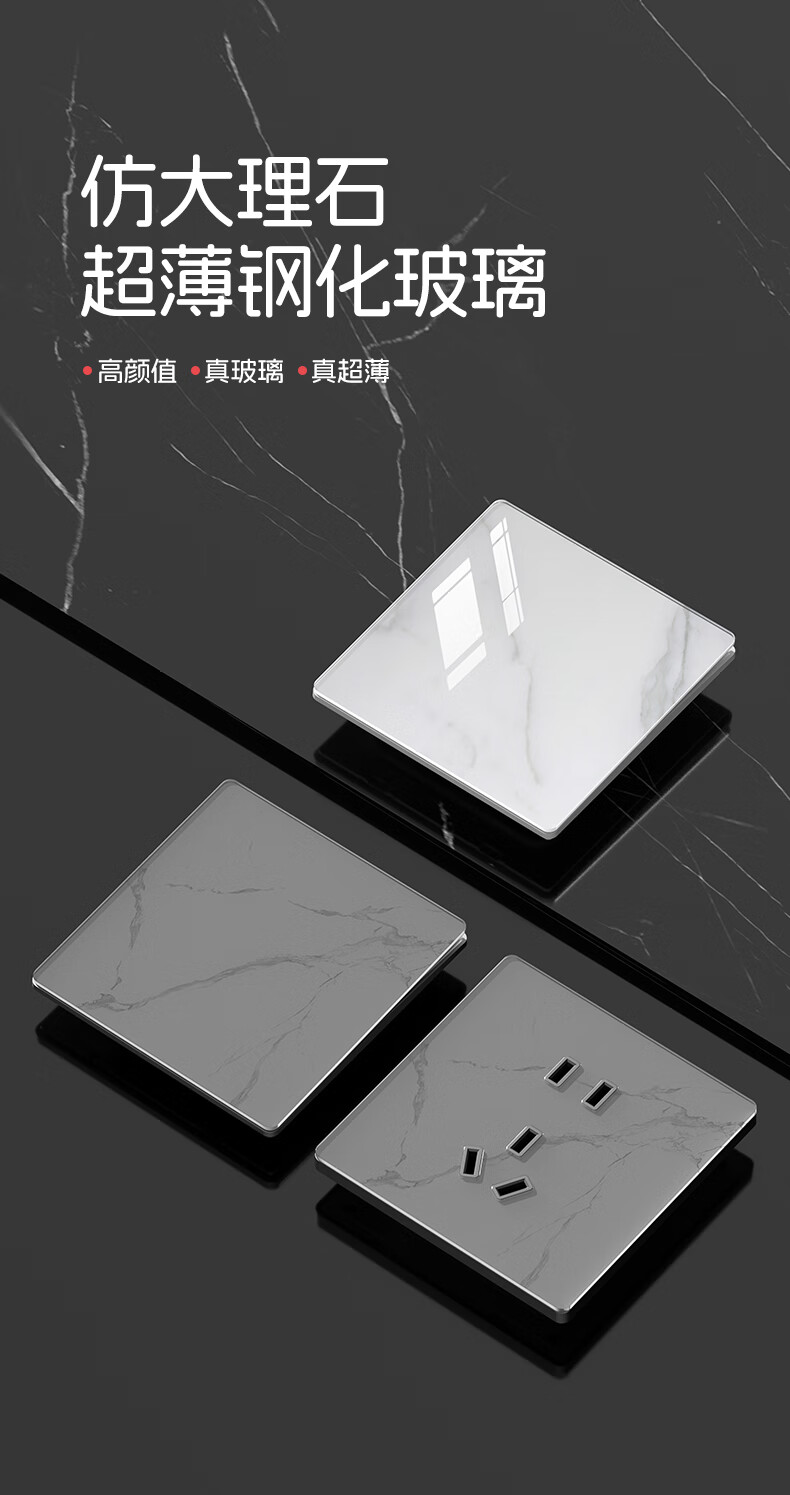 国际电工86型暗装超薄5.6mm钢化玻璃开关水转印纹理面板亲肤灰色五孔插座 16A三孔-肤感灰