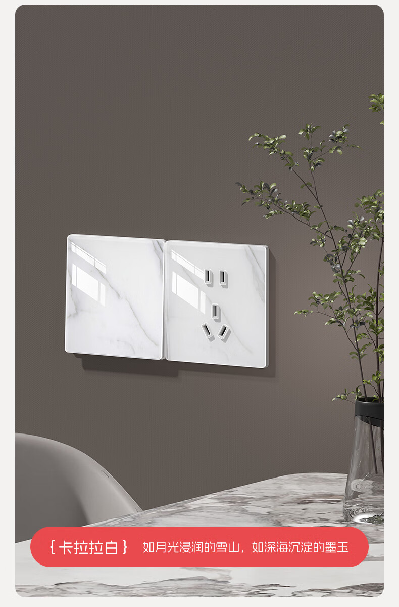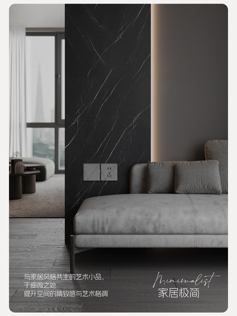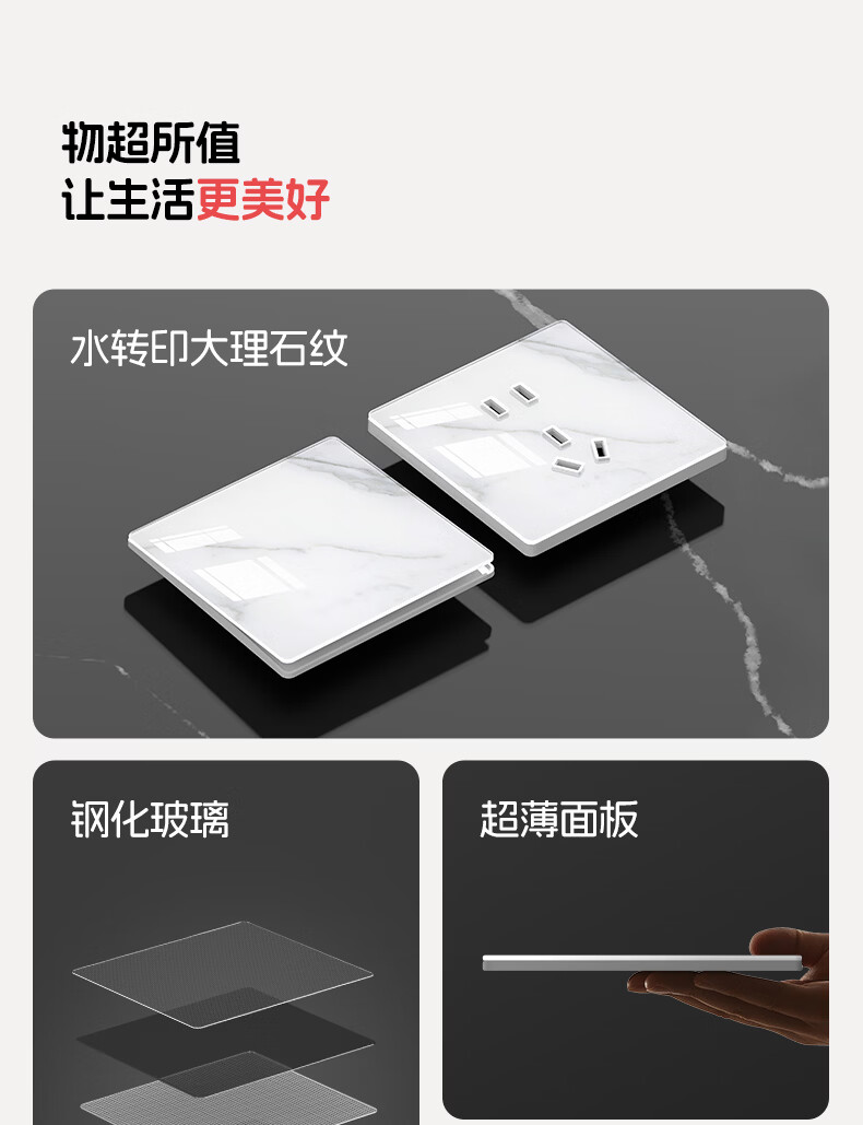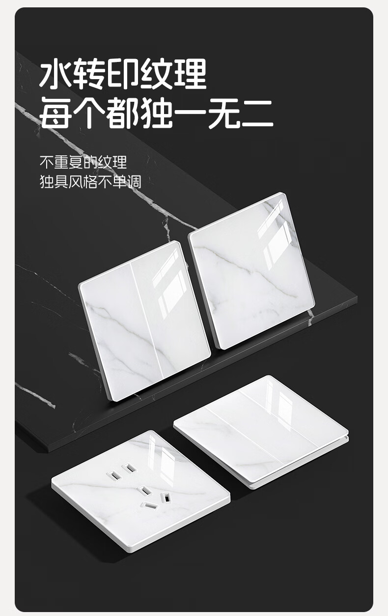 国际电工86型暗装超薄5.6mm钢化玻璃开关水转印纹理面板亲肤灰色五孔插座 16A三孔-肤感灰