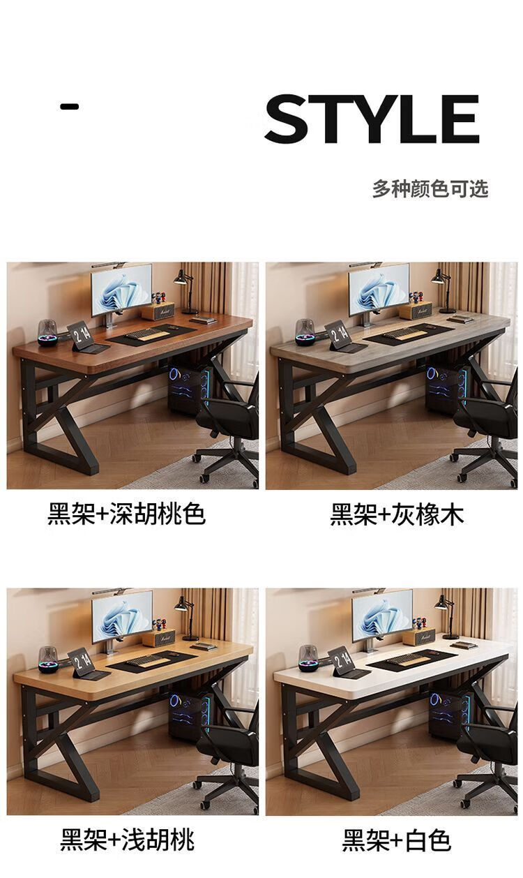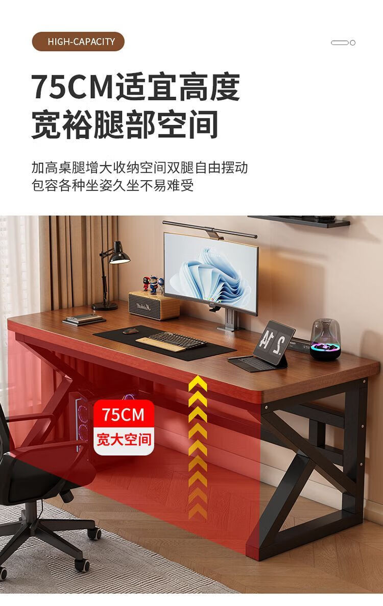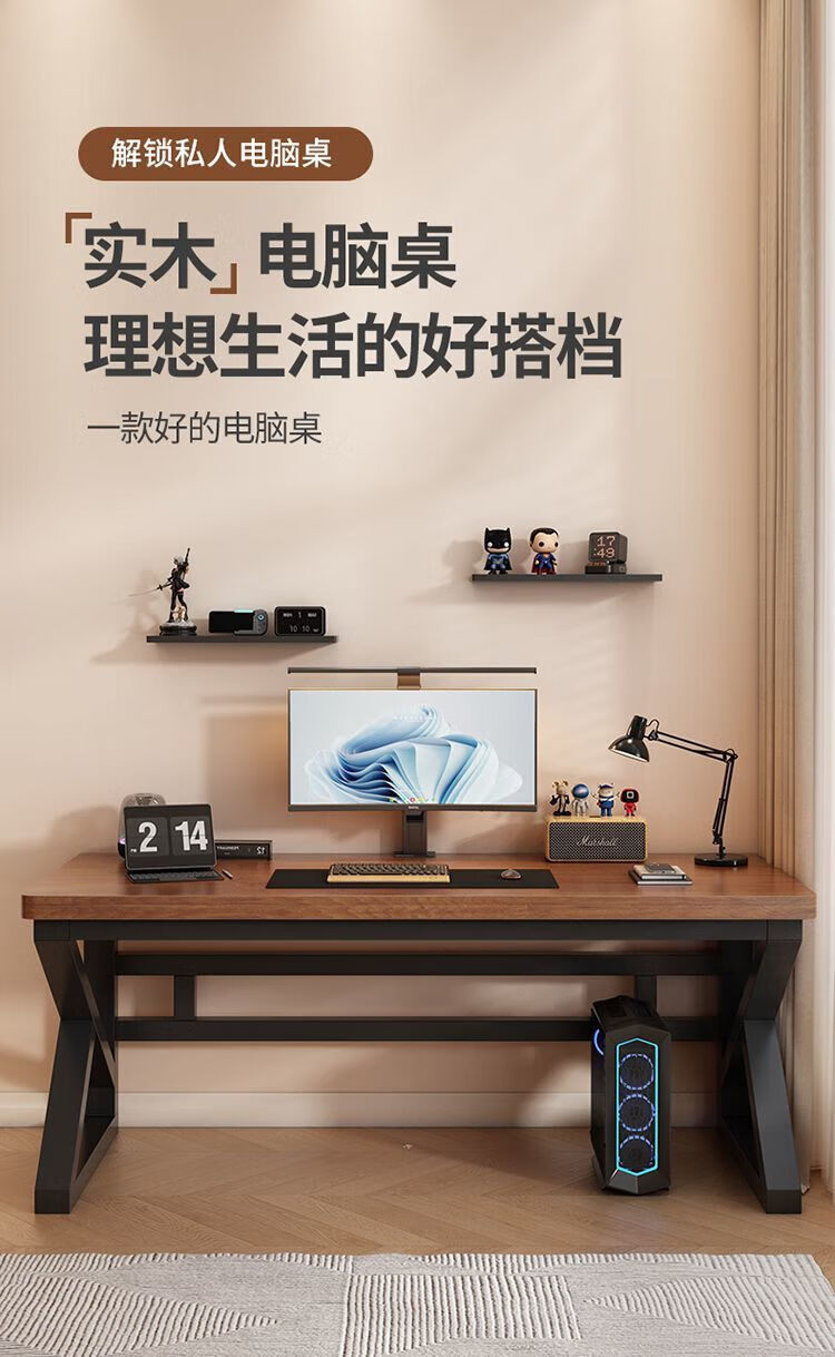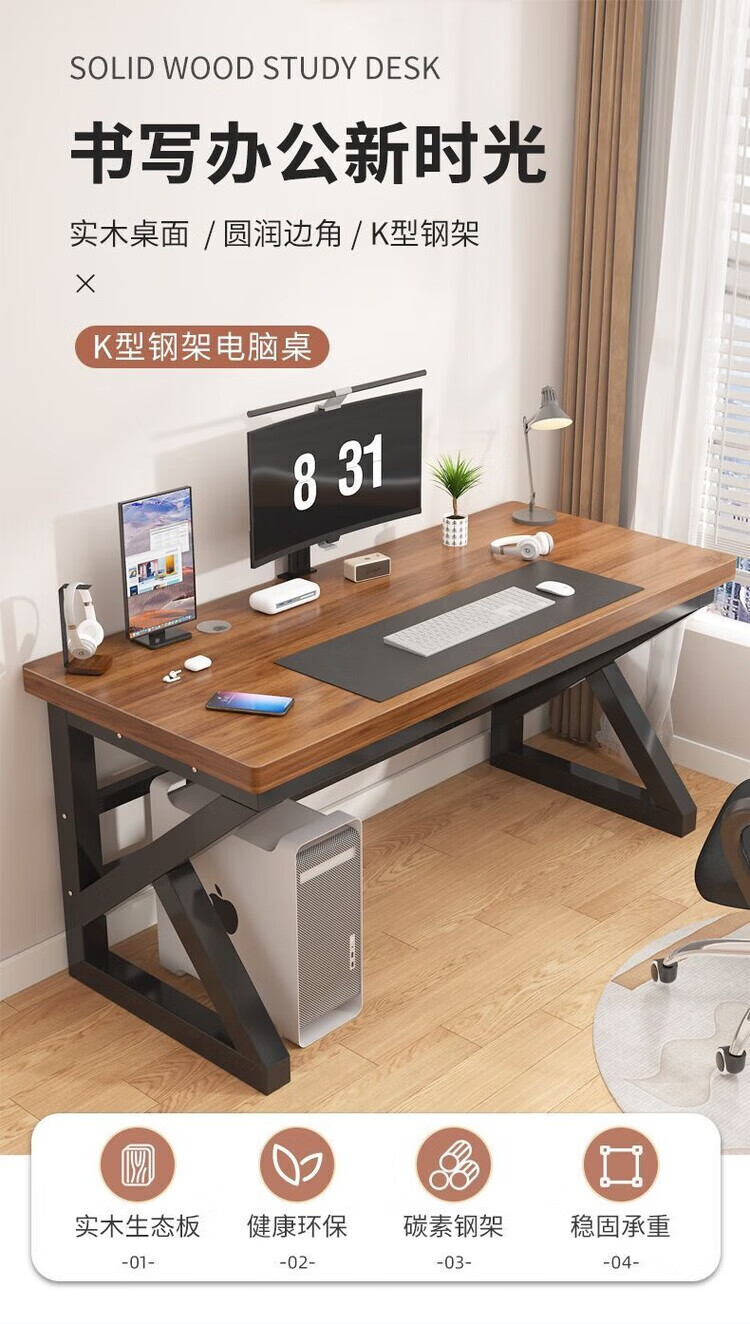 倘然之家电脑桌台式卧室家用学生学习书桌简易成人办公桌长方形桌子工作台 黑胡桃桌面实木+K型黑色架子 80*60*75cm-2.5mm厚