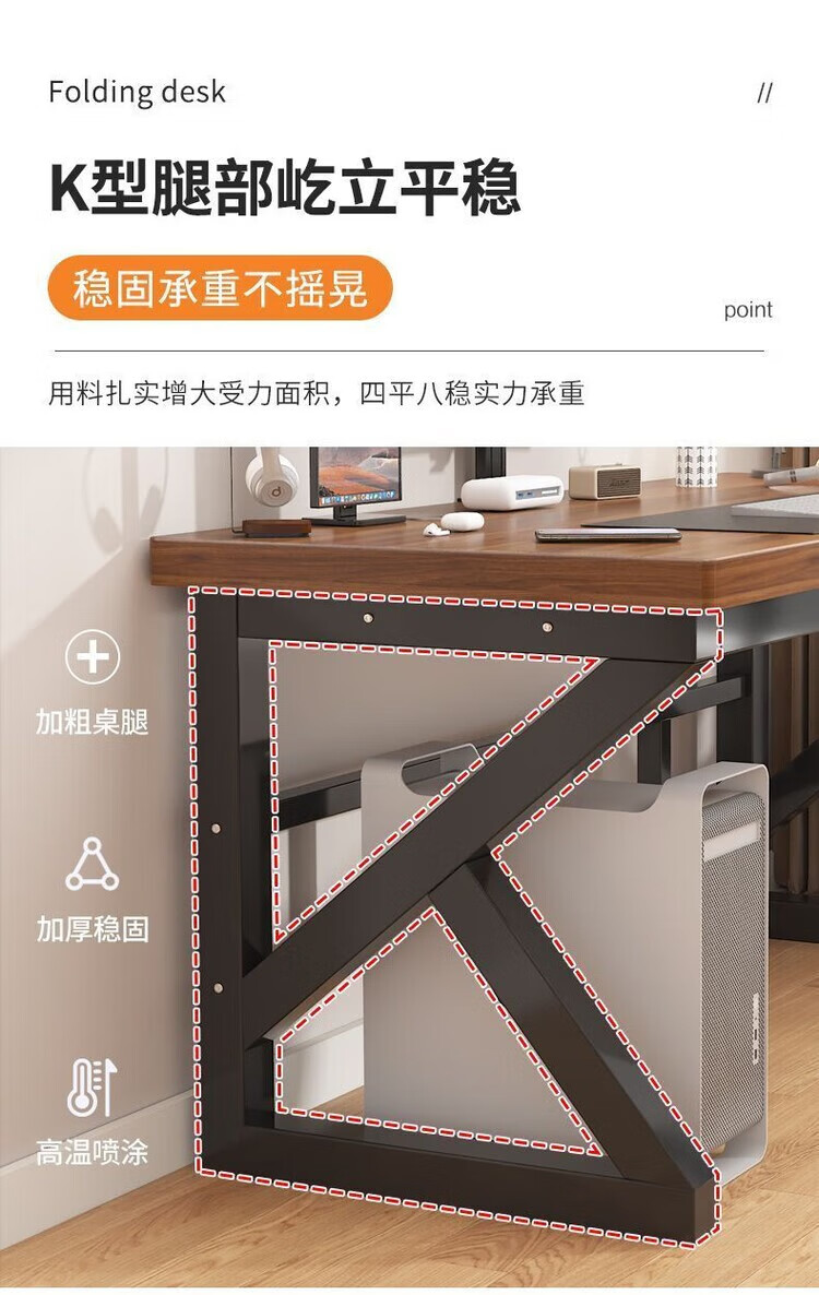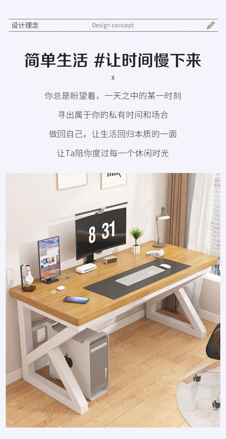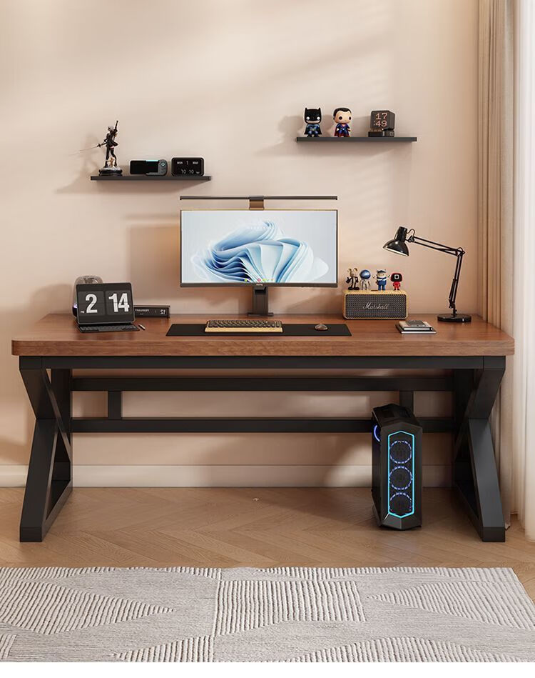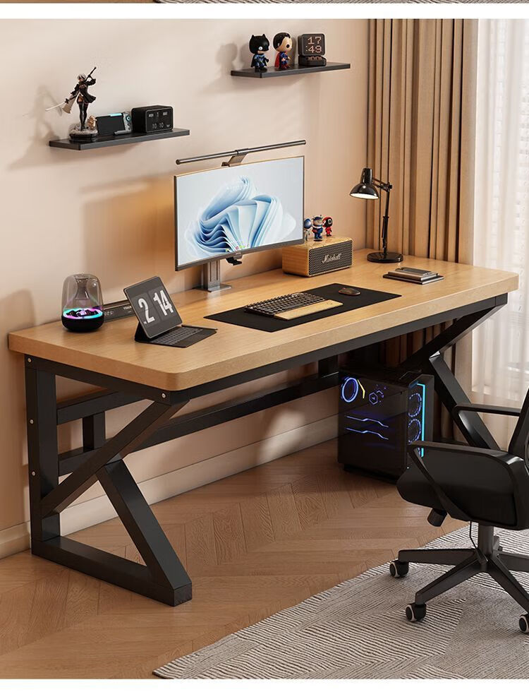 倘然之家电脑桌台式卧室家用学生学习书桌简易成人办公桌长方形桌子工作台 黑胡桃桌面实木+K型黑色架子 80*60*75cm-2.5mm厚