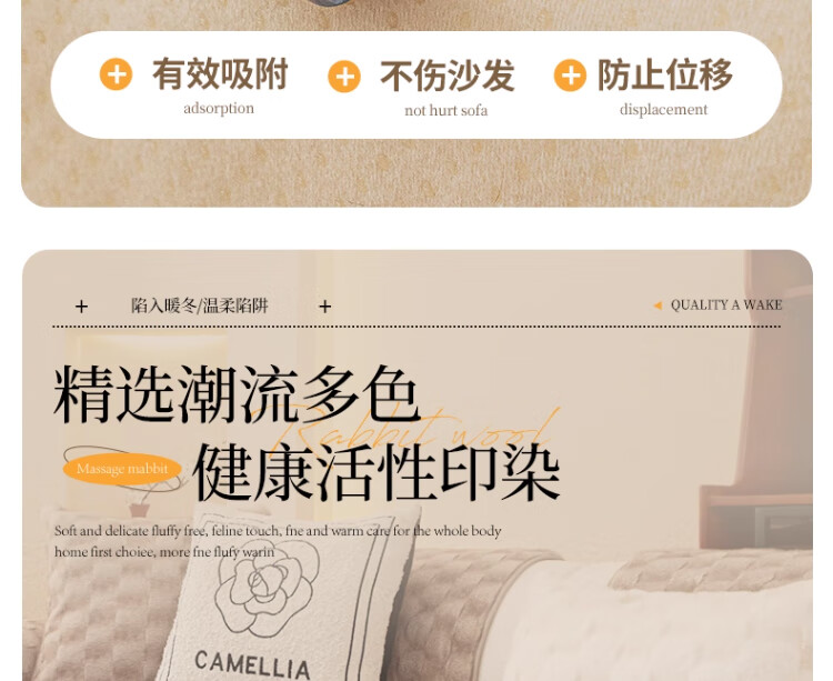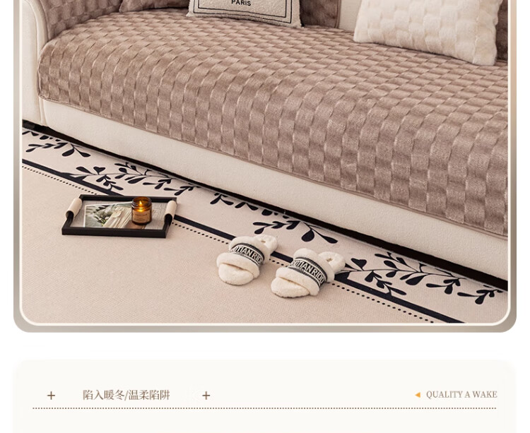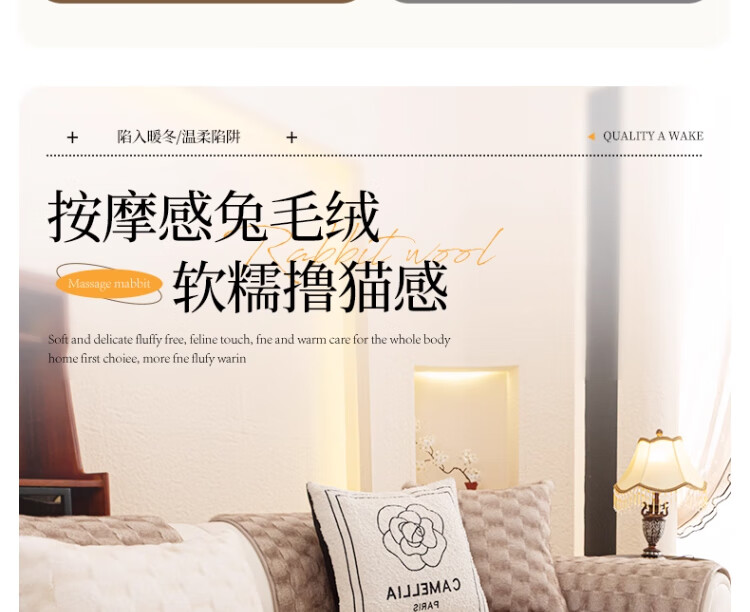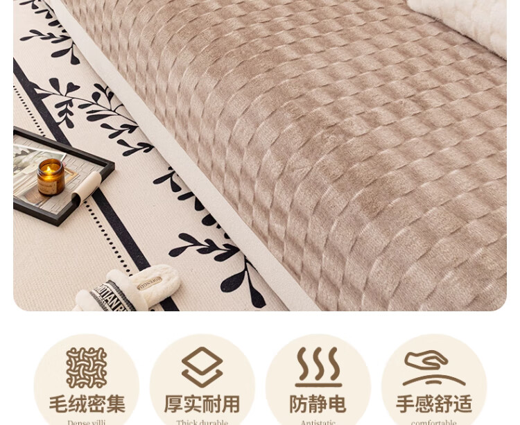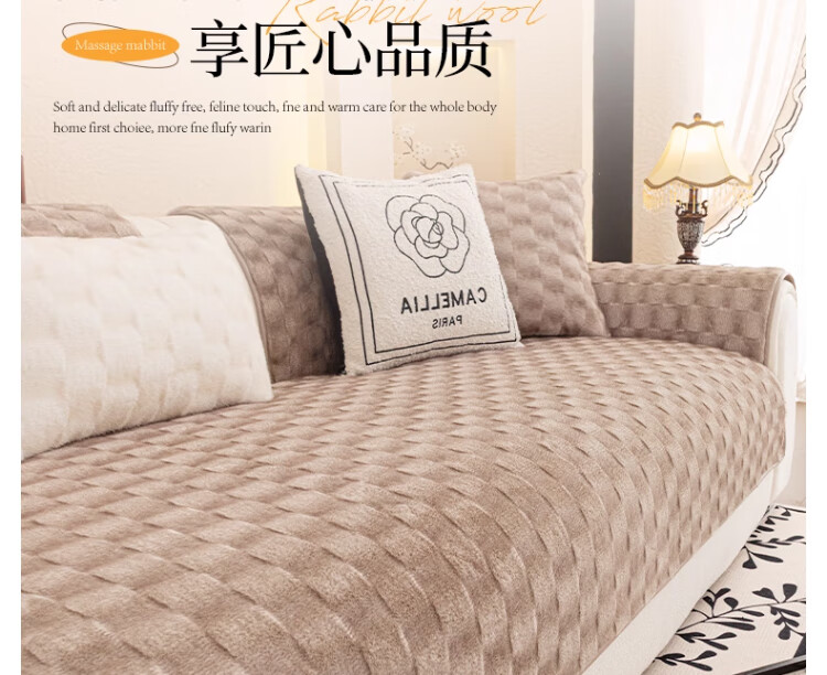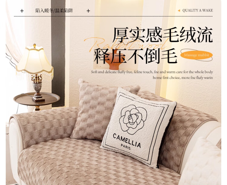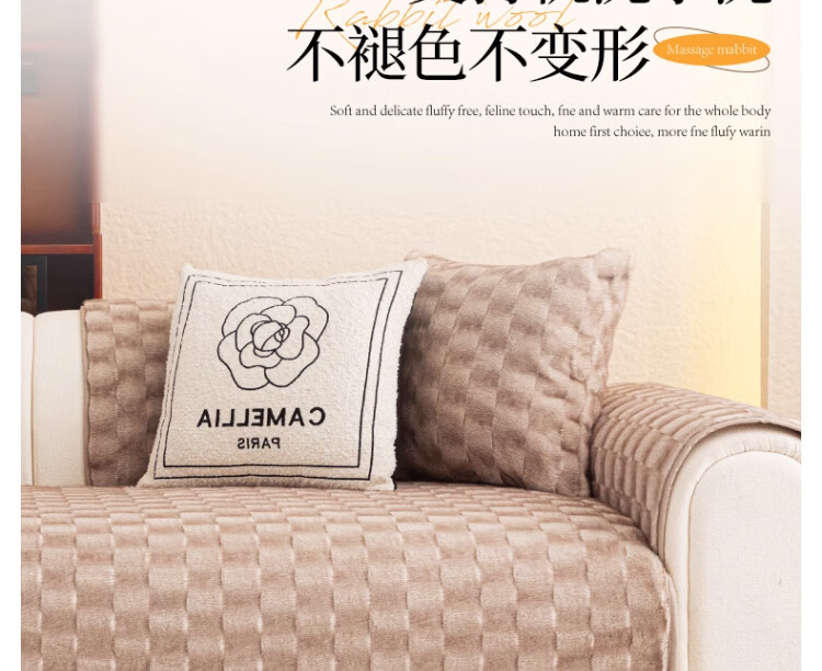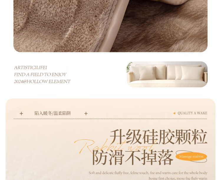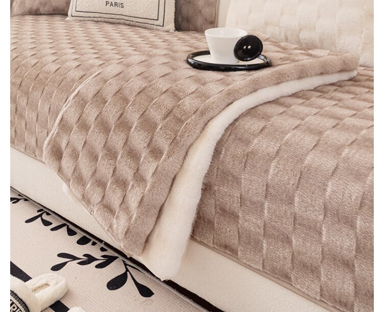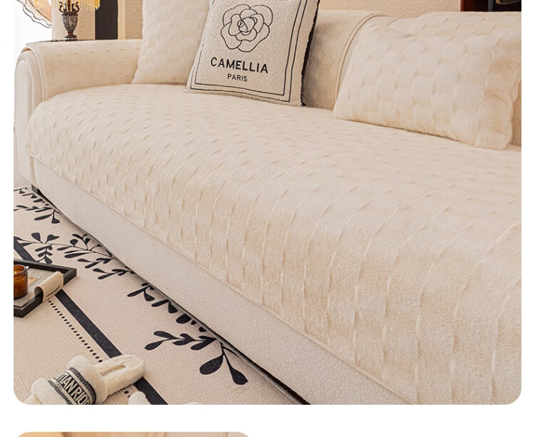 无印良品兔毛绒沙发垫冬季2025新款加厚毛绒防滑奶油风不掉毛皮沙发坐垫子 瑞比特-白色 【冬季毛绒 防静电】 90*240cm (三人位/小四人位)