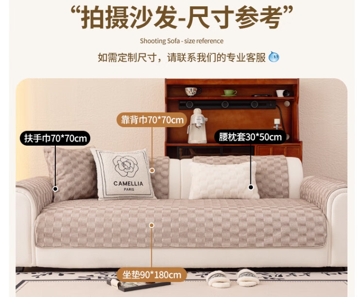 无印良品加厚水貂绒沙发垫冬季2025新款座垫防滑抗静电轻奢高级感沙发坐垫 双色水貂绒-米白【奢华皮草级水貂绒 加厚保暖不掉毛】 70*240cm (大三人位)