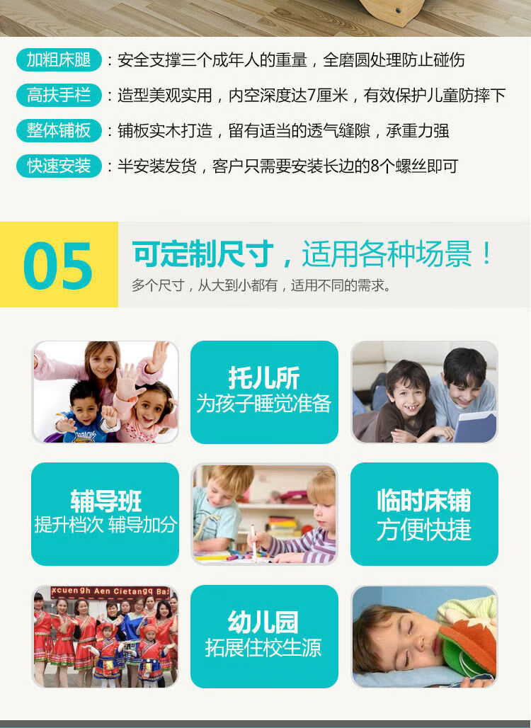 倘然之家幼儿园床专用午睡床小学生托管班床儿童午休小床单人床叠叠床松木 (加厚款)叠叠床132*55*18