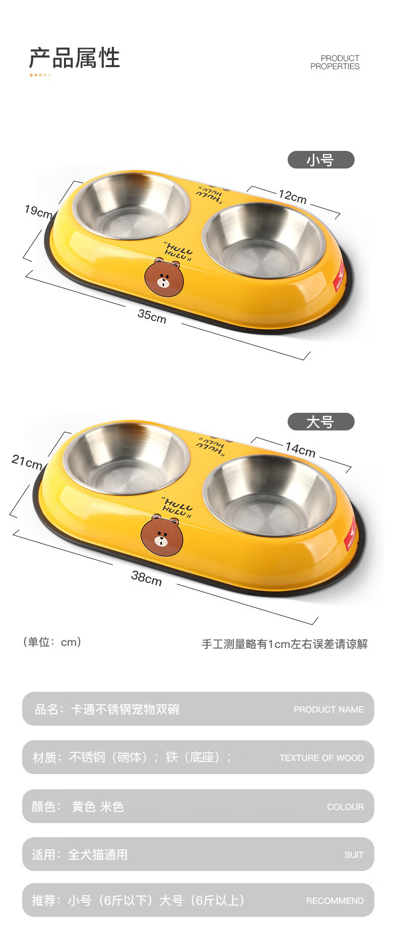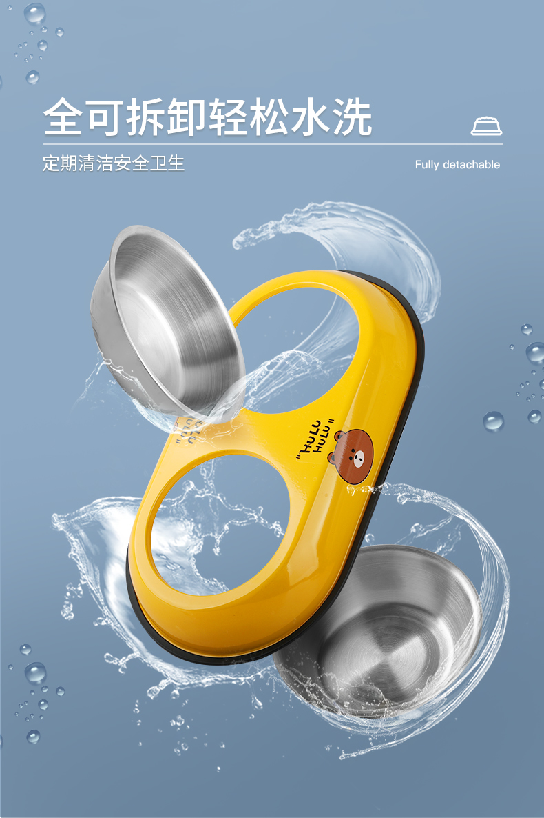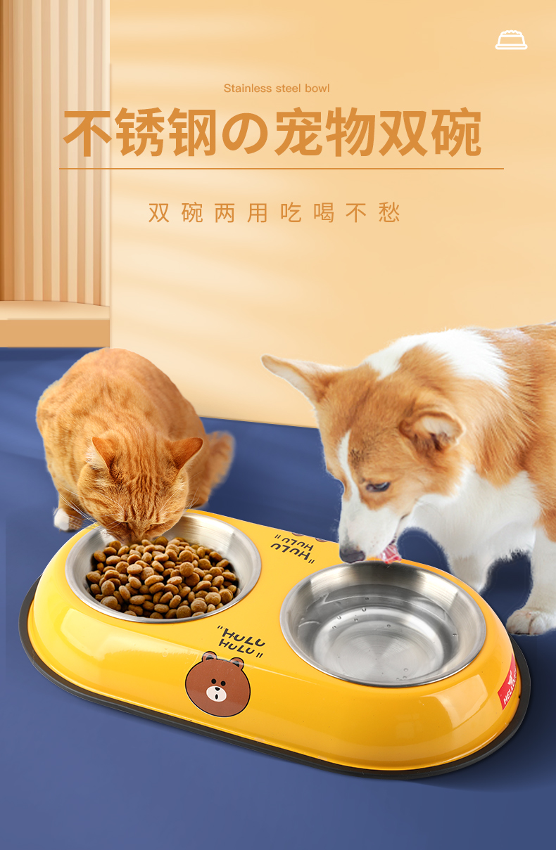 HELLOJOY狗碗狗盆宠物双碗不锈钢猫碗食盆防打翻狗食盆 黄色大号