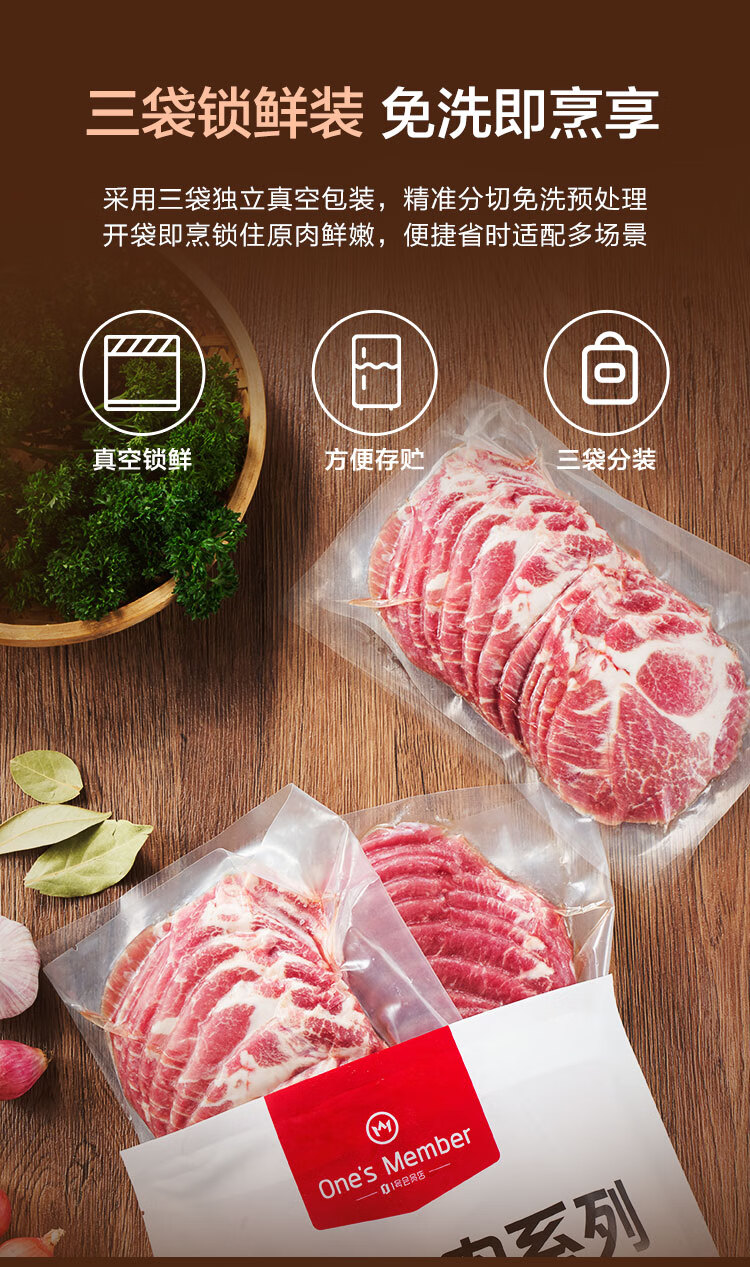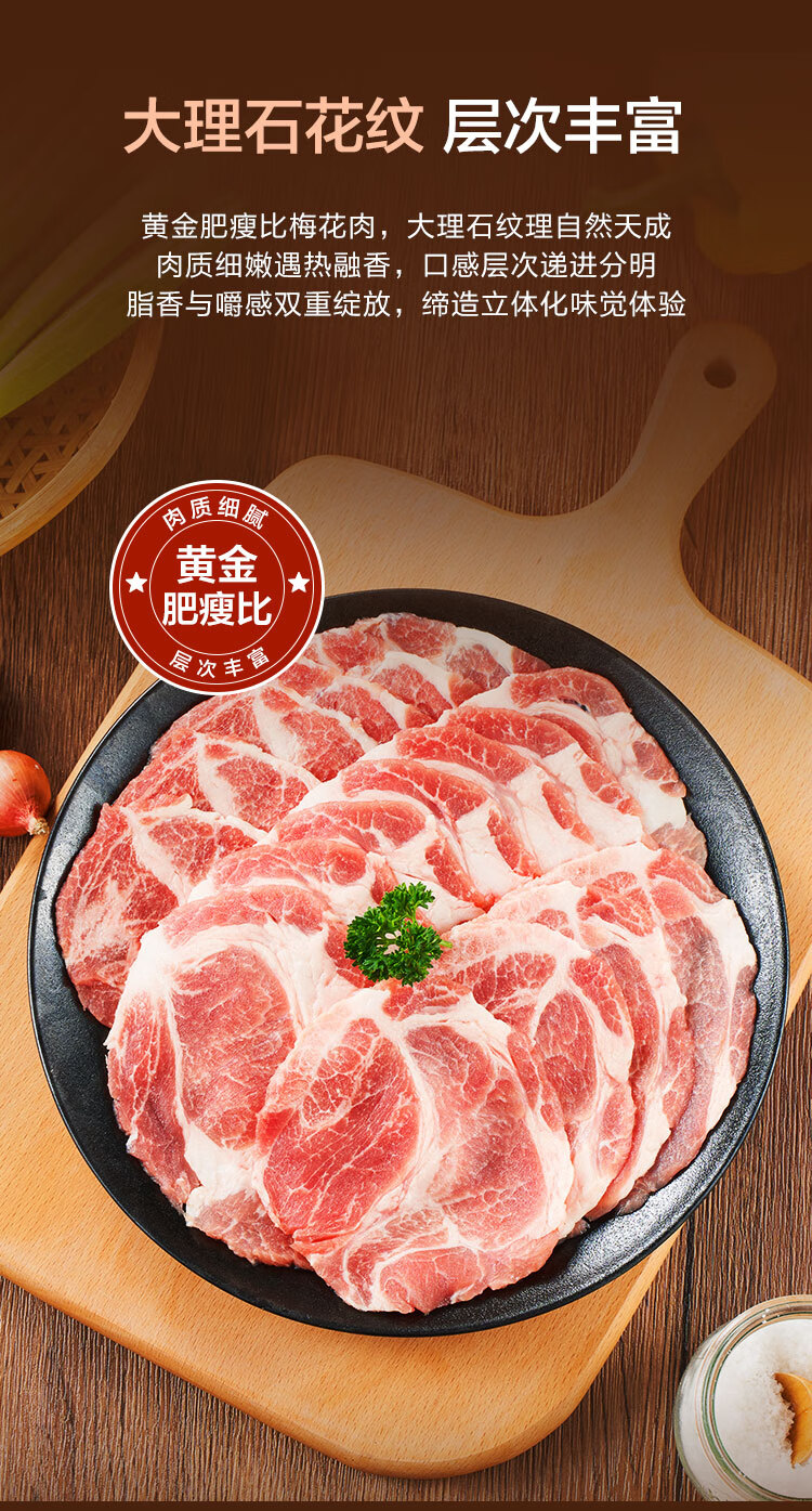 1号会员店 精选猪梅花肉片 净重1.2kg 烧烤食材梅肉猪颈肉猪肉