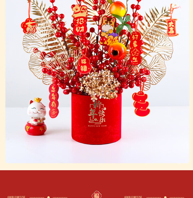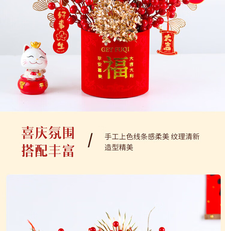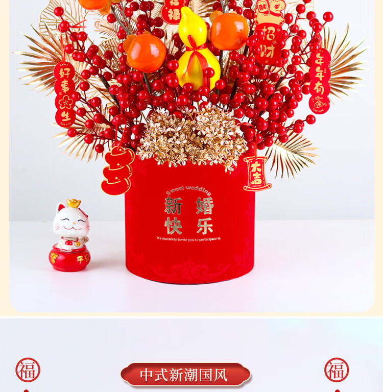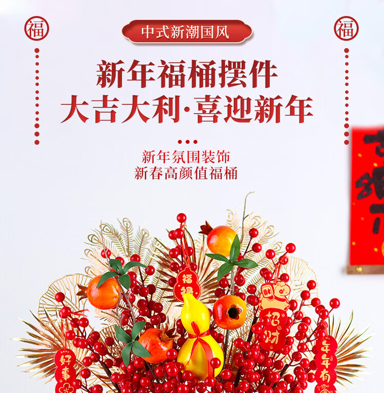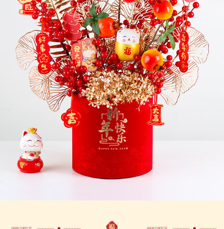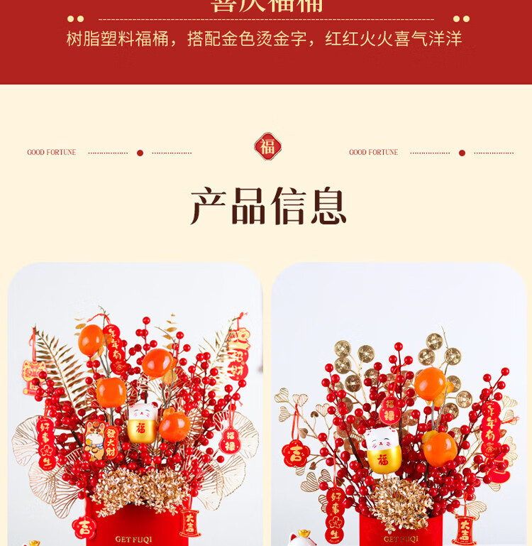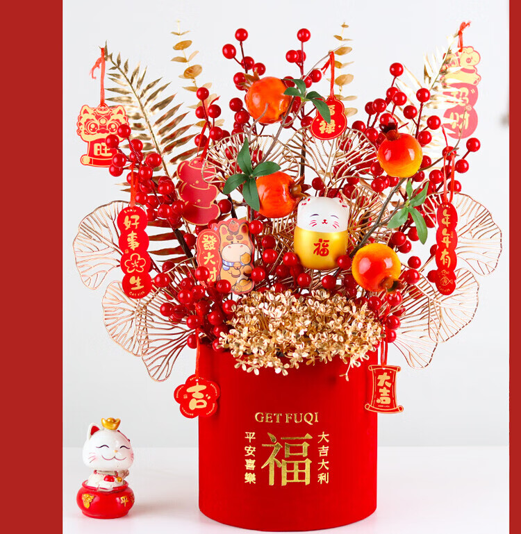 OYKTN福桶装饰年宵花发财红果挂件过年布置喜庆抱抱桶摆件新乔迁 小号【福气满满】福桶-花开富贵+送6张随机福卡