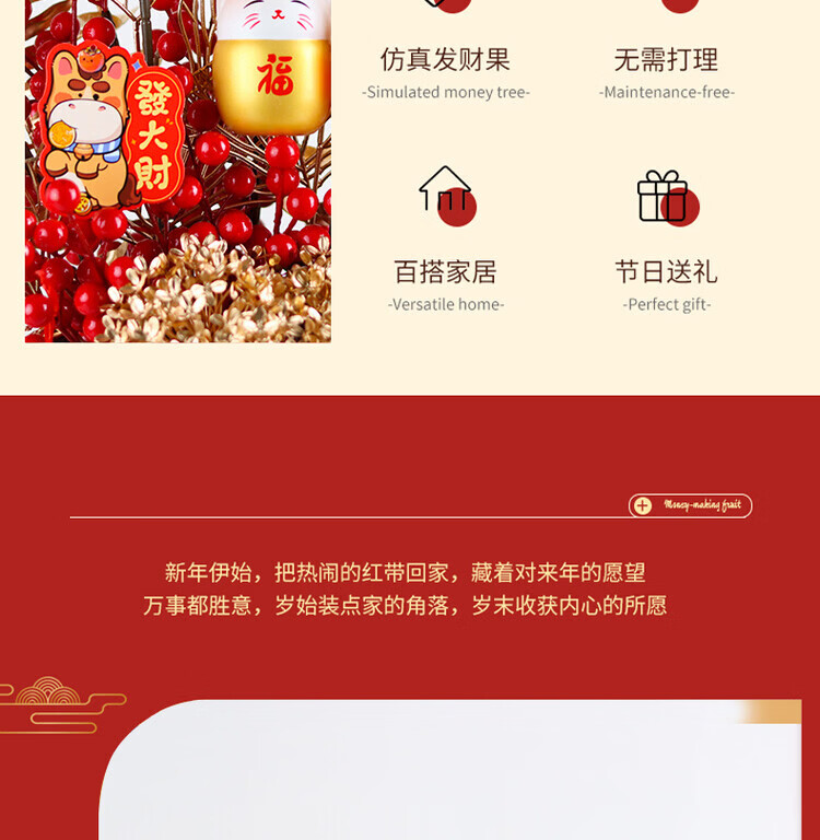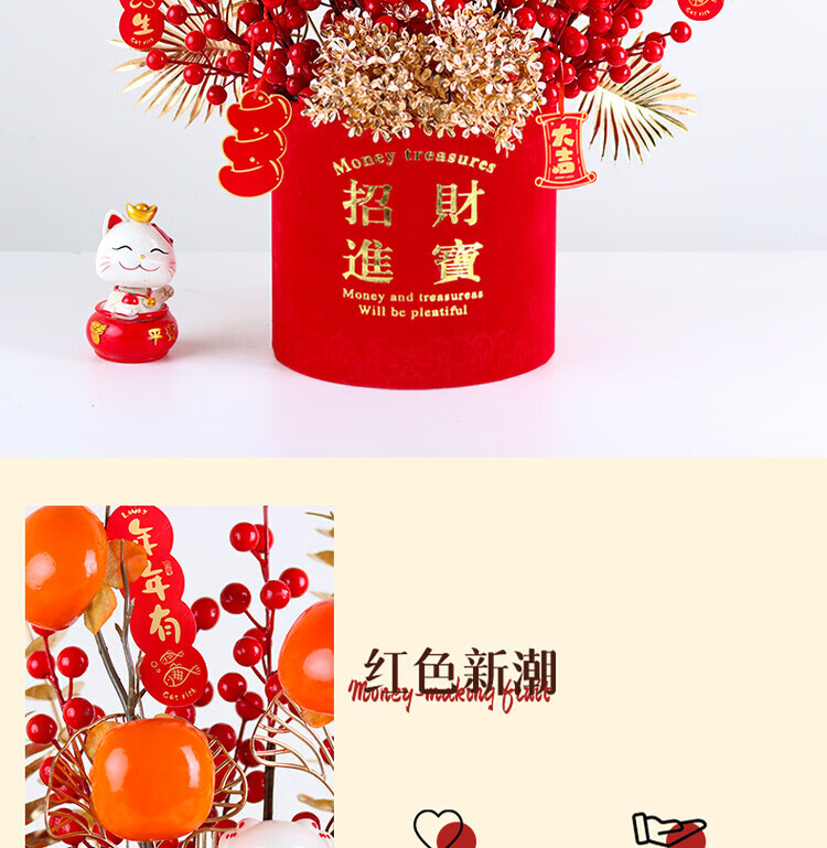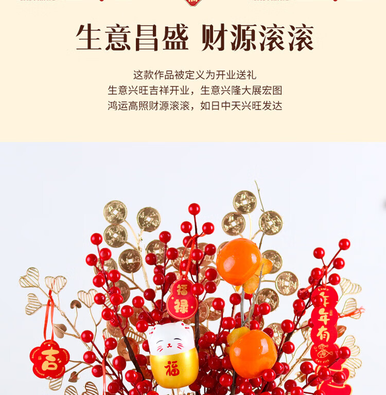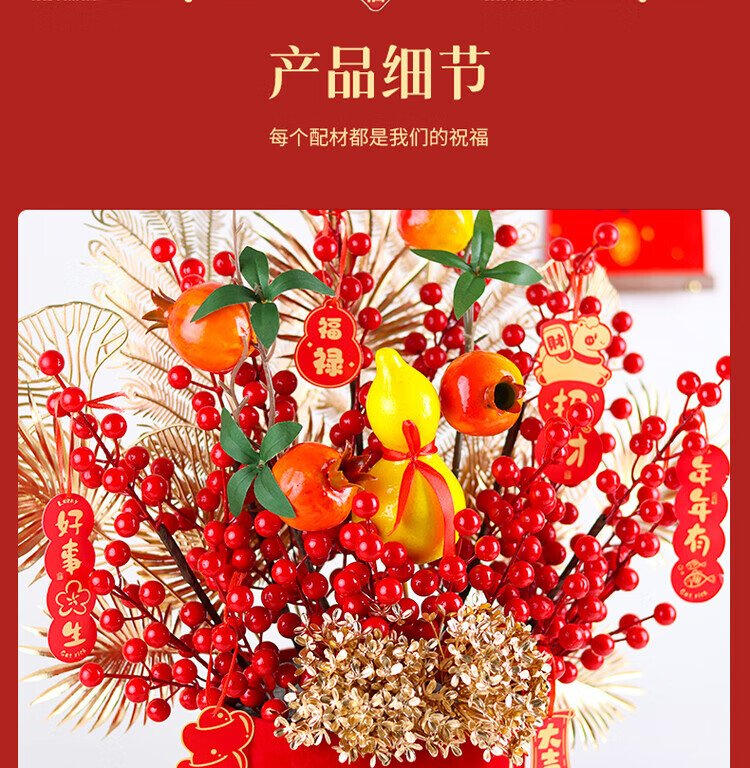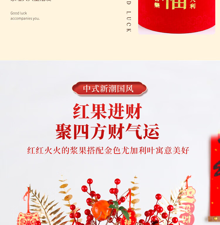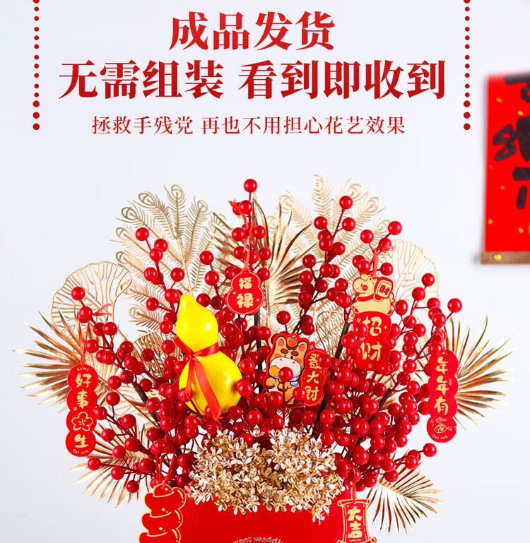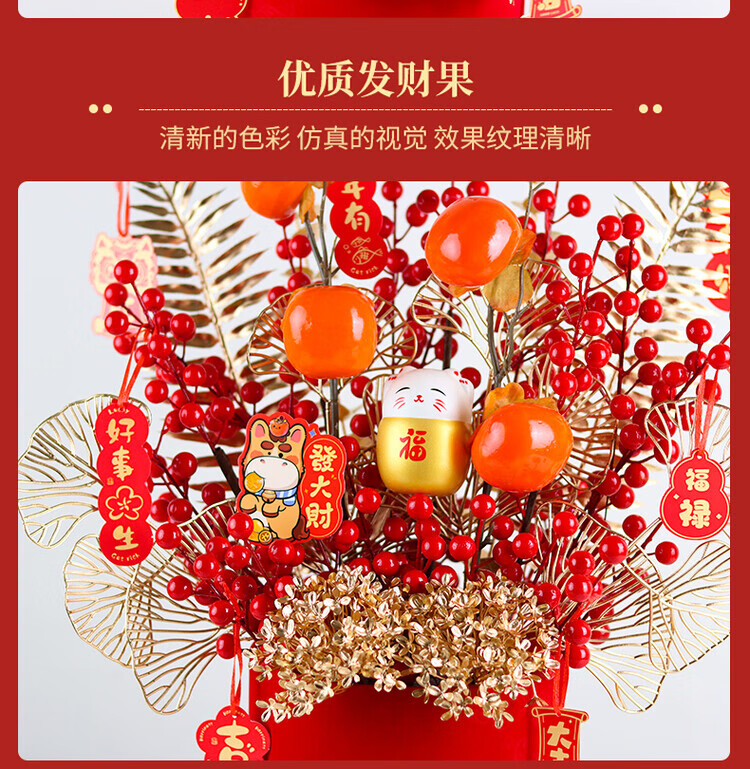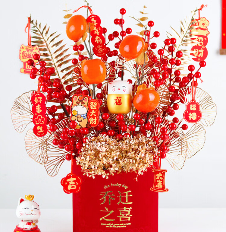 OYKTN福桶装饰年宵花发财红果挂件过年布置喜庆抱抱桶摆件新乔迁 小号【福气满满】福桶-花开富贵+送6张随机福卡