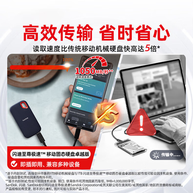 闪迪(SanDisk)4TB Type-c USB3.2 NVMe移动固态硬盘(PSSD)E61卓越版 1050MB/s三防保护 手机笔记本电脑外接SSD