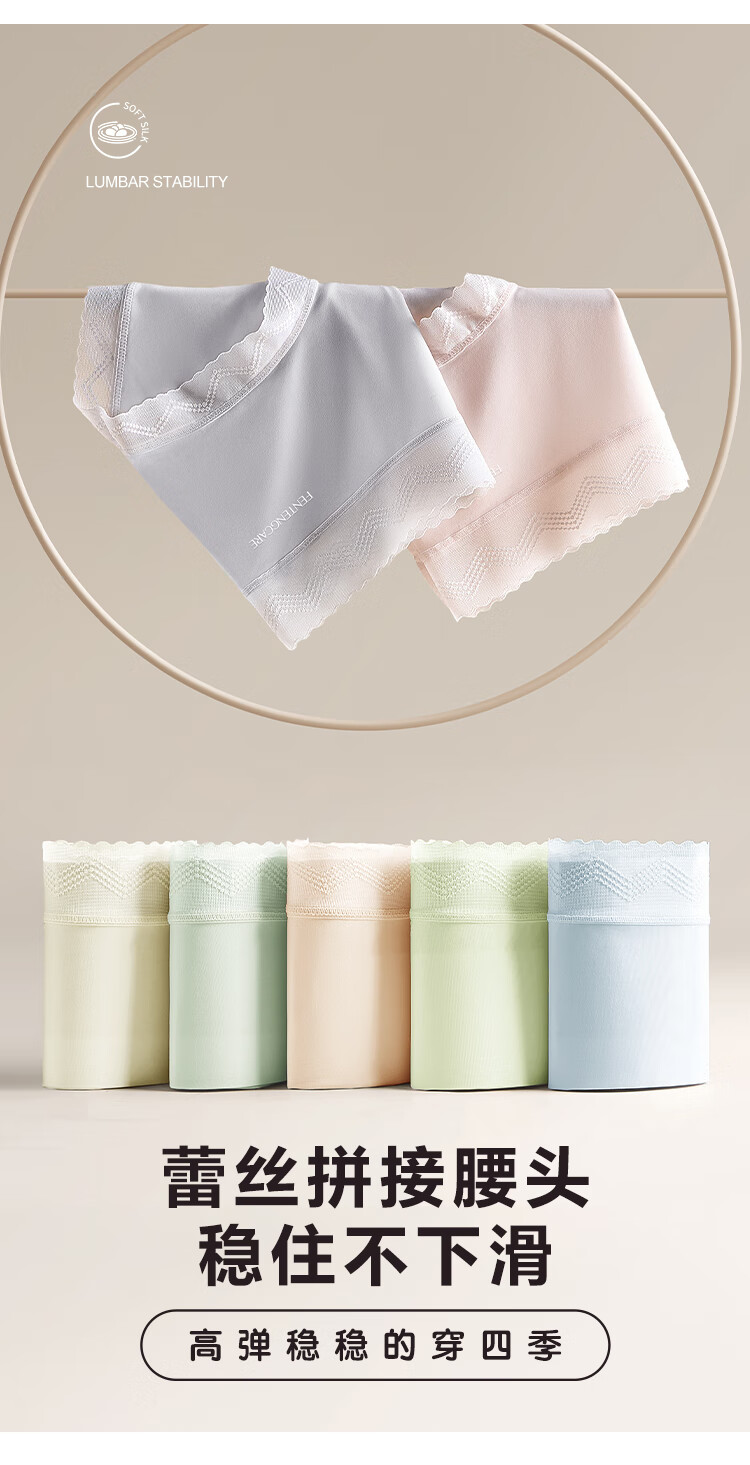 芬腾可安7条【含桑蚕丝聚乳酸抑菌里料】超弹无痕中高腰三角女士内裤女 组合一(浅肤,蓝色,草绿,浅粉,浅灰,绿色,嫩黄) 3XL ((码数偏小,建议拍大一码)