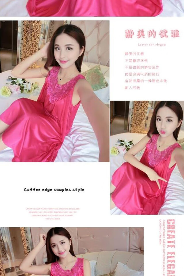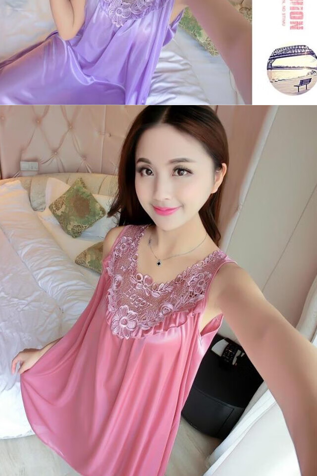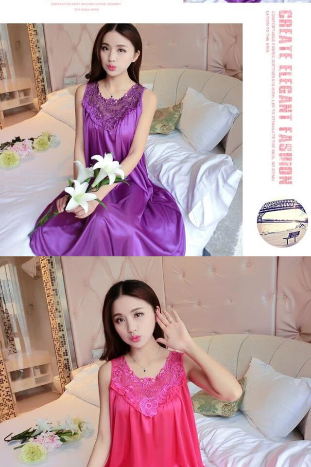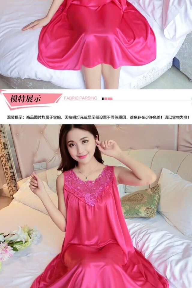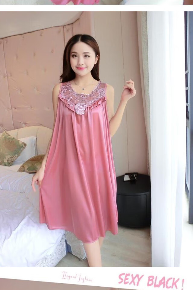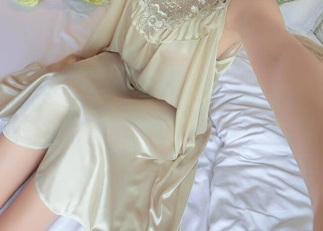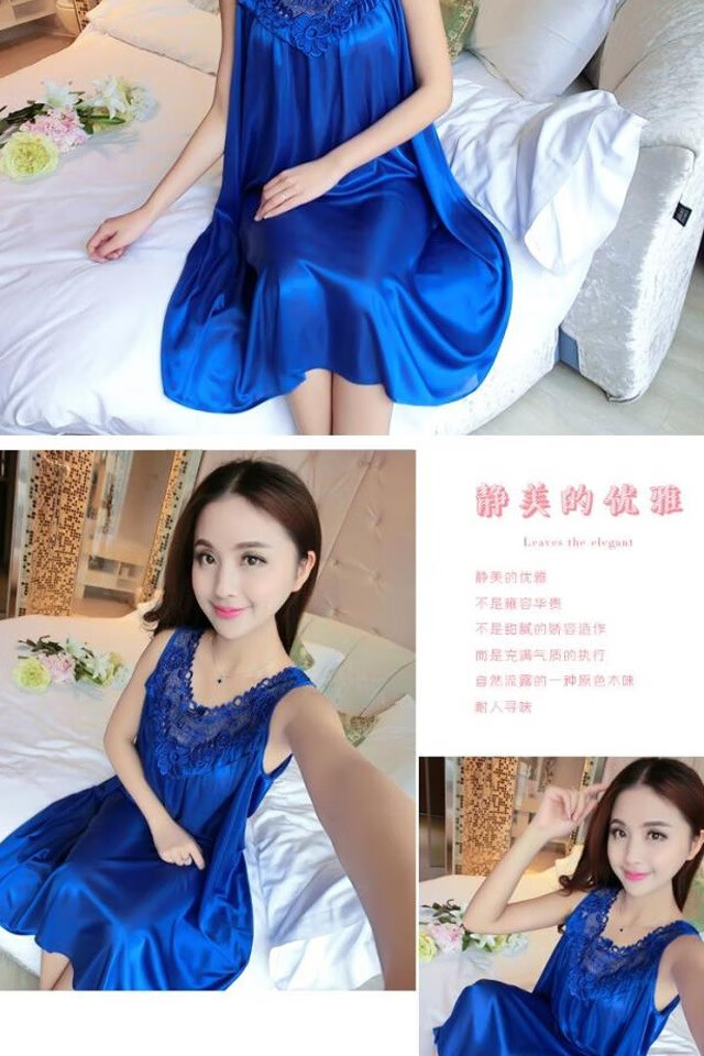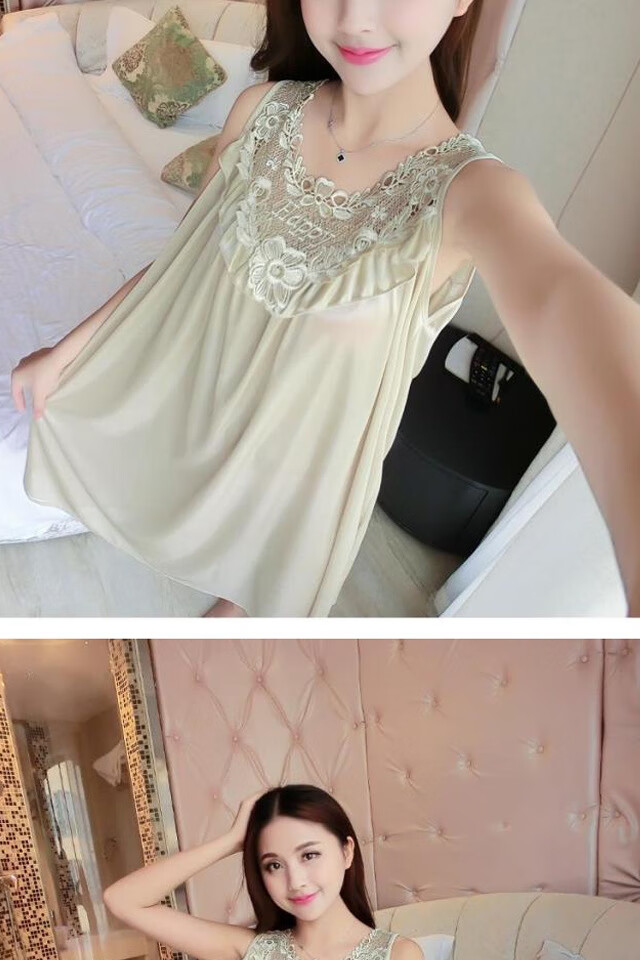 【直发】夏季仿睡裙女士性感情趣睡衣夏冰丝蕾丝大摆裙纯色家居服 花个裙子香槟色 均码