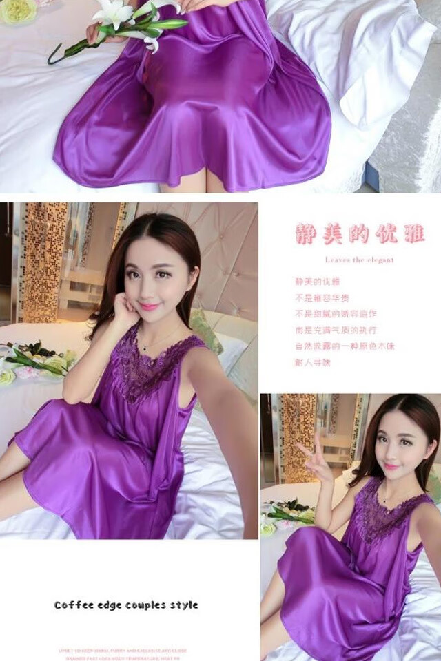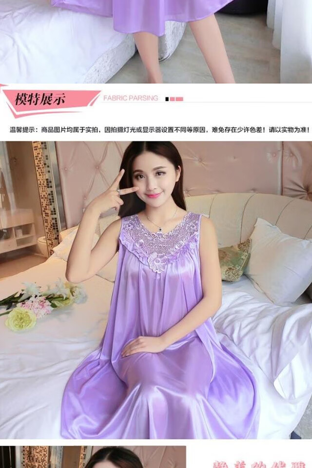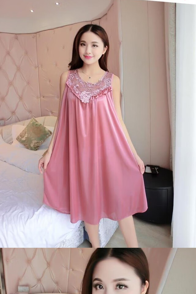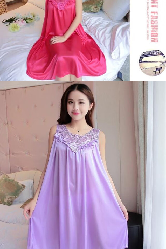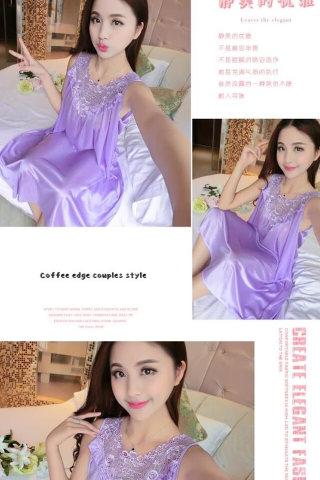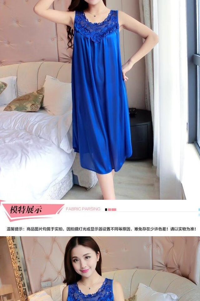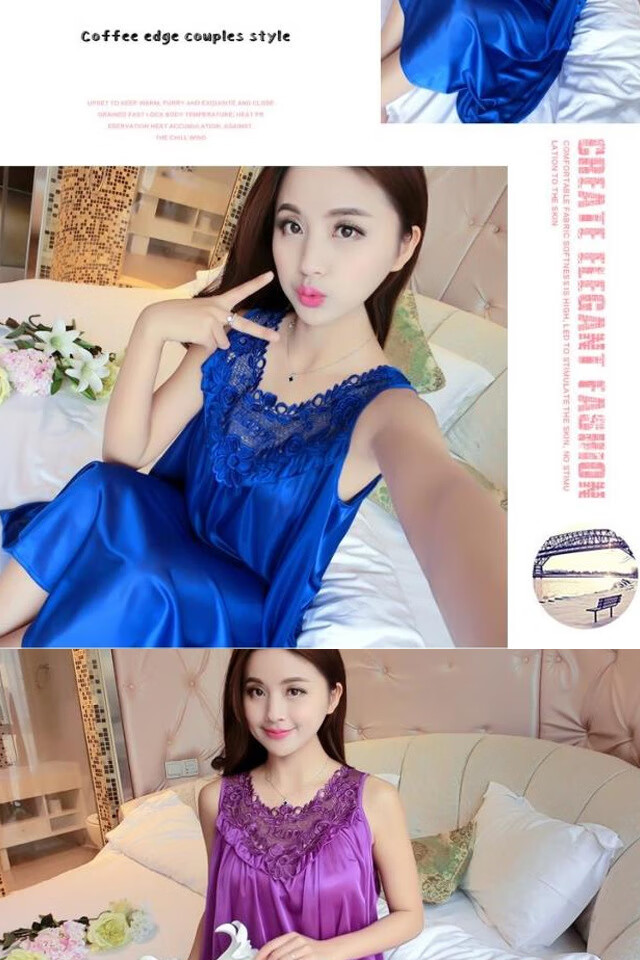 【直发】夏季仿睡裙女士性感情趣睡衣夏冰丝蕾丝大摆裙纯色家居服 花个裙子香槟色 均码