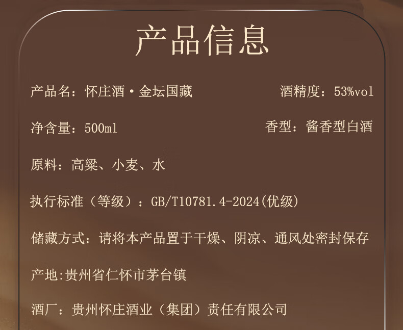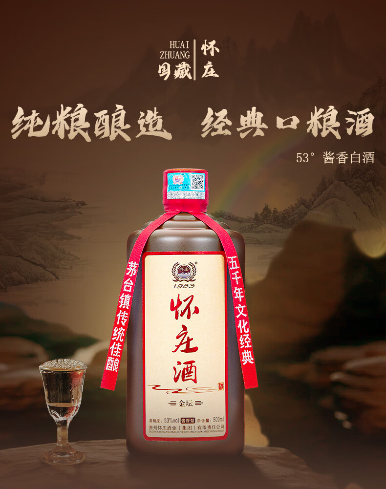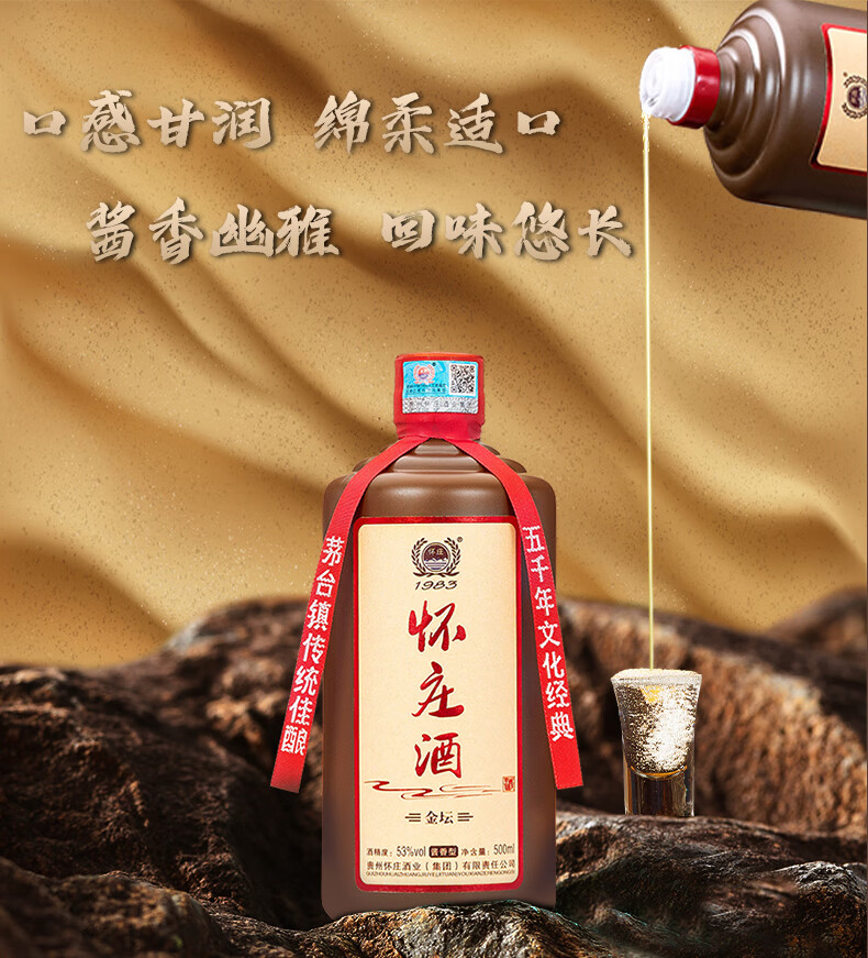 怀庄1983 金坛酒 贵州53度酱香型白酒整箱大曲坤沙纯粮食送礼收藏口粮酒 53度 500mL 6瓶 礼盒装