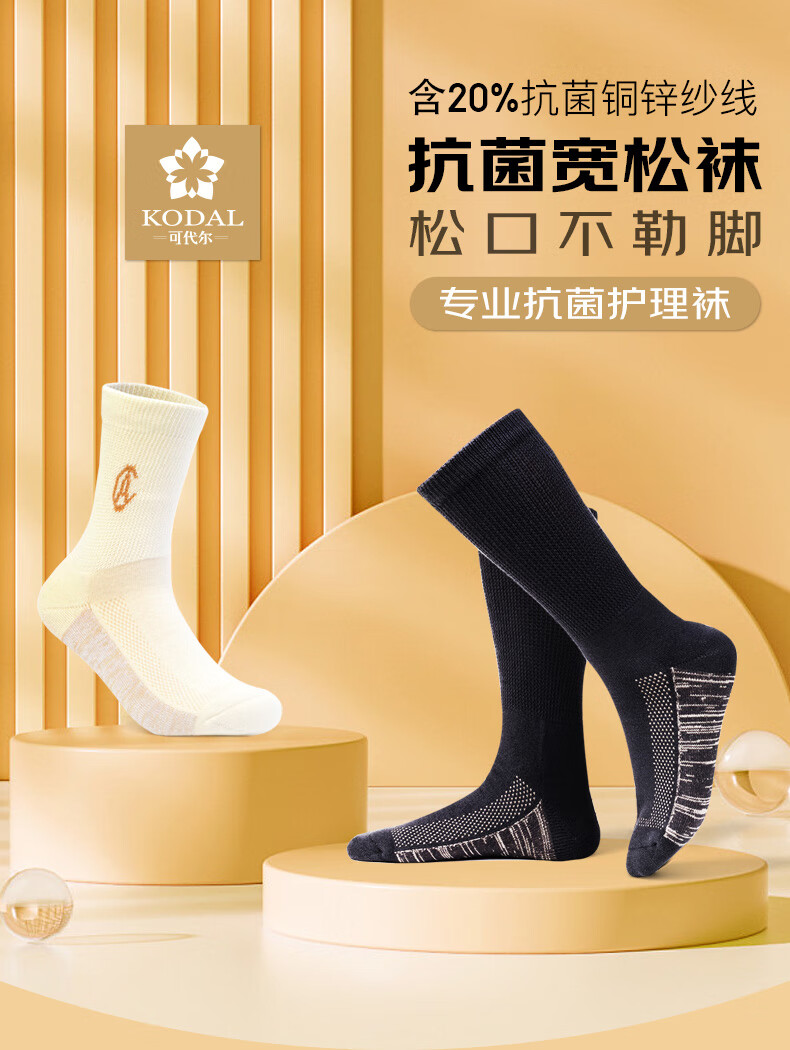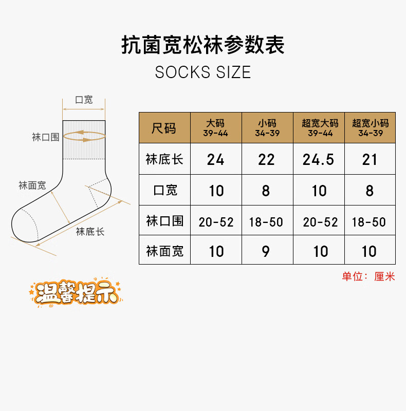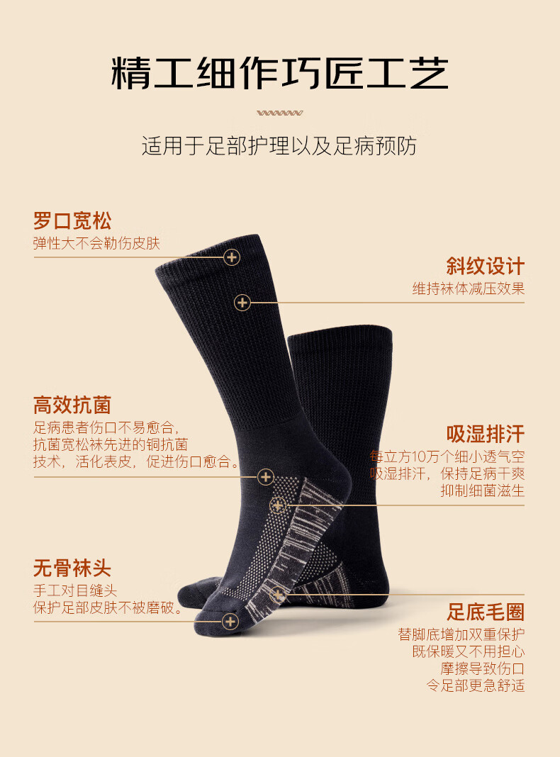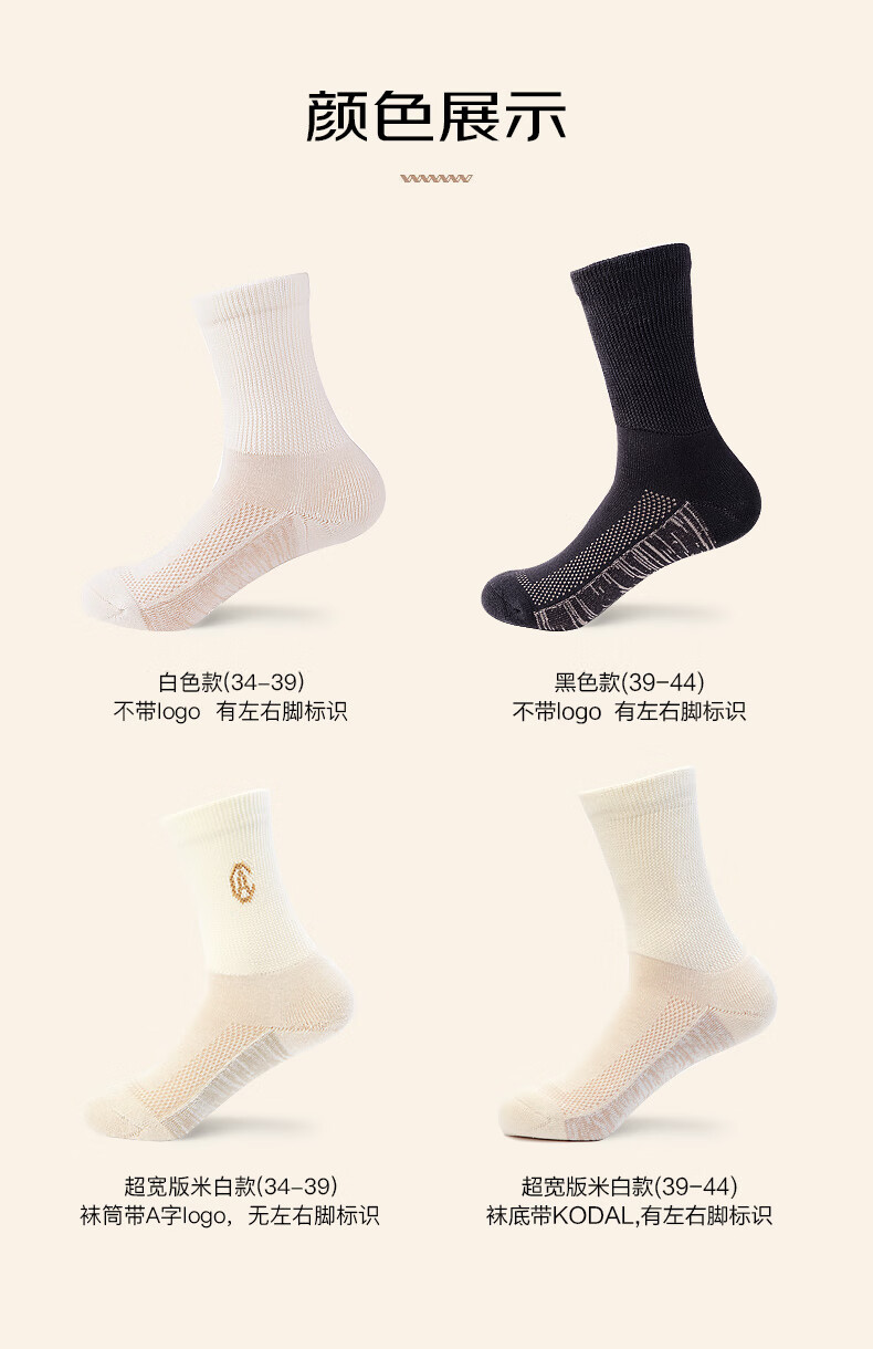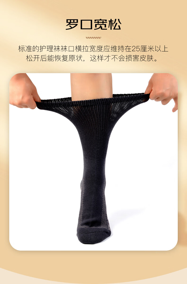 可代尔秋冬糖尿病足专用中老年宽松口袜加厚大码毛巾底脚伤肿术后中筒袜 超级宽松版米白39-44/ 1双