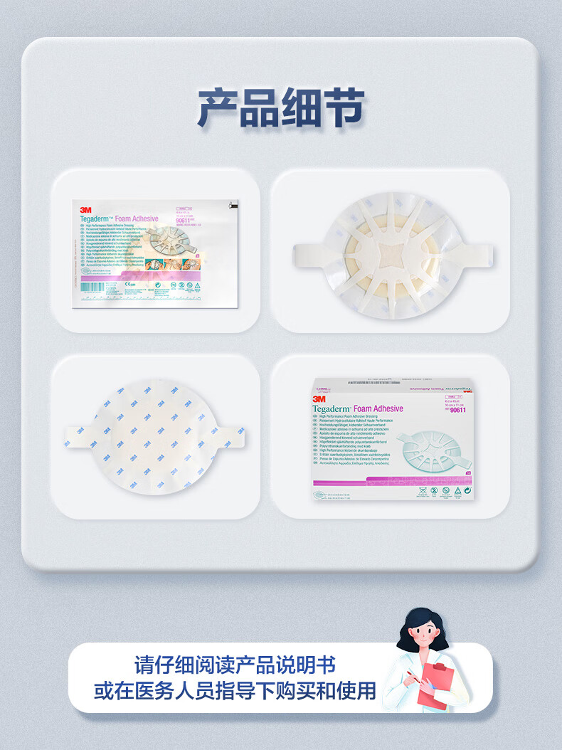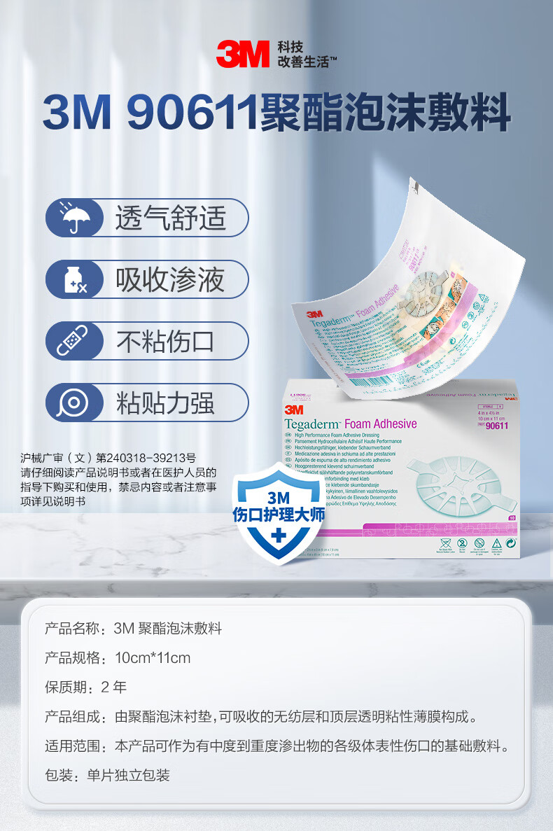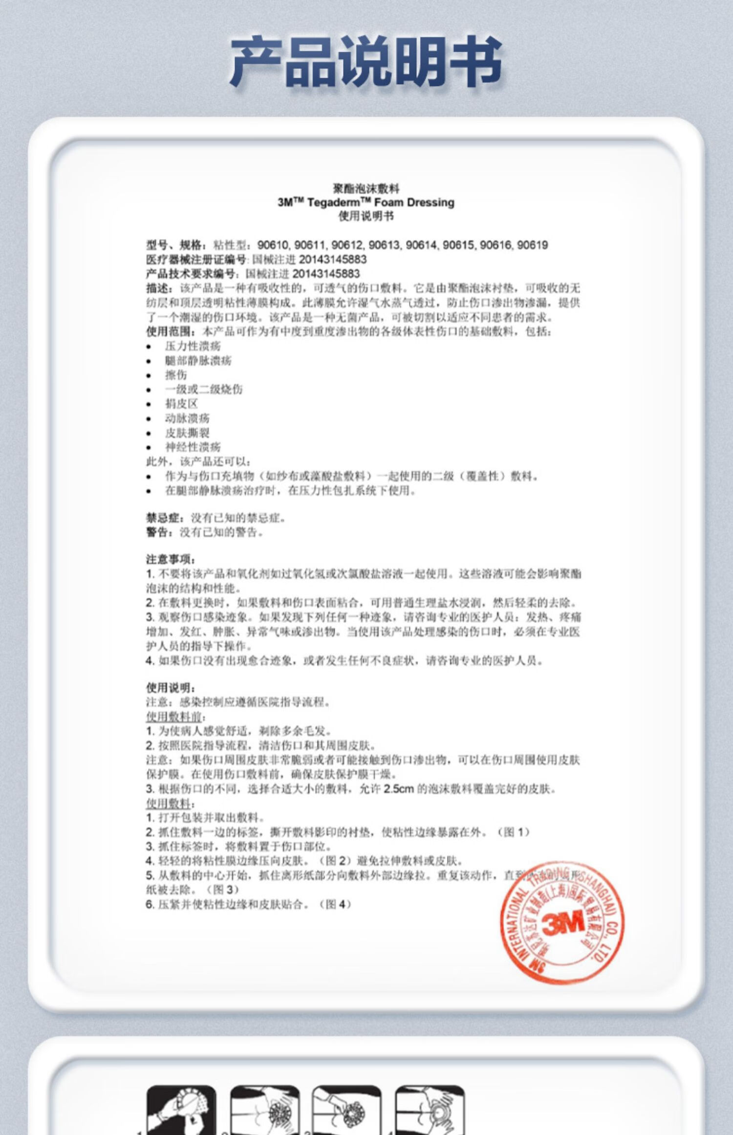 3M八爪鱼褥疮贴压疮贴 90611/90613 聚氨酯泡沫敷料伤口敷料溃疡贴 90611 10*11cm 1片装