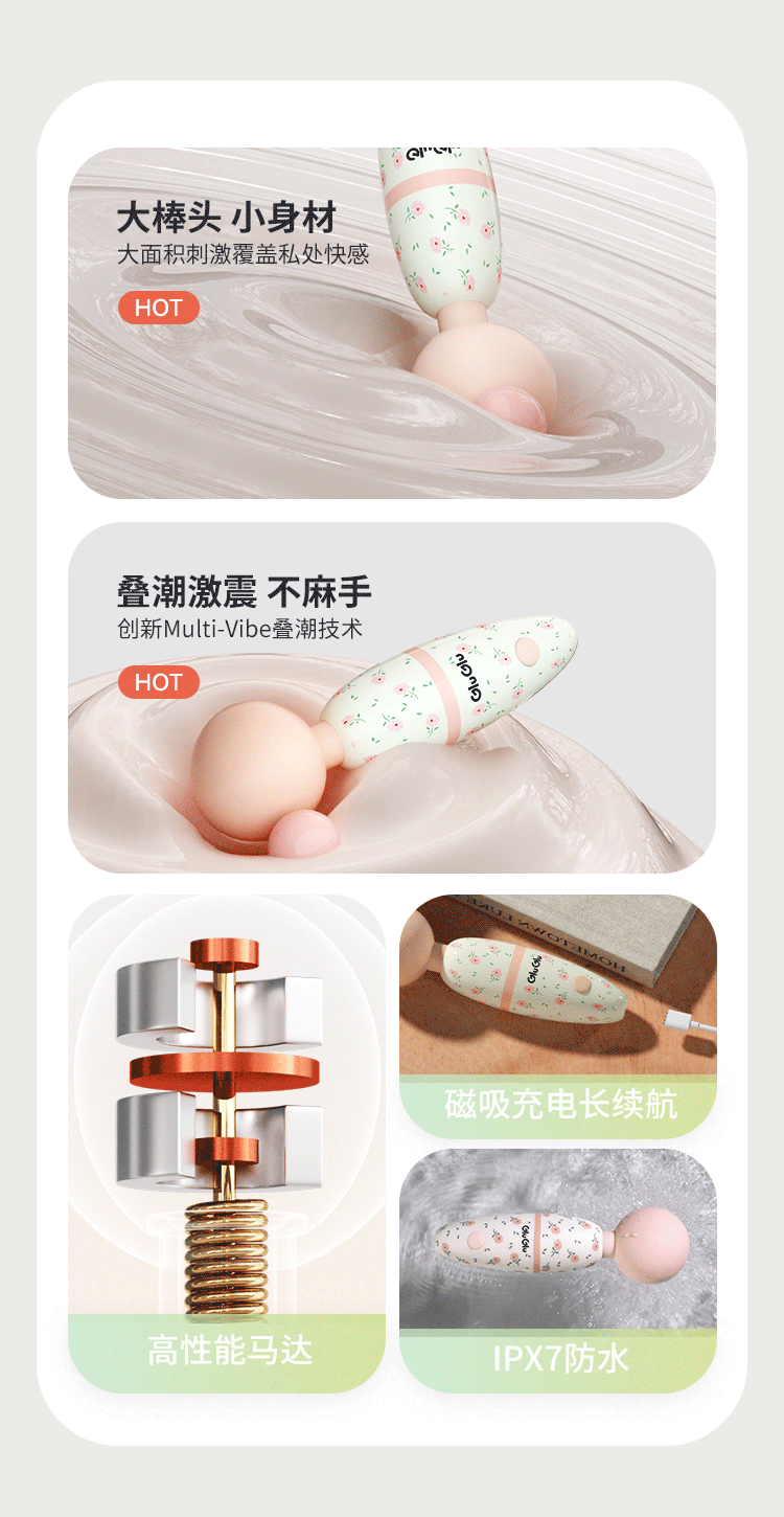 GLUGLU嗨嗨震动棒av棒女性专用成人玩具自慰器女用阴蒂高潮调情趣用品 嗨嗨棒碎花粉(无遥控版)送润滑液