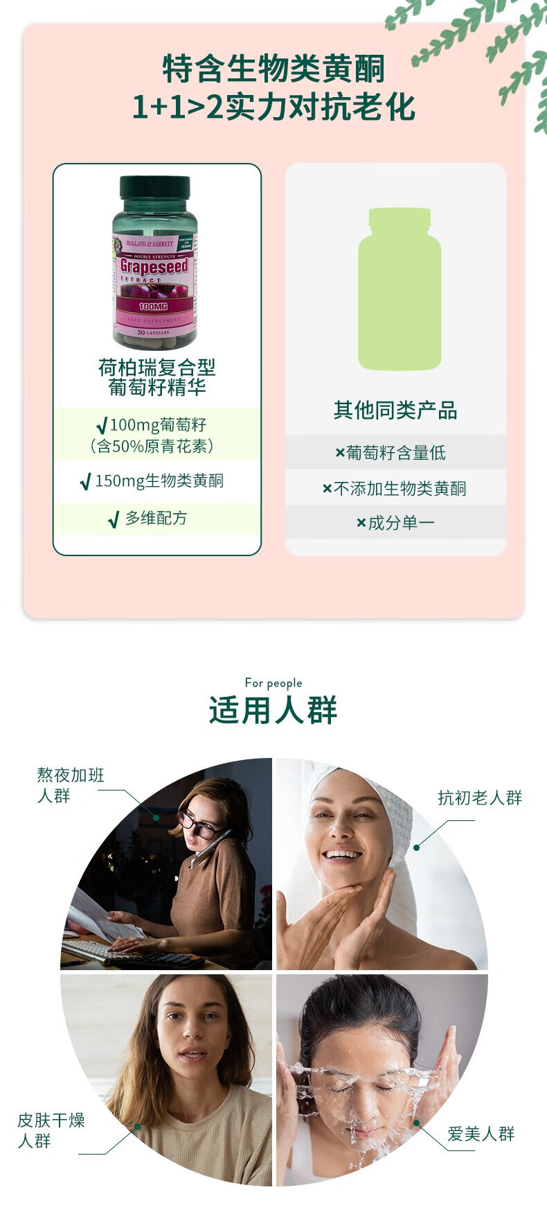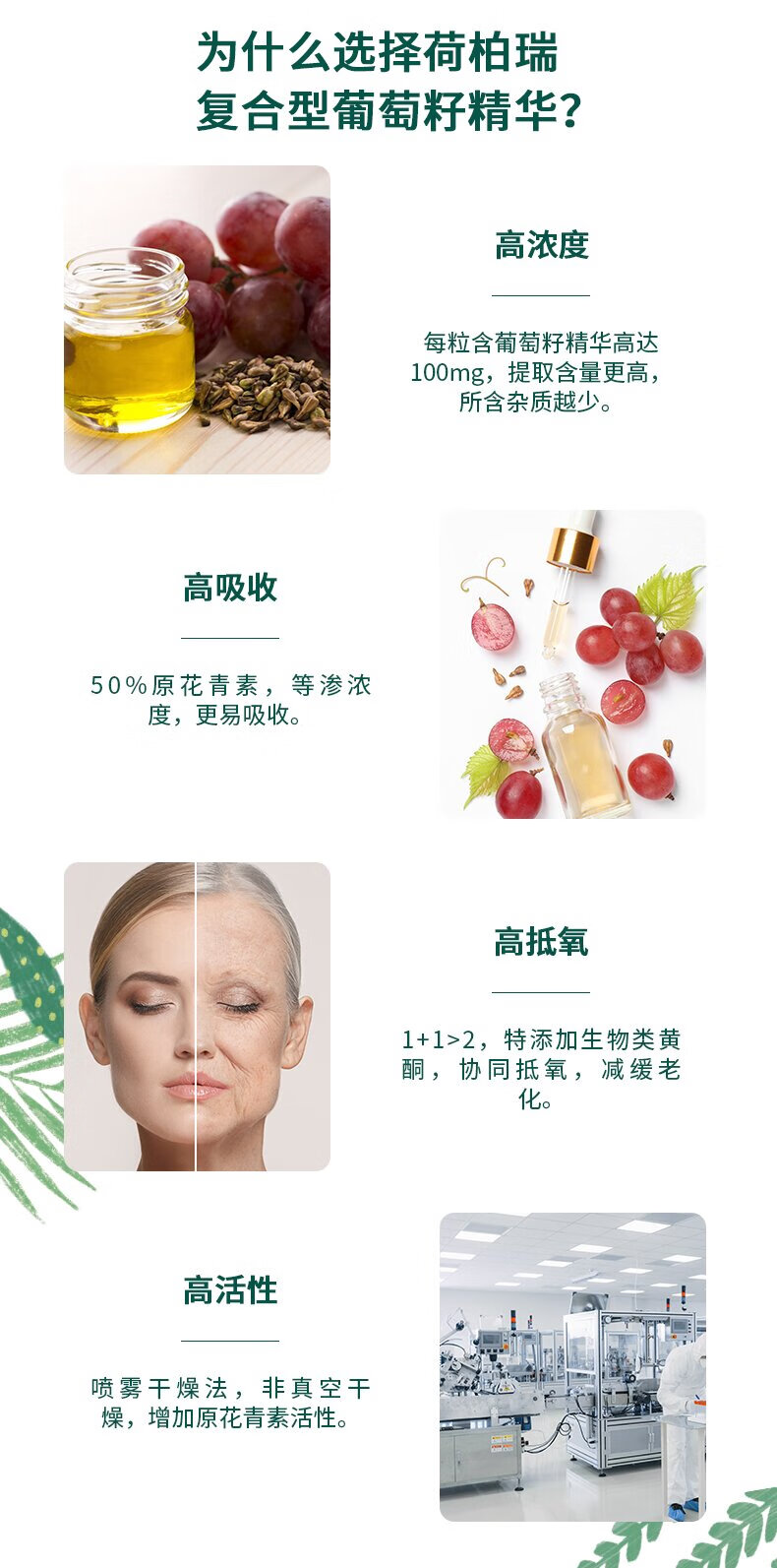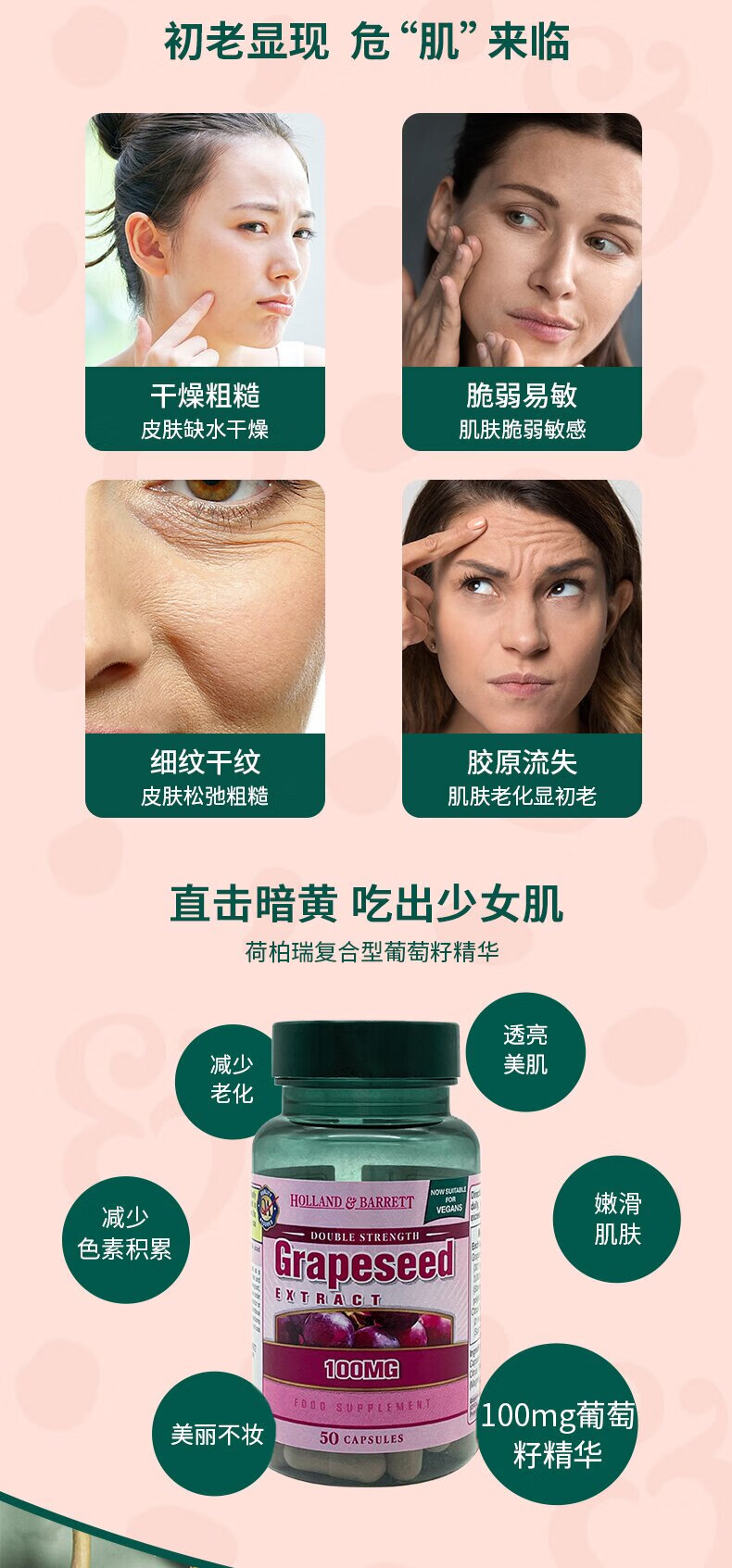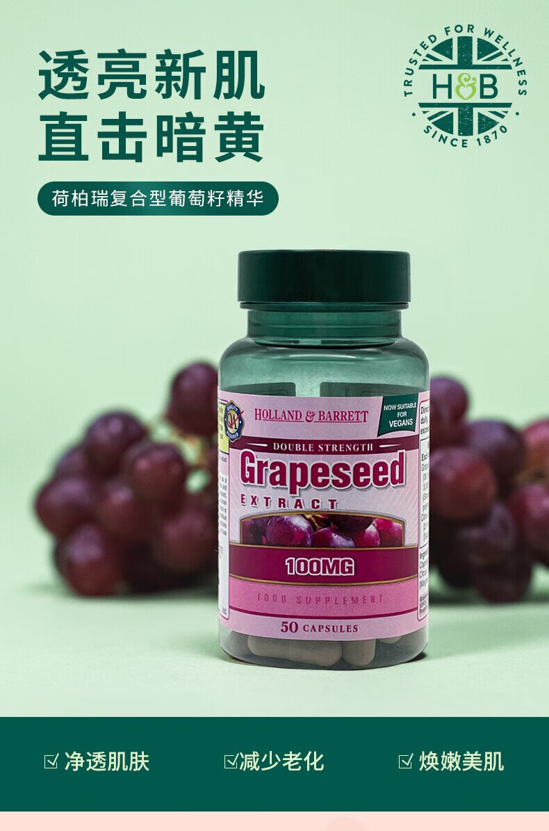 荷柏瑞Holland&Barrett浓缩葡萄籽原花青素胶囊淡化色素英国进口50粒/瓶 葡萄籽精华 三盒装(50粒/瓶)