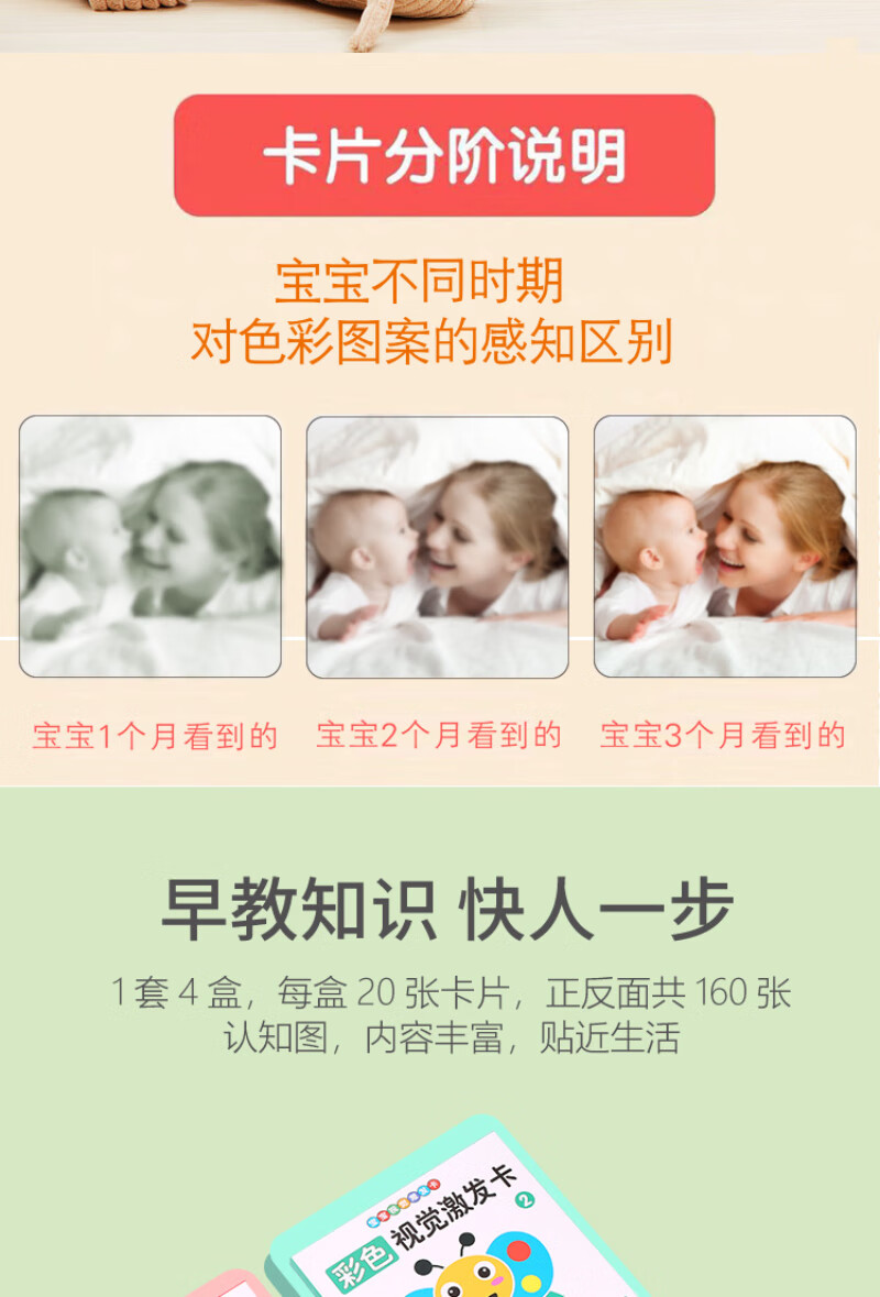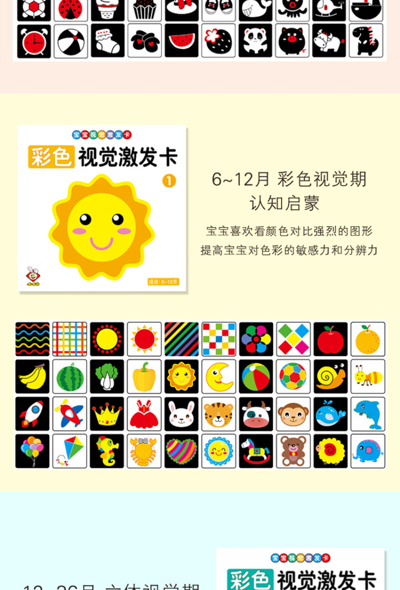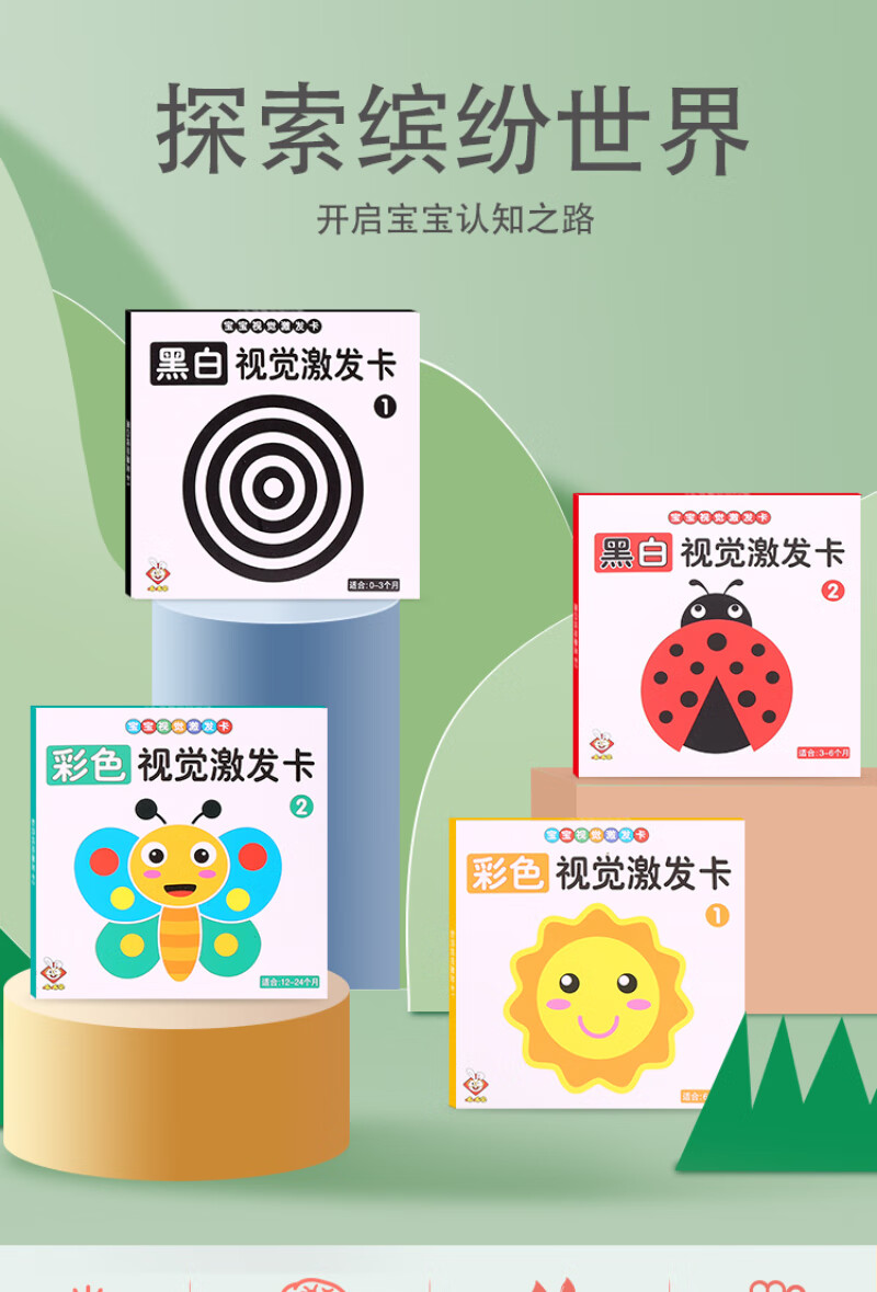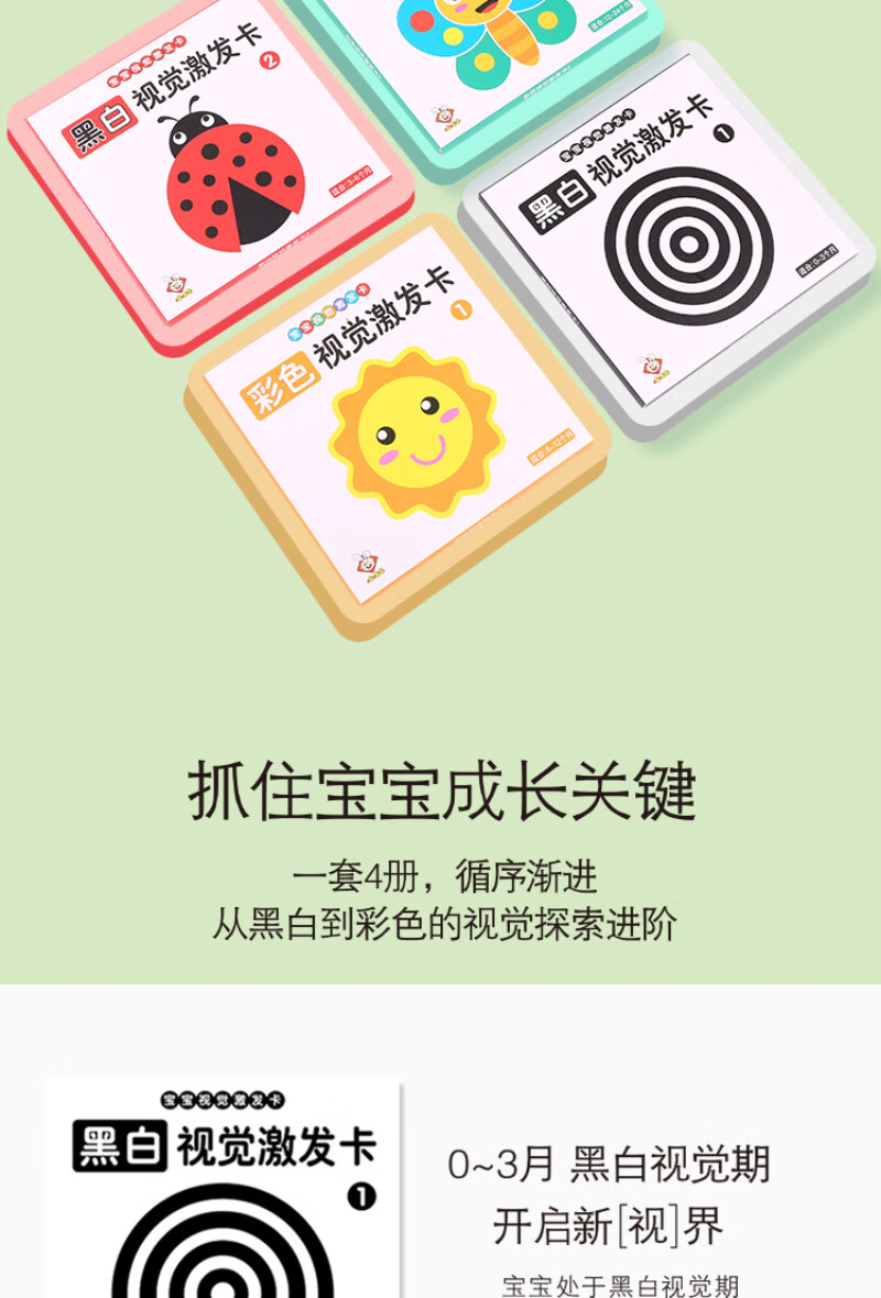 彩虹房子新生婴幼儿黑白早教卡 0-6个月新生儿视觉激发卡训练卡 【黑白+黑红+彩1+彩2】四盒