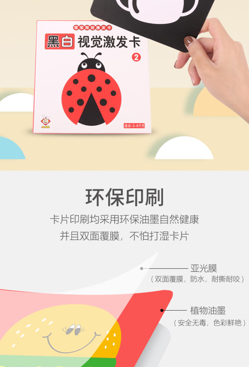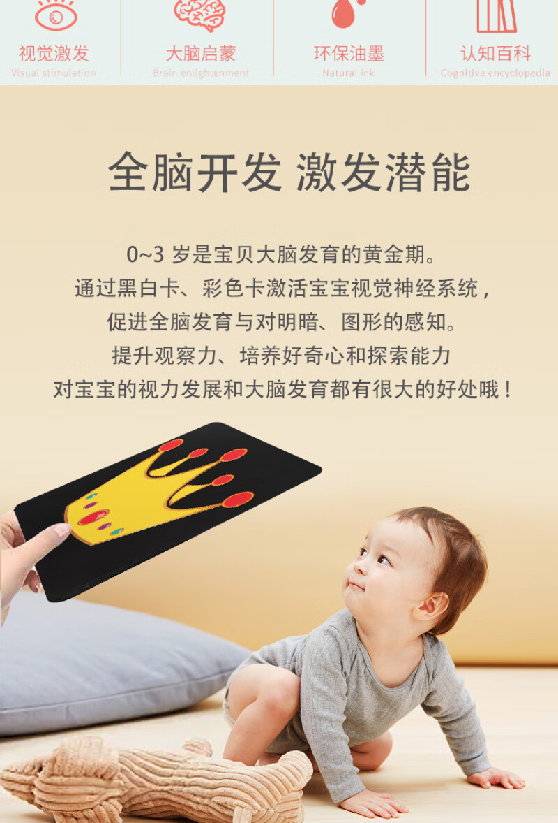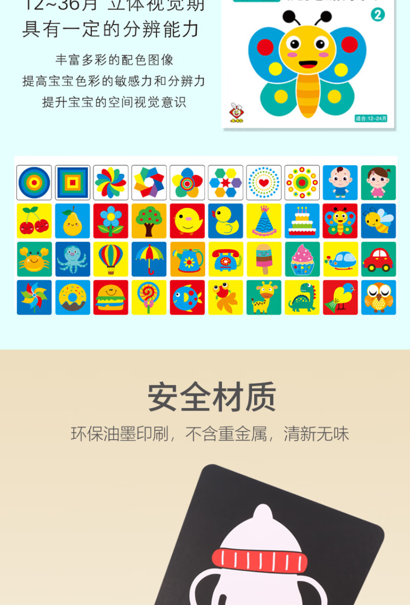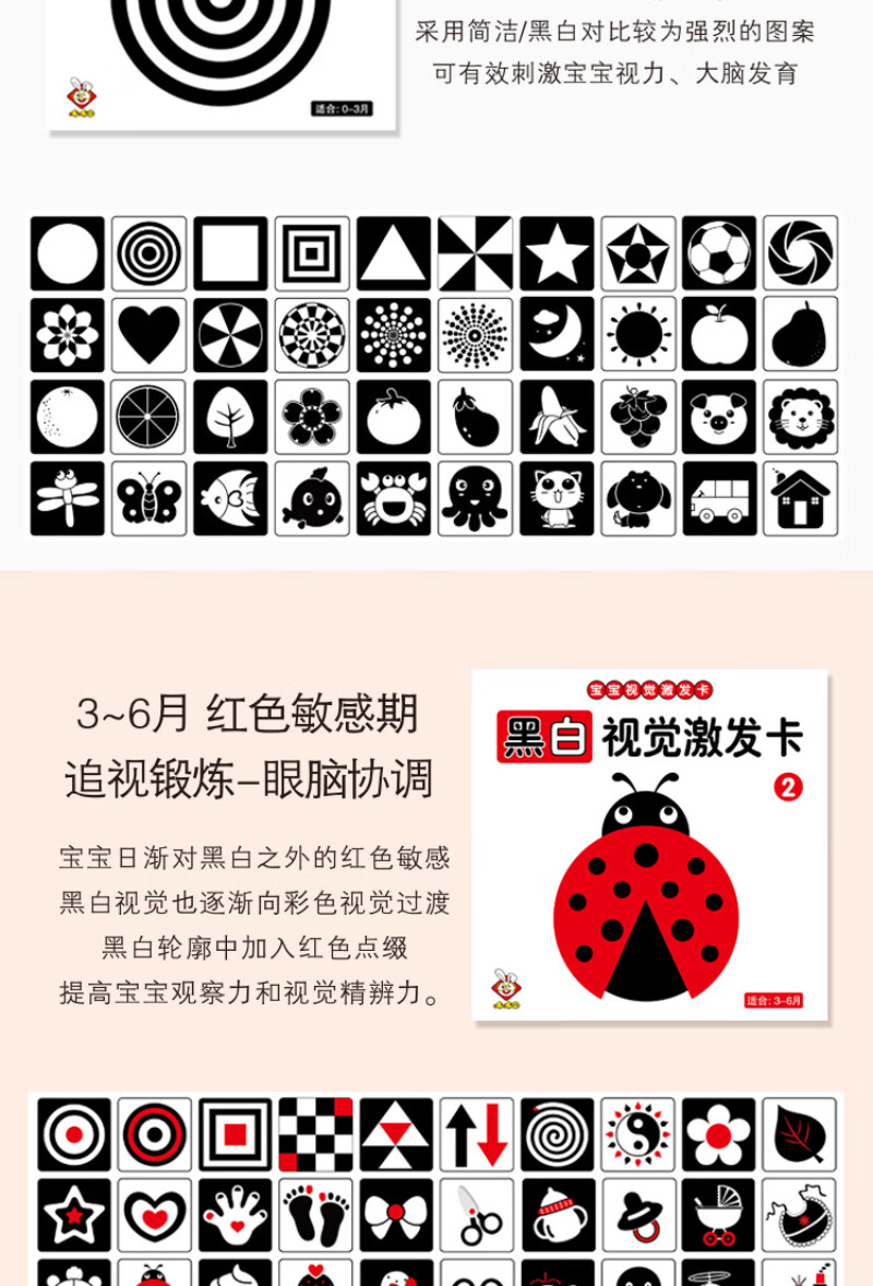彩虹房子新生婴幼儿黑白早教卡 0-6个月新生儿视觉激发卡训练卡 【黑白+黑红+彩1+彩2】四盒