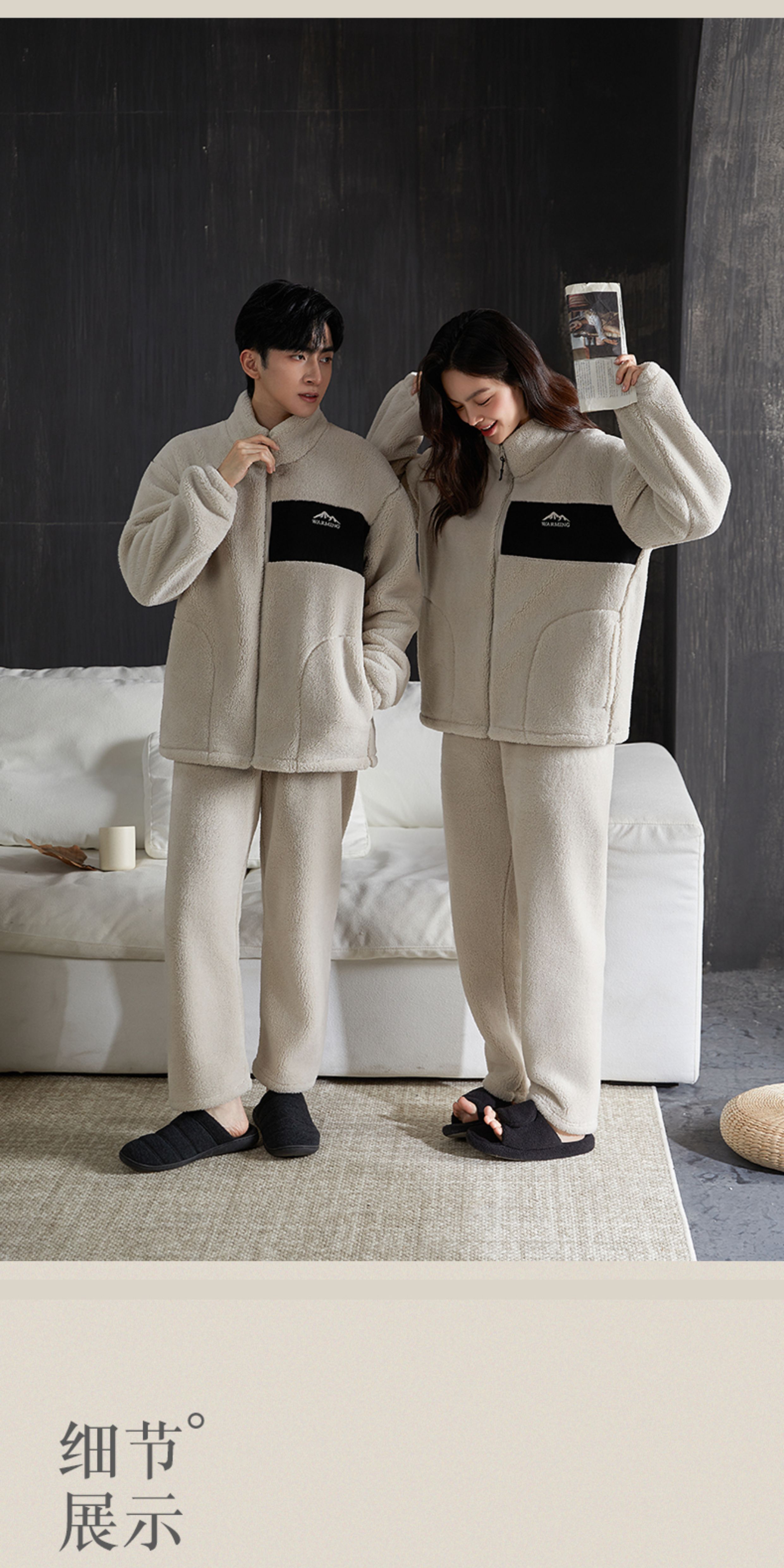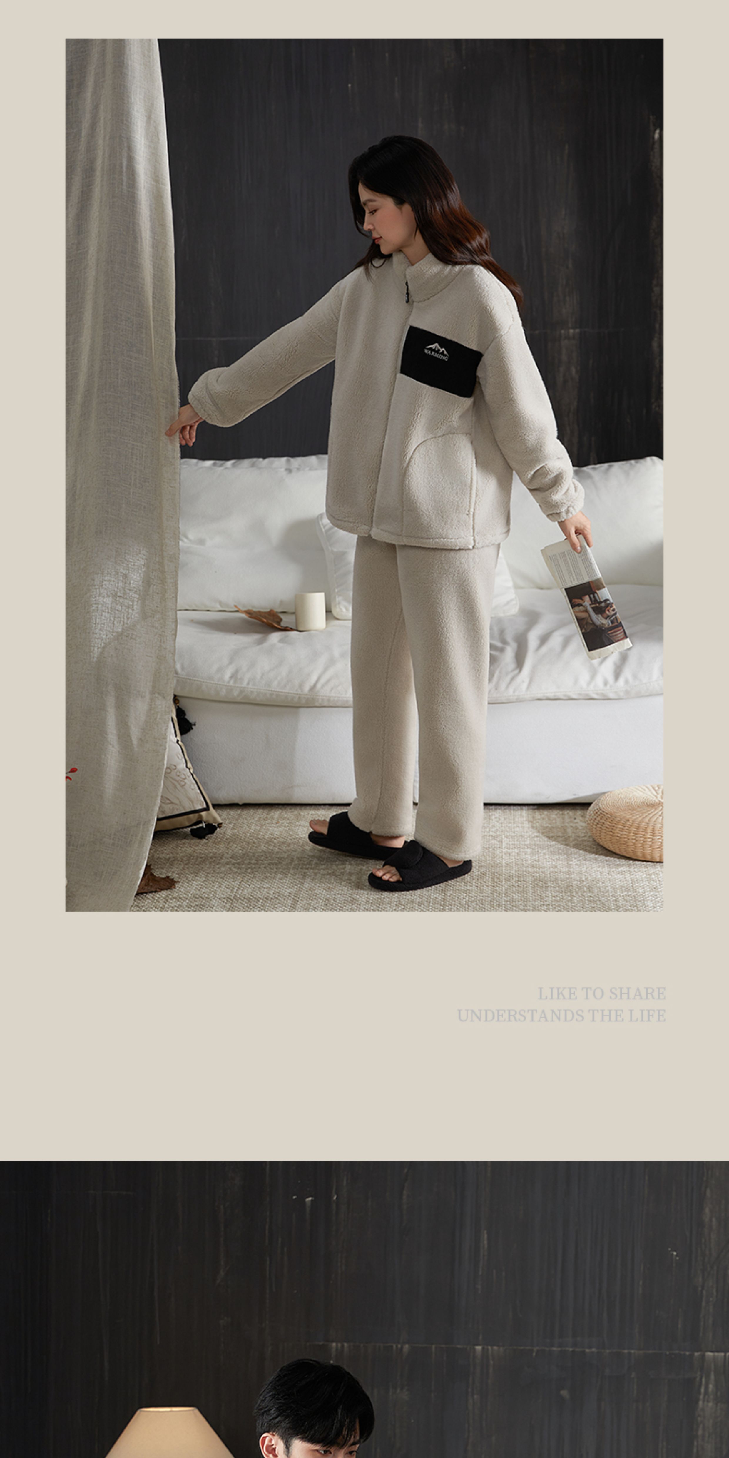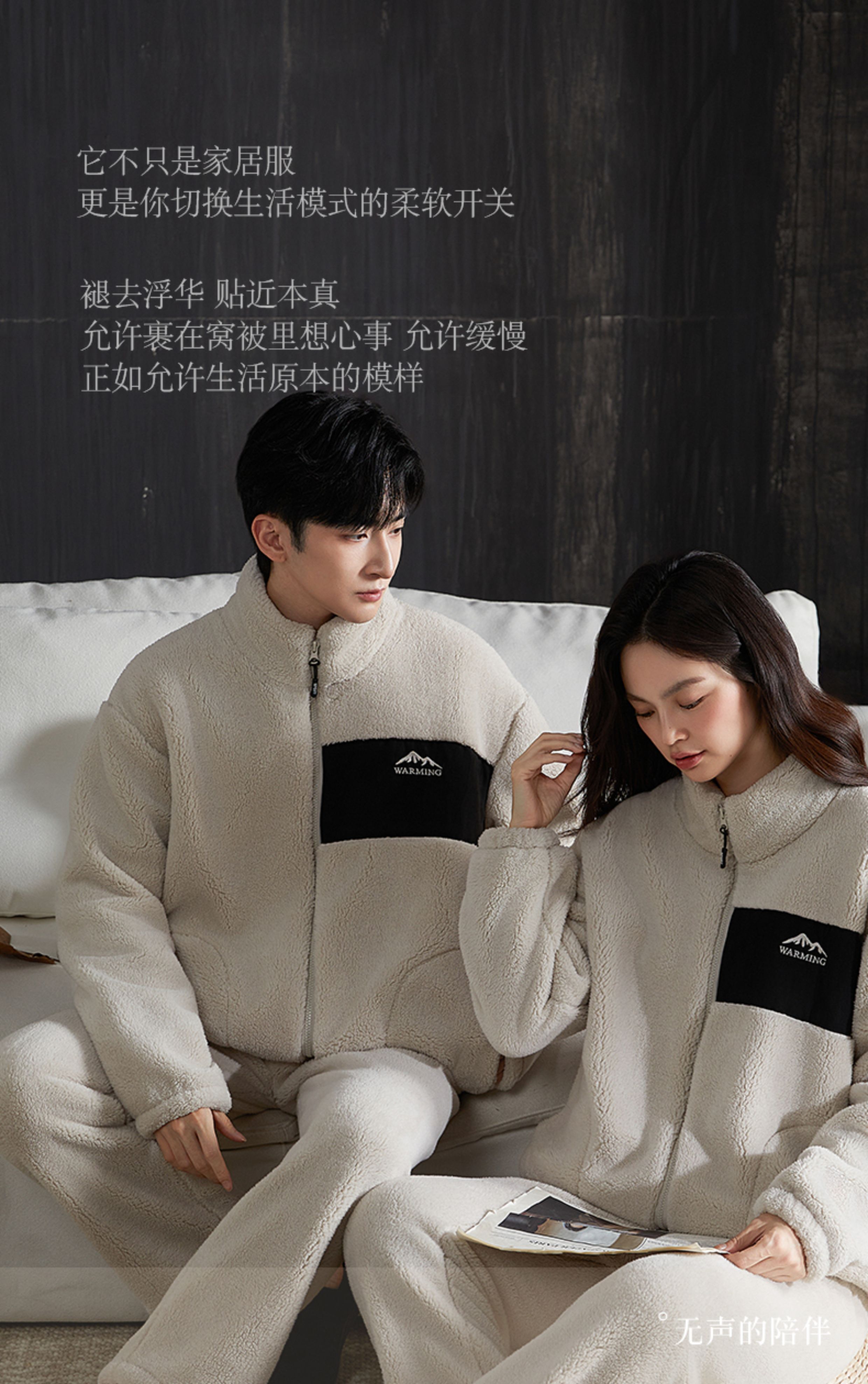 雪中飞睡衣男女珊瑚绒加厚加绒2025年新款情侣家居服套装大码可外穿 XZFCY-CRBL5132雪山刺绣贴布-浅灰男 M 推荐【女80-100斤】男无此尺码