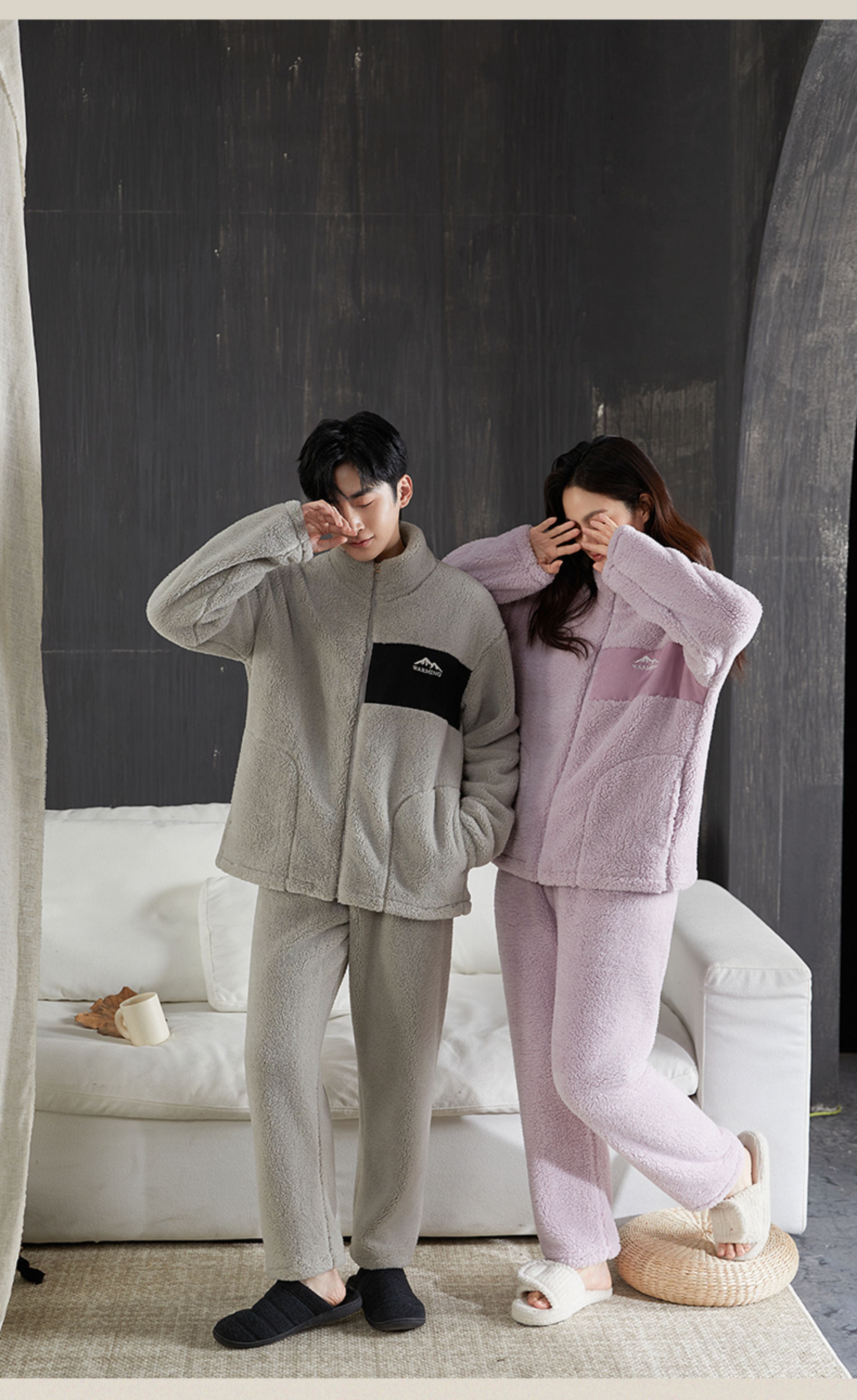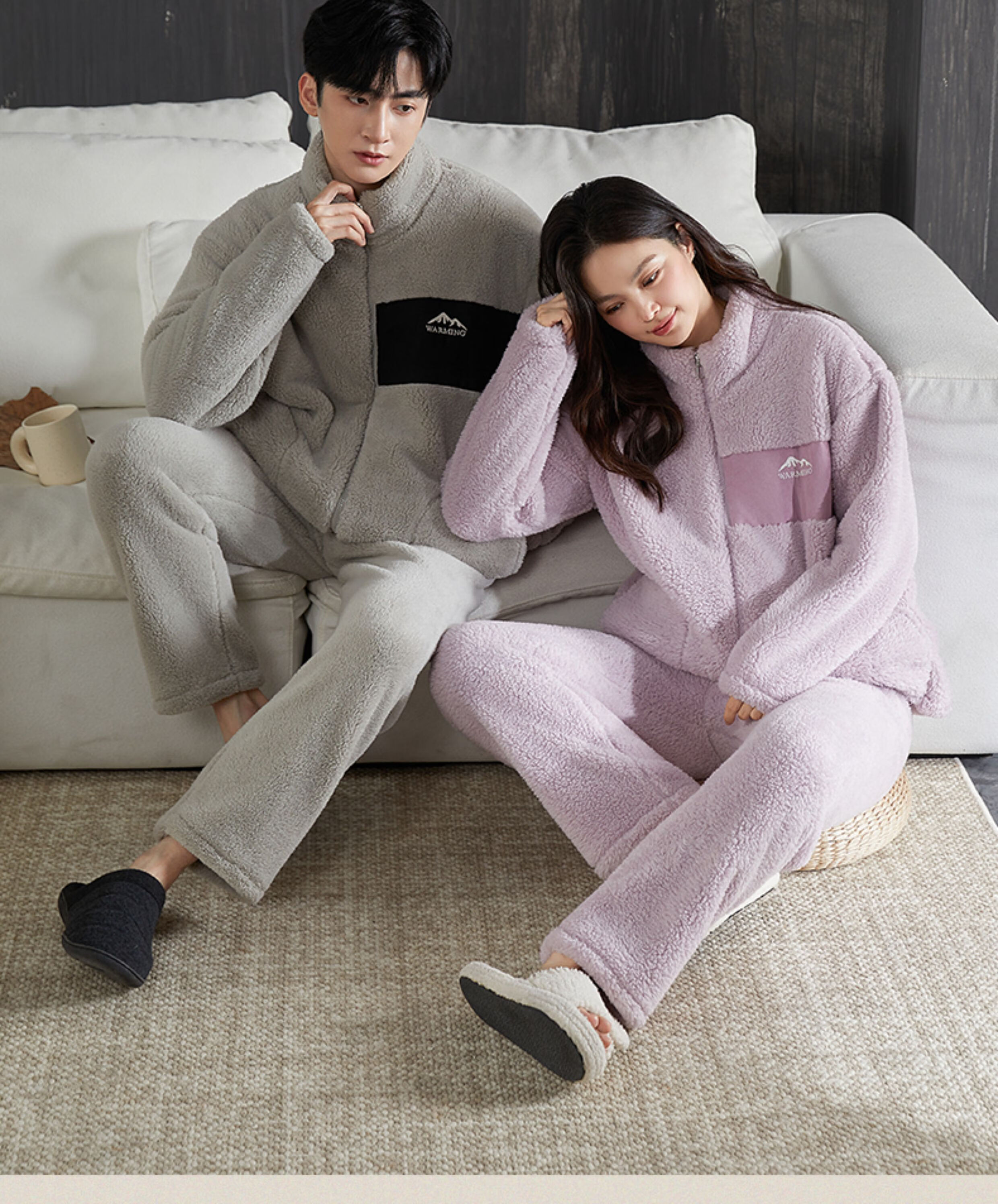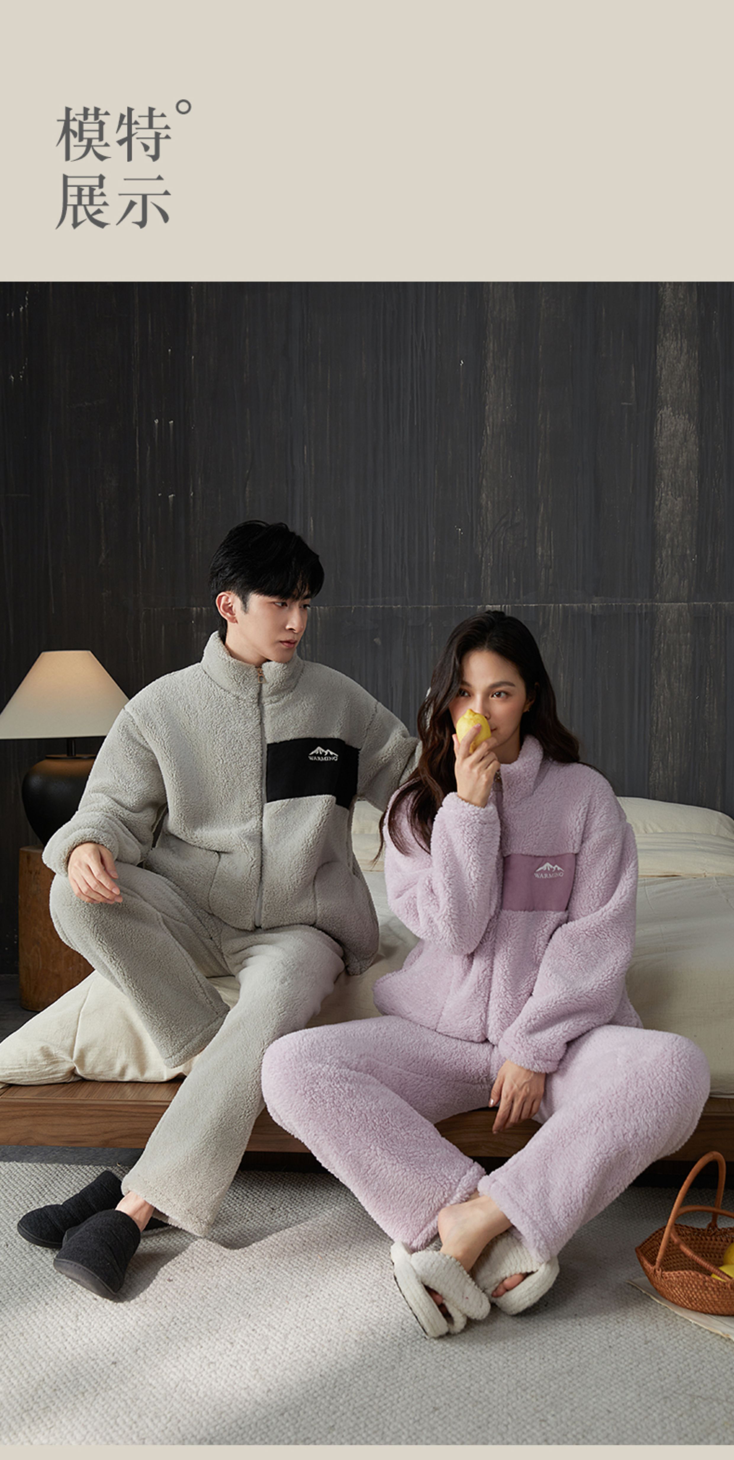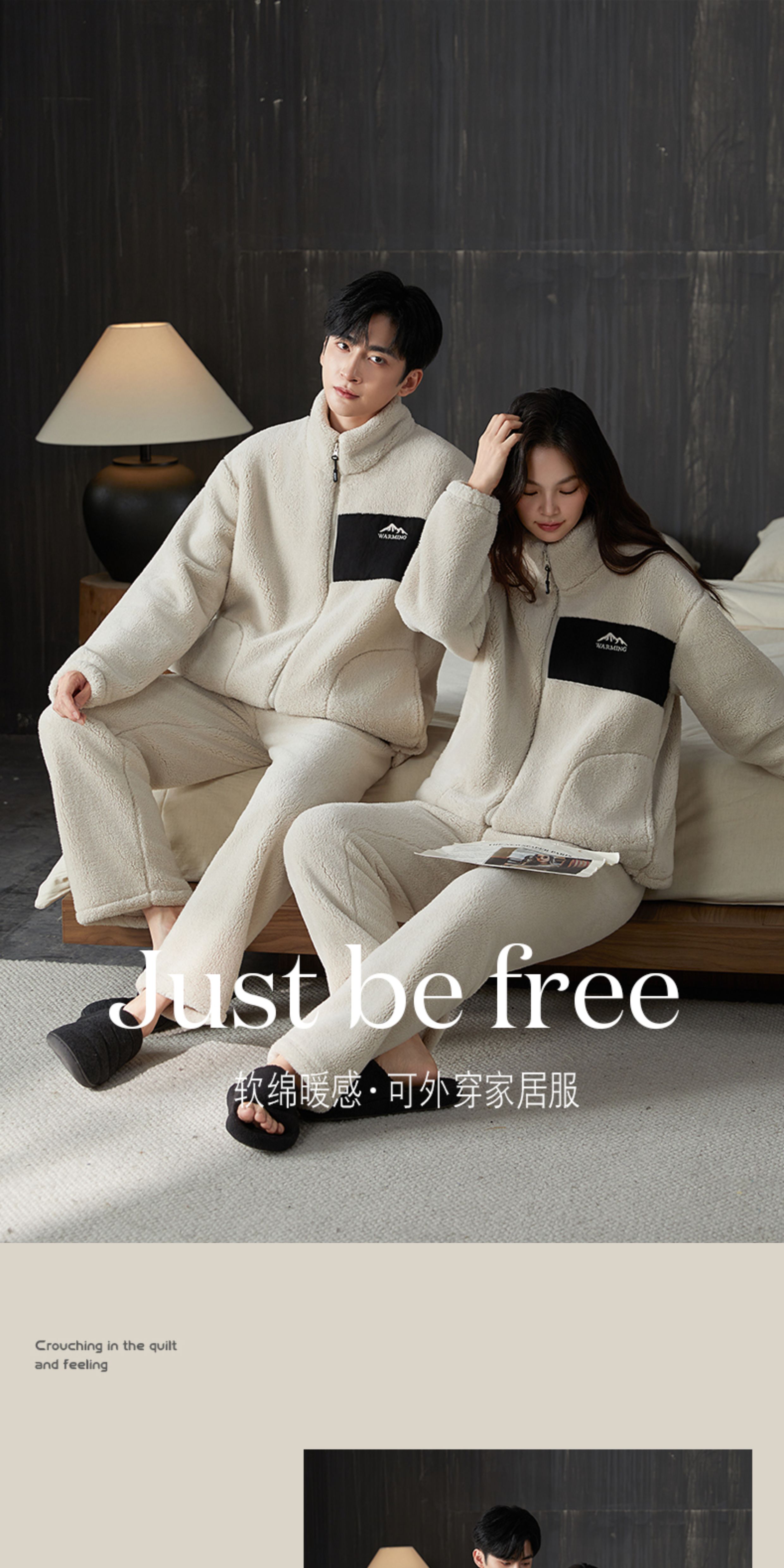 雪中飞睡衣男女珊瑚绒加厚加绒2025年新款情侣家居服套装大码可外穿 XZFCY-CRBL5132雪山刺绣贴布-浅灰男 M 推荐【女80-100斤】男无此尺码